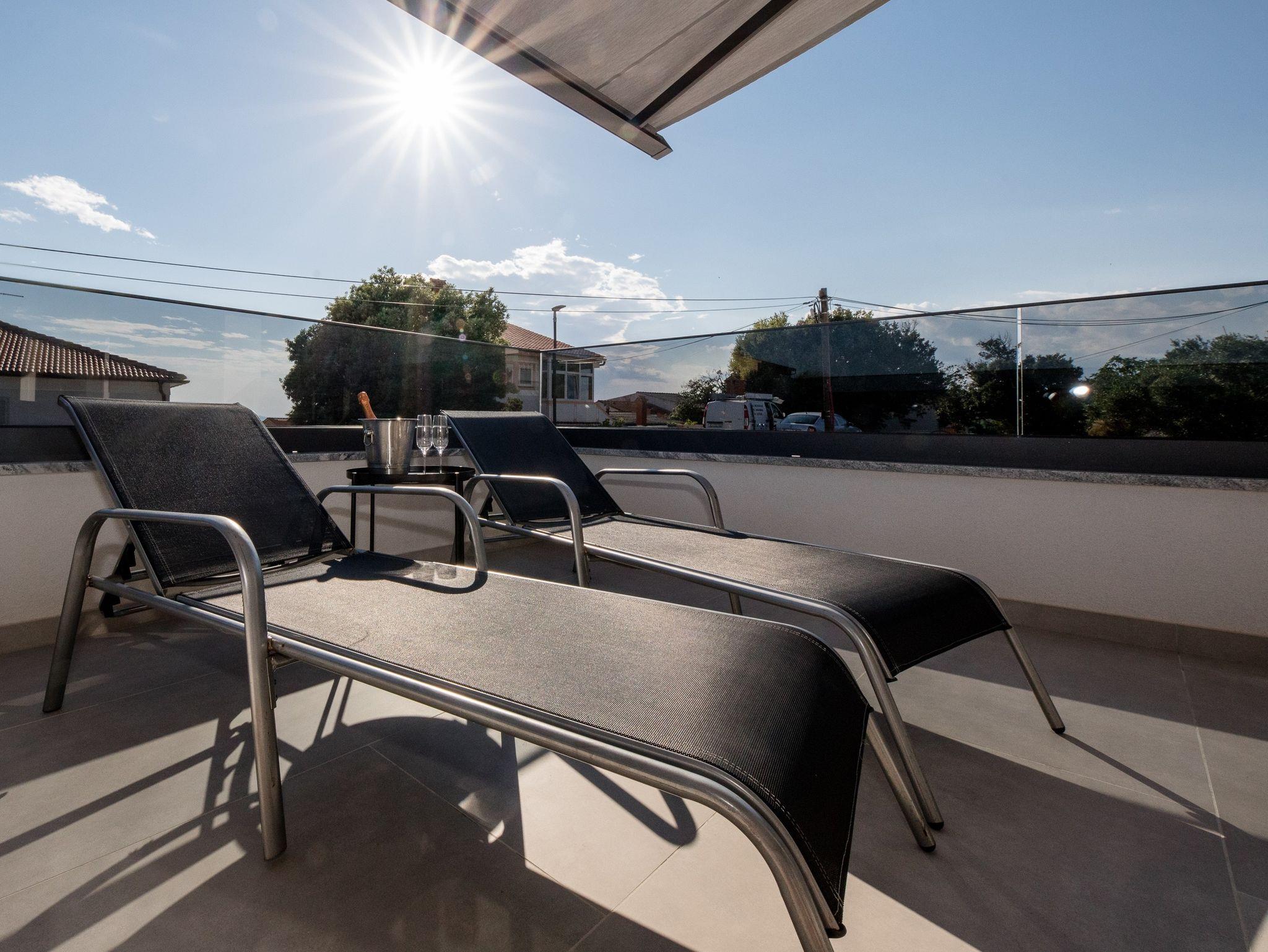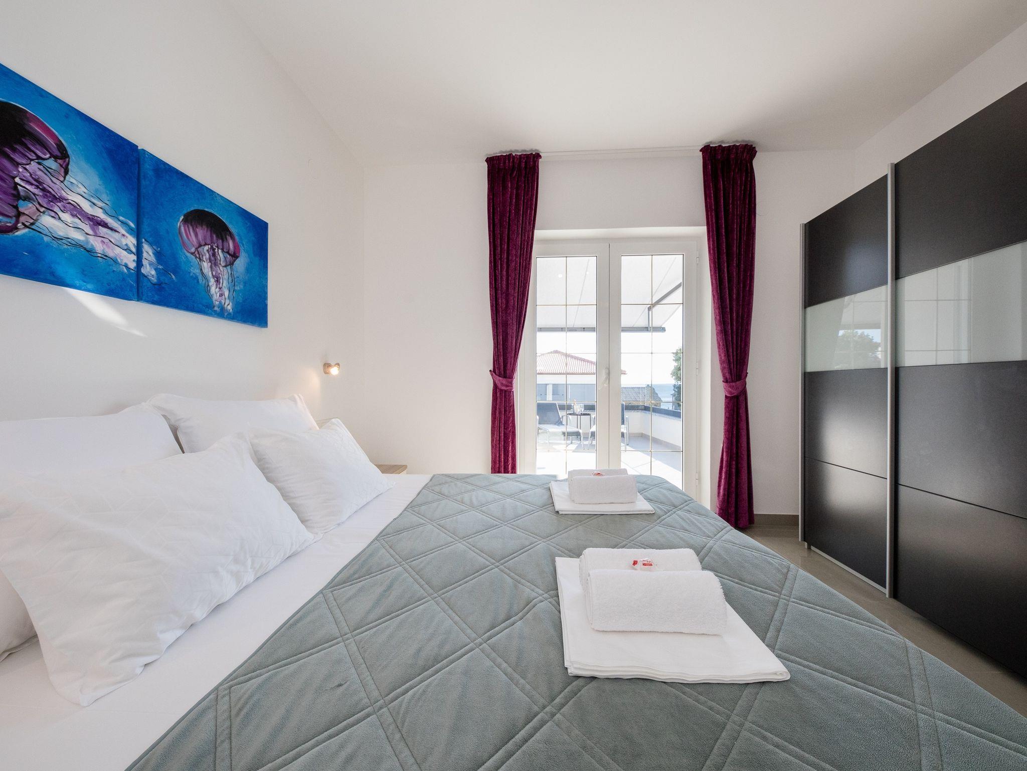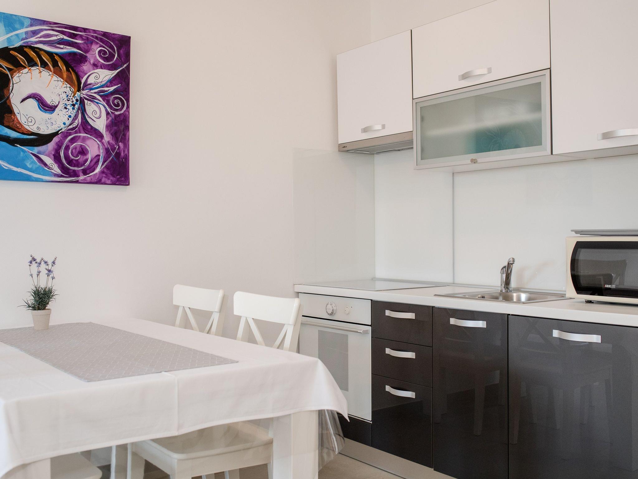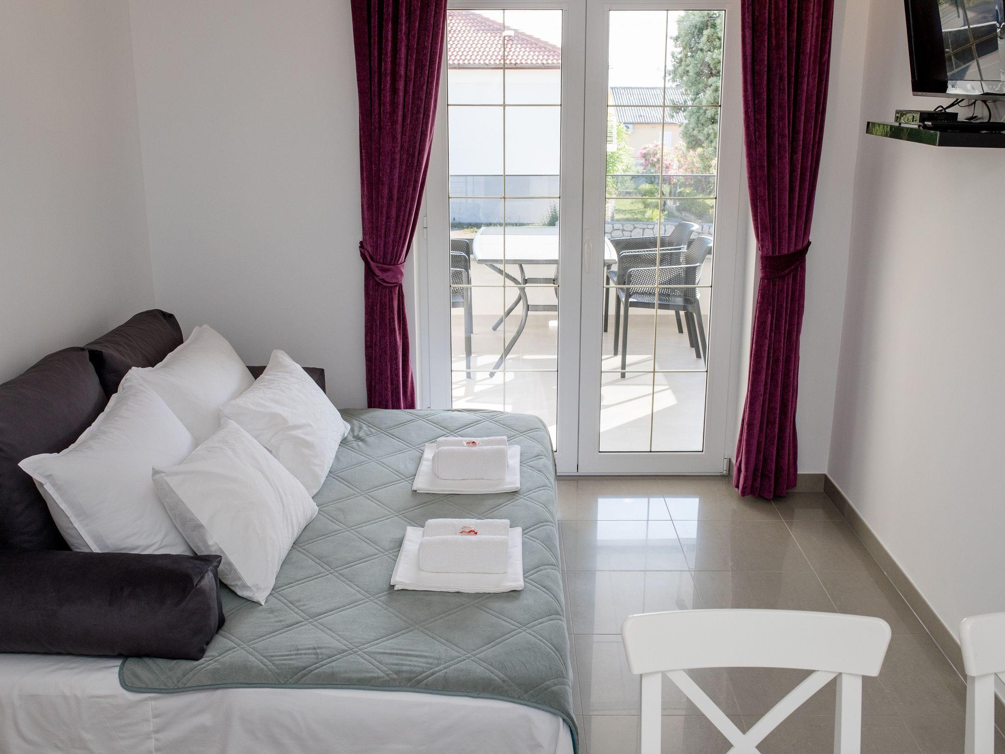 Ferienwohnung bietet Platz für 4 Gäste. Die Betten sind in Schlafzimmern, die es 1 gibt, und in Wohnzimmer, innerhalb einer Gesamtfläche von 27m2, angeordnet. Die Gäste haben eine eigene Terrasse zur Verfügung, auf der sie in warmen Sommernächten genießen können. Es ist erlaubt, Speisen auf dem Gemeinschafts-Grill vorzubereiten. IM PREIS INBEGRIFFEN: Kurtaxe, Endreinigung, Klimatisierung, Parkplatz, Internet. VERBINDLICHE ZUSÄTZLICHE KOSTEN: Aufzahlung für Kurzaufenthalte (prozentualer Zuschlag pro Nächtigungsanzahl: 30% - 1, 20% - 2, 10% - 3). UNVERBINDLICHE ZUSÄTZLICHE KOSTEN: Bootsanlegeplatz (25,00 € pro Nacht). Die Verfügbarkeit zusätzlicher Dienstleistungen in Ihrem reservierten Termin und die Preise derselben (falls nicht aufgeführt) müssen im Voraus überprüft werden. Zusätzliche Dienstleistungen die in der Zahlungsaufforderung nicht aufgeführt sind werden direkt beim Vermieter bezahlt, angenommen der Gast nutzt auch diese.