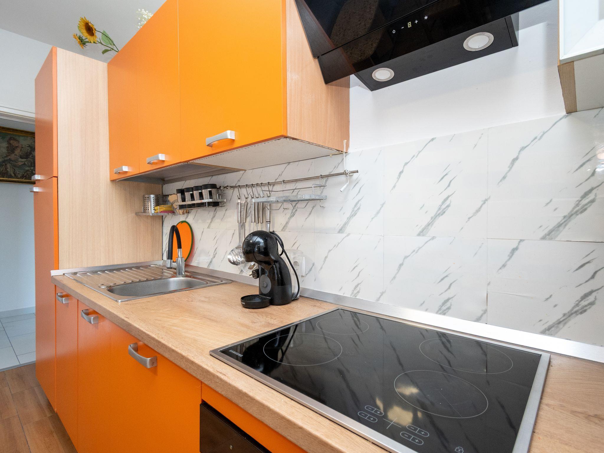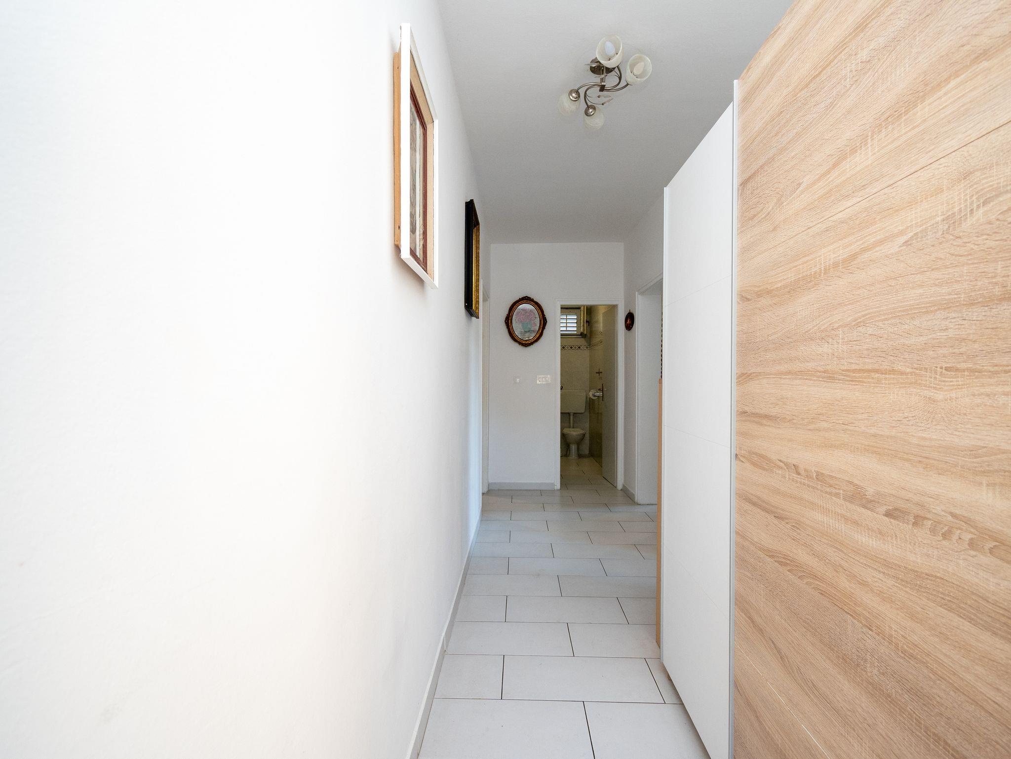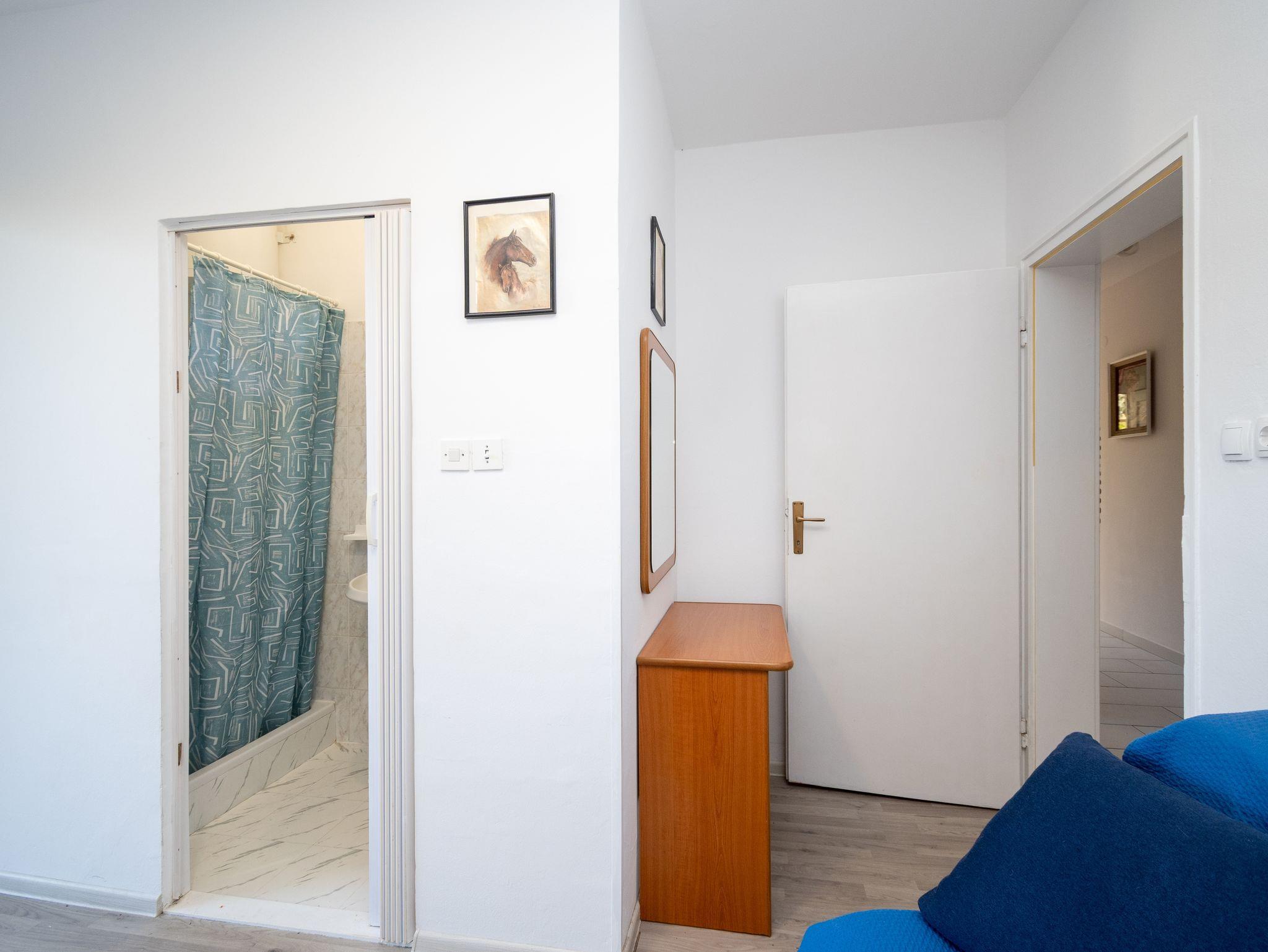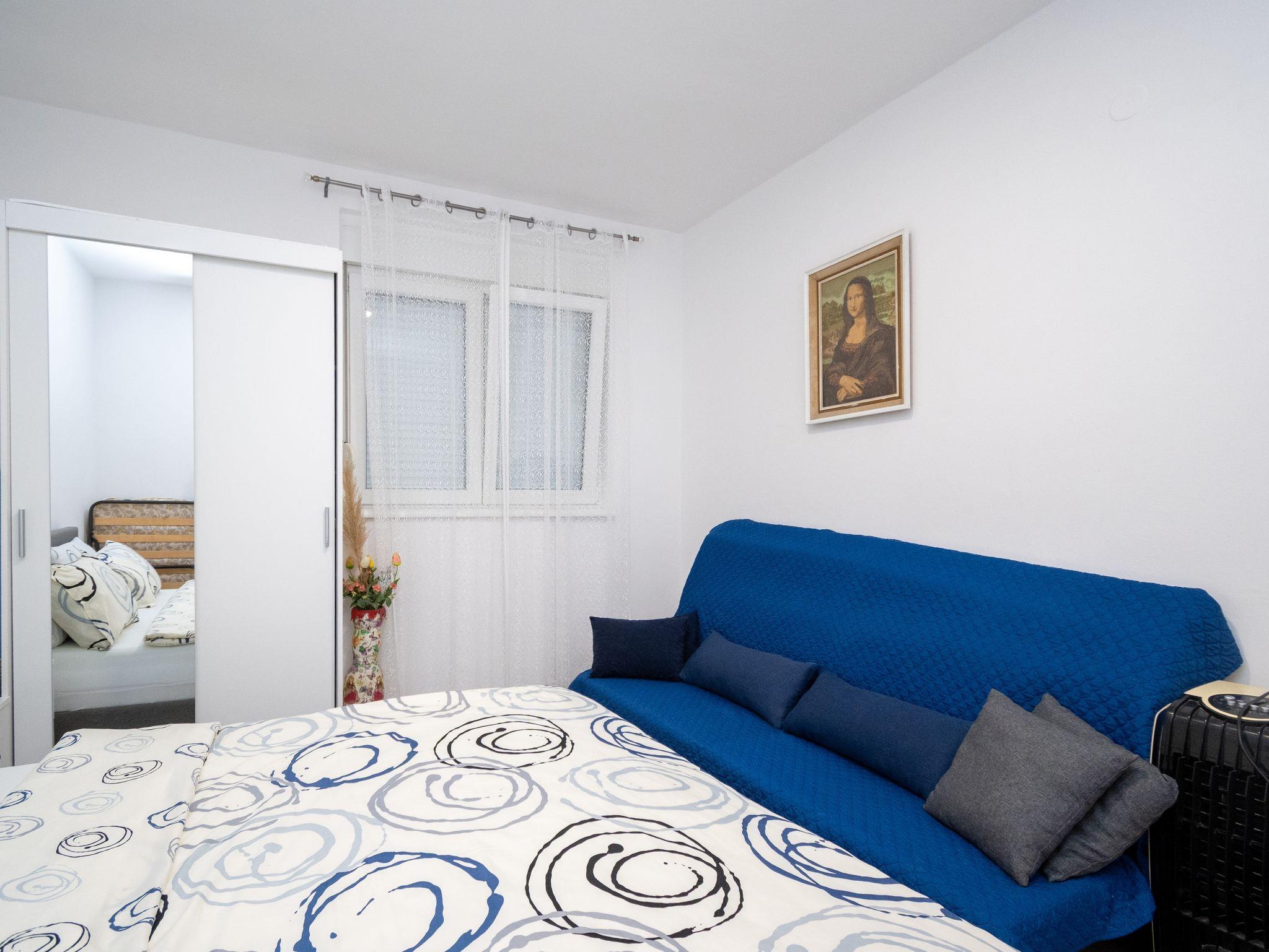 Ferienwohnung bietet Platz für 7 Gäste. Die Betten sind in Schlafzimmern, die es 2 gibt, und in Wohnzimmer, innerhalb einer Gesamtfläche von 53m2, angeordnet. Die Gäste haben eine eigene Terrasse zur Verfügung, auf der sie in warmen Sommernächten genießen können. Es ist erlaubt, Speisen auf dem Gemeinschafts-Grill vorzubereiten. In der Unterkunftseinheit besteht die Möglichkeit des Mitbringens von Haustieren gegen Aufpreis. IM PREIS INBEGRIFFEN: Kurtaxe, Endreinigung, Klimatisierung, Parkplatz, Internet, Bügeleisen, Bügelbrett, Föhn, Sonnenschirm. VERBINDLICHE ZUSÄTZLICHE KOSTEN: Aufzahlung für Kurzaufenthalte (prozentualer Zuschlag pro Nächtigungsanzahl: 30% - 1, 20% - 2, 10% - 3). UNVERBINDLICHE ZUSÄTZLICHE KOSTEN: Haustiere (5,00 € pro Nacht). Die Verfügbarkeit zusätzlicher Dienstleistungen in Ihrem reservierten Termin und die Preise derselben (falls nicht aufgeführt) müssen im Voraus überprüft werden. Zusätzliche Dienstleistungen die in der Zahlungsaufforderung nicht aufgeführt sind werden direkt beim Vermieter bezahlt, angenommen der Gast nutzt auch diese.