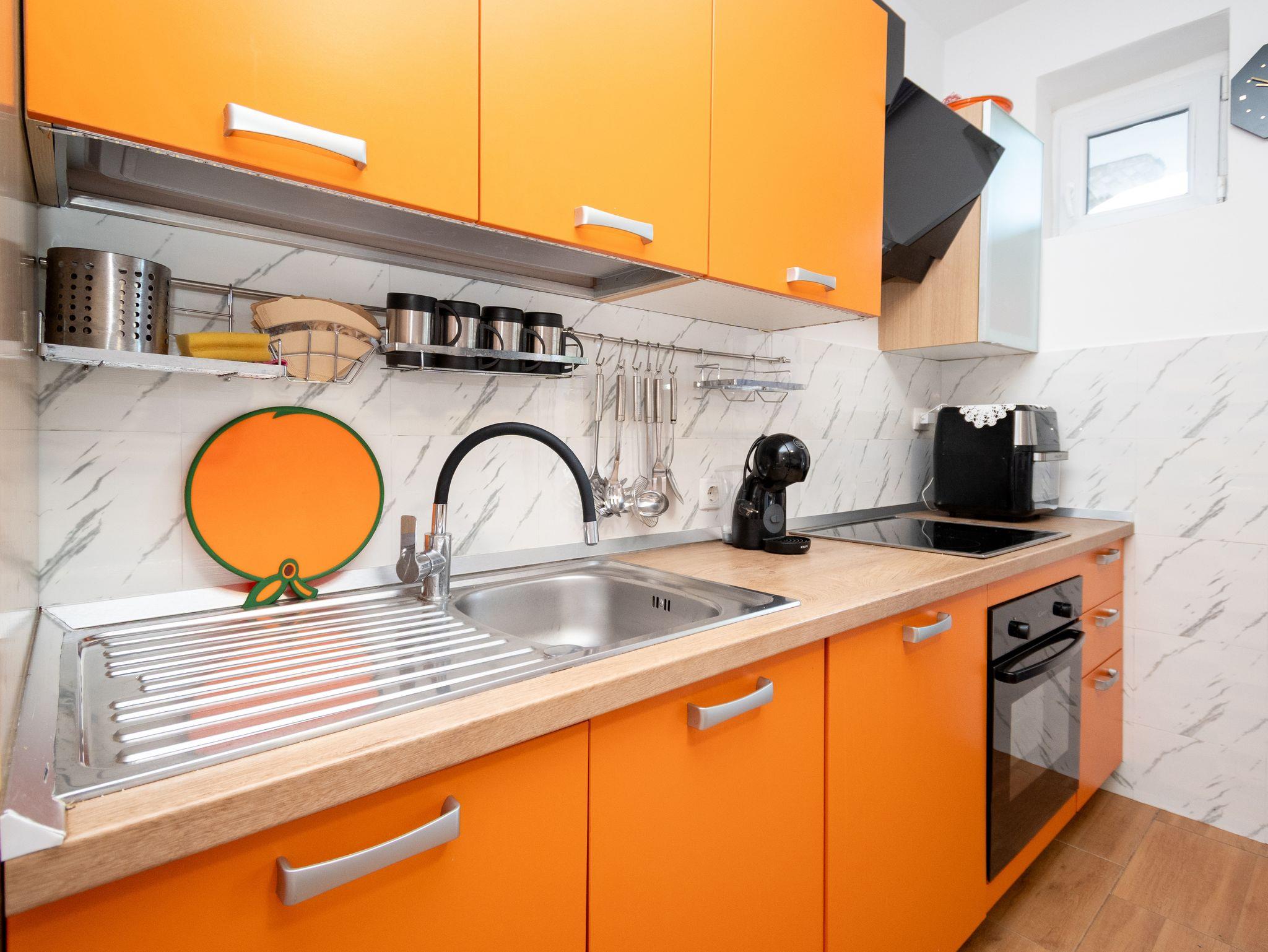 Umgebung des Objekts (Ordentlich), Hof (200m2, Sitzbereich), Parkplatz (Anzahl der Parkplätze: 4, Entfernung vom Objekt: im Hof), Grill: gemeinsam, WiFi Internet, Föhn, Bügeleisen, Bügelbrett, Sonnenschirm
