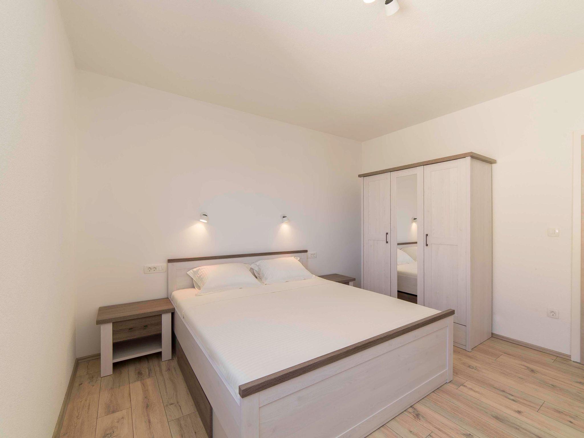 Ferienwohnung bietet Platz für 4 Gäste. Die Betten sind in Schlafzimmern, die es 2 gibt, innerhalb einer Gesamtfläche von 75m2, angeordnet. Die Gäste haben einen eigenen Balkon zur Verfügung, auf der sie in warmen Sommernächten genießen können. Das Apartment bietet Meerblick. Es ist erlaubt, Speisen auf dem Gemeinschafts-Grill vorzubereiten. In der Unterkunftseinheit besteht die Möglichkeit des Mitbringens von Haustieren, und die Dienstleistung ist im Preis der Unterkunft enthalten. IM PREIS INBEGRIFFEN: Kurtaxe, Endreinigung, Klimatisierung, Parkplatz, Internet, Haustiere, Kinderbett, Bügeleisen, Bügelbrett, Föhn, tragbarer Grill. UNVERBINDLICHE ZUSÄTZLICHE KOSTEN: Bootsanlegeplatz (10,00 € pro Nacht), Zusatzbett (10,00 € pro Nacht). Die Verfügbarkeit zusätzlicher Dienstleistungen in Ihrem reservierten Termin und die Preise derselben (falls nicht aufgeführt) müssen im Voraus überprüft werden. Zusätzliche Dienstleistungen die in der Zahlungsaufforderung nicht aufgeführt sind werden direkt beim Vermieter bezahlt, angenommen der Gast nutzt auch diese. Ermäßigung auf den Grundpreis: Gratistag 14=13 (bei einem Aufenthalt von 14 Tagen oder mehr erhalten Sie einen Gratistag für den Aufenthalt bis 31.12.26).
