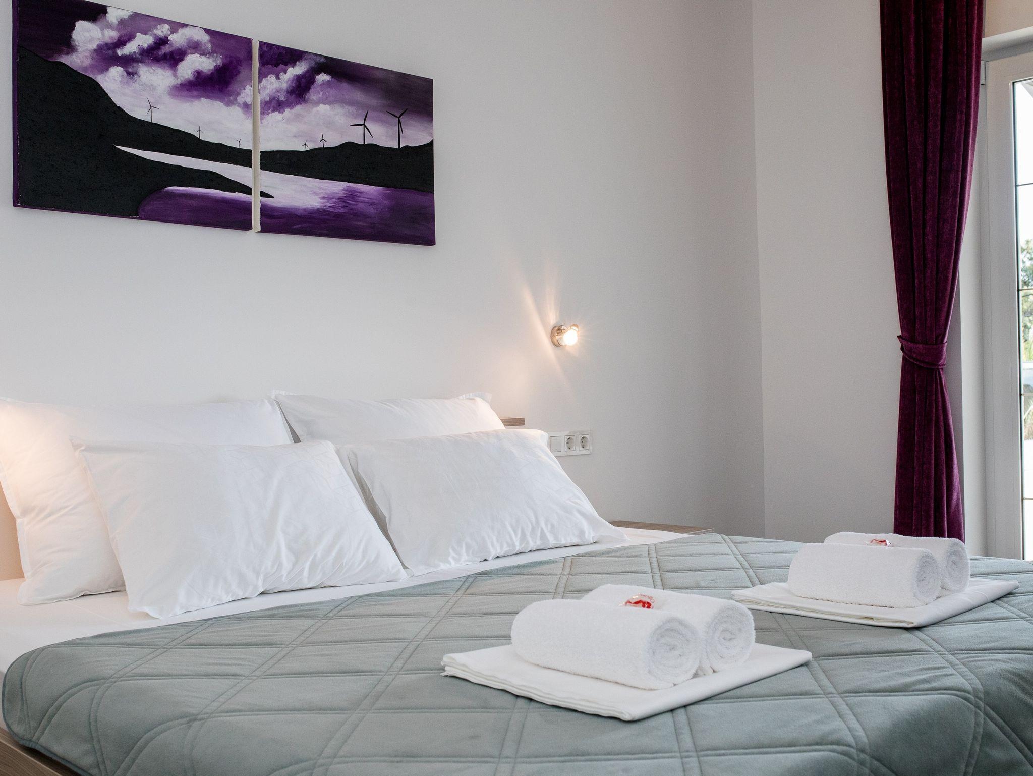 Ferienwohnung bietet Platz für 6 Gäste. Die Betten sind in Schlafzimmern, die es 2 gibt, innerhalb einer Gesamtfläche von 45m2, angeordnet. Die Gäste haben einen eigenen Balkon zur Verfügung, auf der sie in warmen Sommernächten genießen können. Es ist erlaubt, Speisen auf dem Gemeinschafts-Grill vorzubereiten. IM PREIS INBEGRIFFEN: Kurtaxe, Endreinigung, Klimatisierung, Parkplatz, Internet. VERBINDLICHE ZUSÄTZLICHE KOSTEN: Aufzahlung für Kurzaufenthalte (prozentualer Zuschlag pro Nächtigungsanzahl: 30% - 1, 20% - 2, 10% - 3). UNVERBINDLICHE ZUSÄTZLICHE KOSTEN: Bootsanlegeplatz (25,00 € pro Nacht). Die Verfügbarkeit zusätzlicher Dienstleistungen in Ihrem reservierten Termin und die Preise derselben (falls nicht aufgeführt) müssen im Voraus überprüft werden. Zusätzliche Dienstleistungen die in der Zahlungsaufforderung nicht aufgeführt sind werden direkt beim Vermieter bezahlt, angenommen der Gast nutzt auch diese.