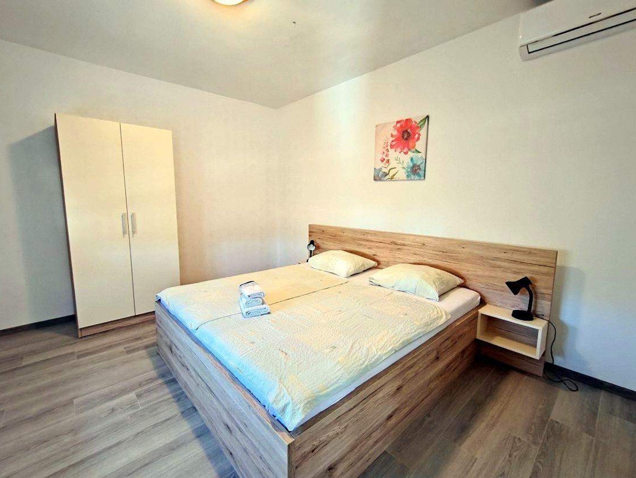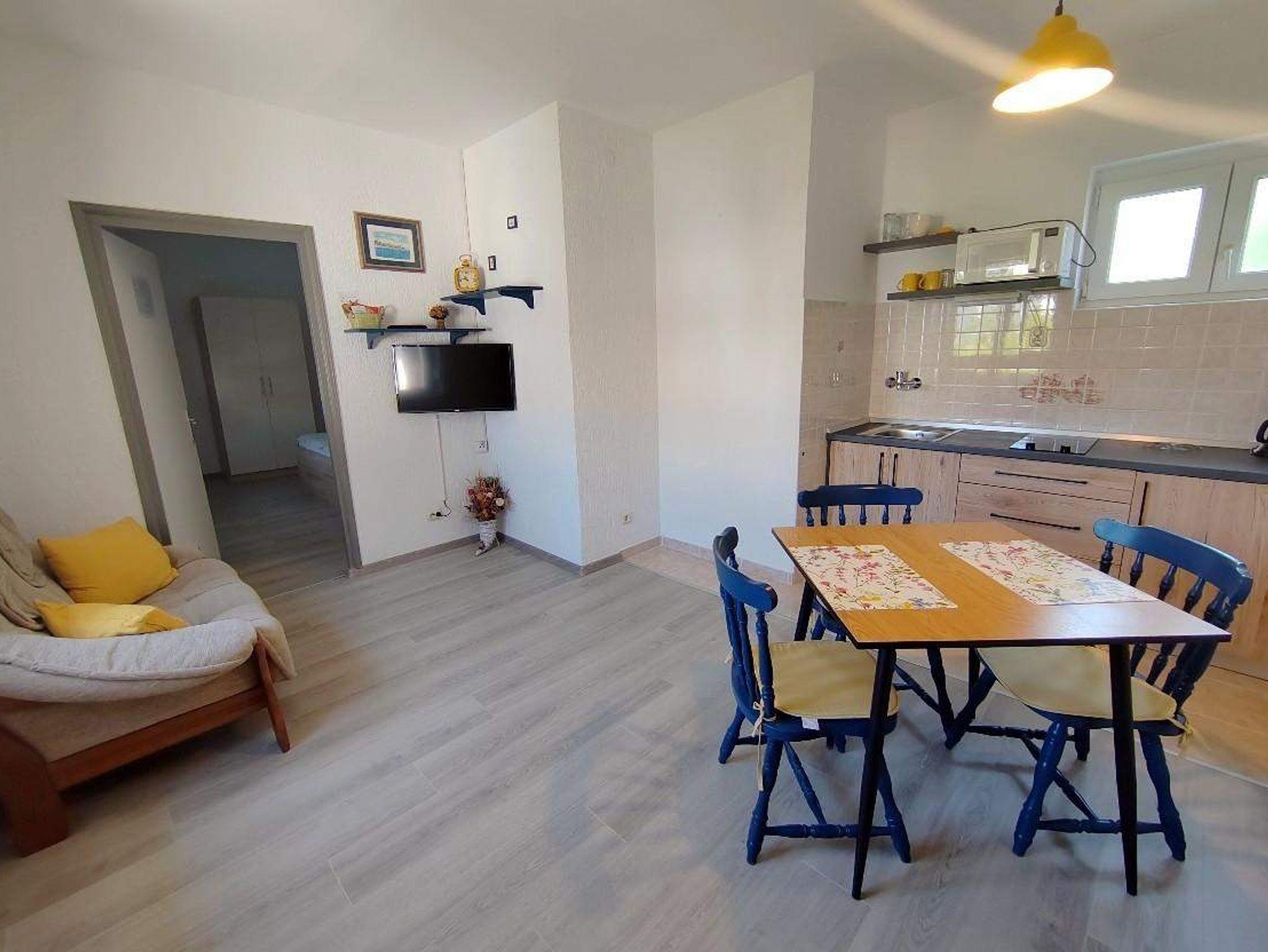 Ferienwohnung bietet Platz für 2 Gäste. Die Betten sind in Schlafzimmern, die es 1 gibt, innerhalb einer Gesamtfläche von 32m2, angeordnet. Die Gäste haben einen eigenen Balkon zur Verfügung, auf der sie in warmen Sommernächten genießen können. Das Apartment bietet Meerblick. Es ist erlaubt, Speisen auf dem Gemeinschafts-Grill vorzubereiten. IM PREIS INBEGRIFFEN: Kurtaxe, Endreinigung, Klimatisierung, Parkplatz, Internet. VERBINDLICHE ZUSÄTZLICHE KOSTEN: Aufzahlung für Kurzaufenthalte (prozentualer Zuschlag pro Nächtigungsanzahl: 30% - 1, 20% - 2, 10% - 3). UNVERBINDLICHE ZUSÄTZLICHE KOSTEN: Bootsanlegeplatz (10,00 € pro Nacht). Die Verfügbarkeit zusätzlicher Dienstleistungen in Ihrem reservierten Termin und die Preise derselben (falls nicht aufgeführt) müssen im Voraus überprüft werden. Zusätzliche Dienstleistungen die in der Zahlungsaufforderung nicht aufgeführt sind werden direkt beim Vermieter bezahlt, angenommen der Gast nutzt auch diese.