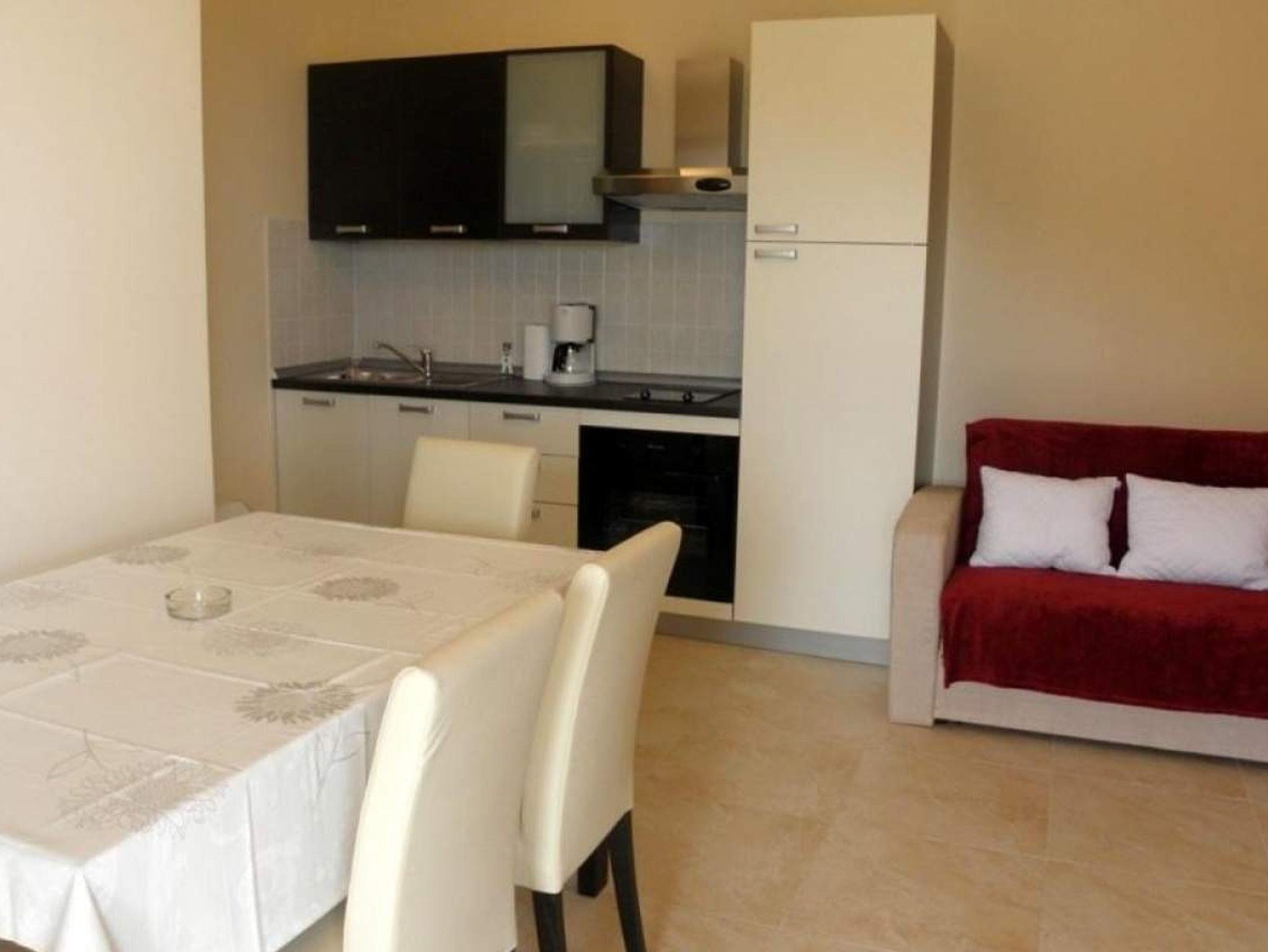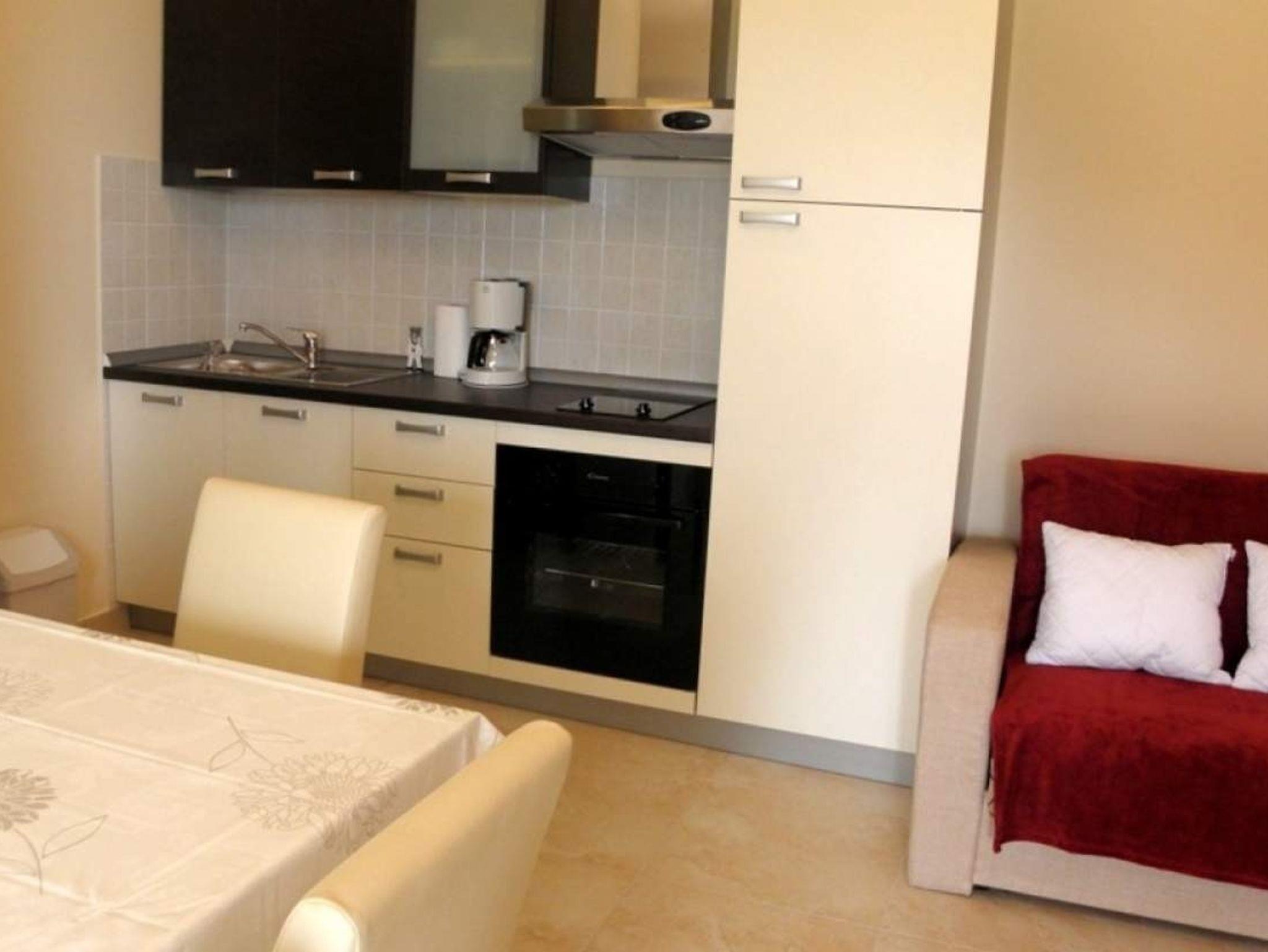 Ferienwohnung bietet Platz für 3 Gäste. Die Betten sind in Schlafzimmern, die es 1 gibt, und in Esszimmer, innerhalb einer Gesamtfläche von 35m2, angeordnet. Die Gäste haben eine eigene Terrasse zur Verfügung, auf der sie in warmen Sommernächten genießen können. Das Apartment bietet Meerblick. Es ist erlaubt, Speisen auf dem Gemeinschafts-Grill vorzubereiten. Während ihres Aufenthalts können Gäste das gemeinsam zur Nutzung stehende Schwimmbad benutzen. IM PREIS INBEGRIFFEN: Kurtaxe, Endreinigung, Klimatisierung, Pool, Parkplatz, Internet. VERBINDLICHE ZUSÄTZLICHE KOSTEN: Aufzahlung für Kurzaufenthalte (prozentualer Zuschlag pro Nächtigungsanzahl: 30% - 1, 20% - 2, 10% - 3). UNVERBINDLICHE ZUSÄTZLICHE KOSTEN: Bootsanlegeplatz (8,00 € pro Nacht). Die Verfügbarkeit zusätzlicher Dienstleistungen in Ihrem reservierten Termin und die Preise derselben (falls nicht aufgeführt) müssen im Voraus überprüft werden. Zusätzliche Dienstleistungen die in der Zahlungsaufforderung nicht aufgeführt sind werden direkt beim Vermieter bezahlt, angenommen der Gast nutzt auch diese.