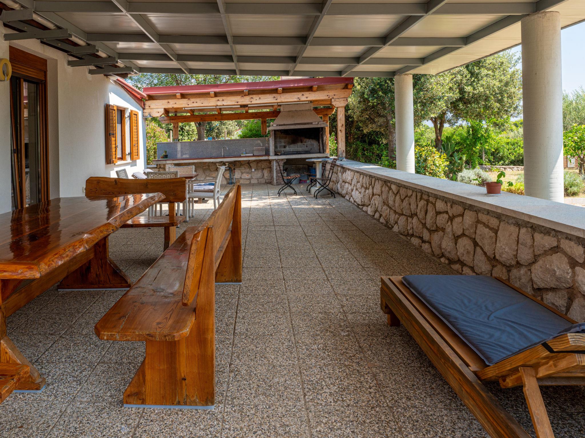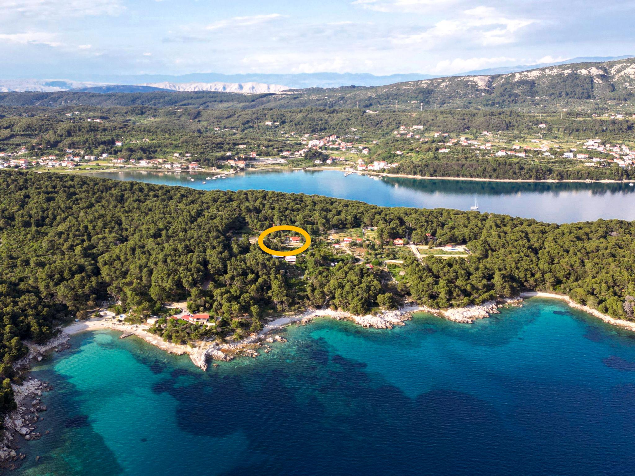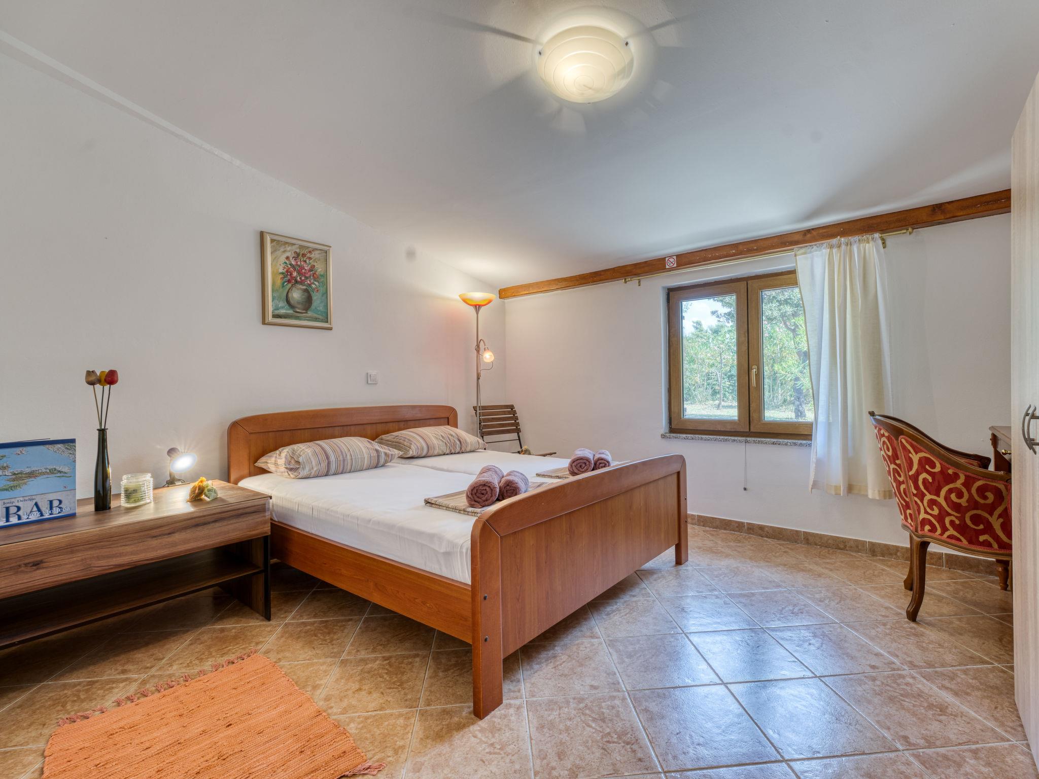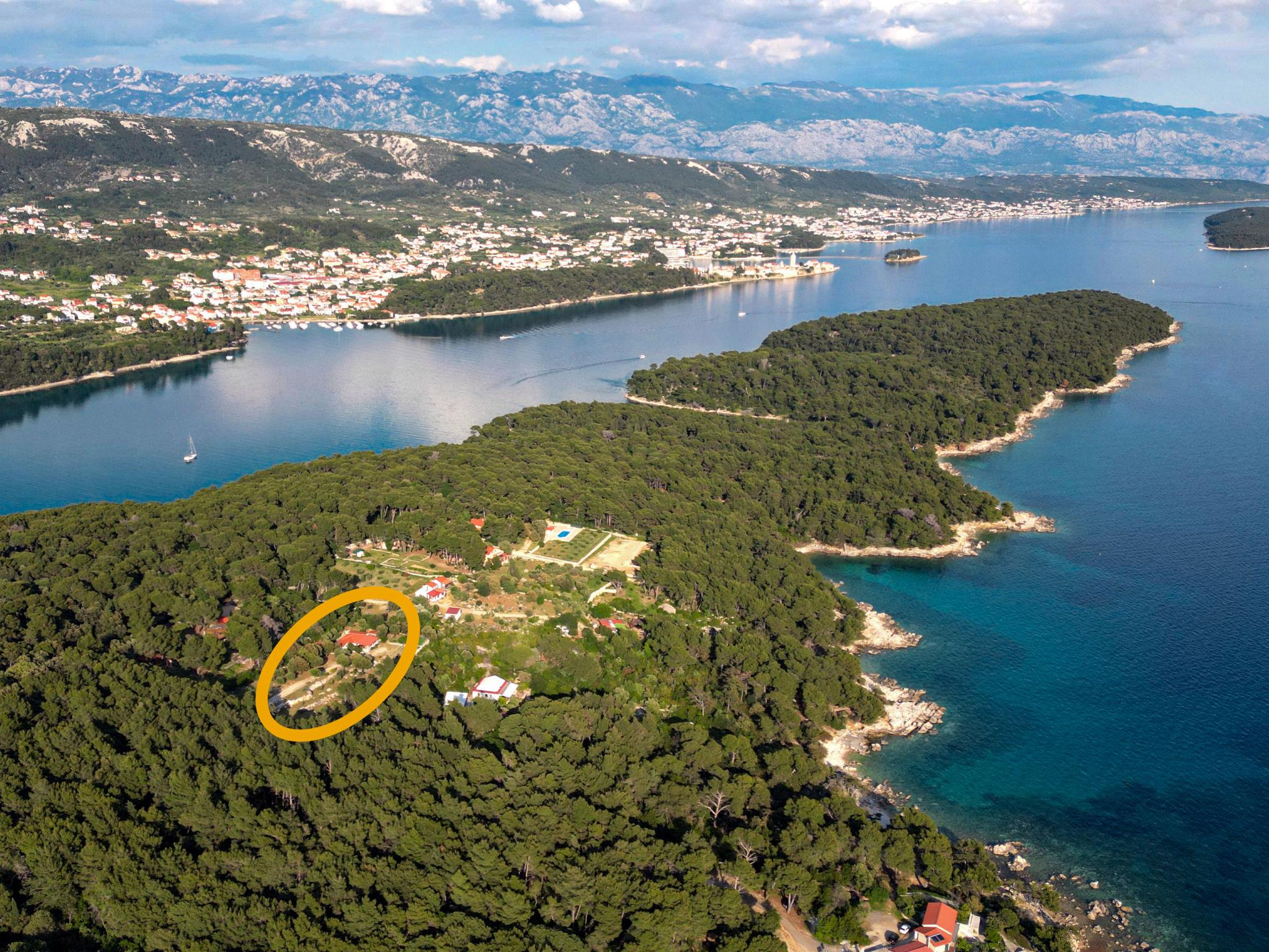 Single-family house "Dundo House". 5 km from the centre of Rab, in a quiet, sunny position, 200 m from the sea, 450 m from the beach, in a cul-de-sac. Private: property 4'000 m2 (fenced) with wildlife garden and trees. In the house: internet access, washing machine. Parking (for 4 cars) at the house on the premises. Supermarket 3.4 km, restaurant 1 km, bus stop 3.2 km, pebble beach, rocky beach 450 m, nudist beach 200 m. Tennis 2.5 km.