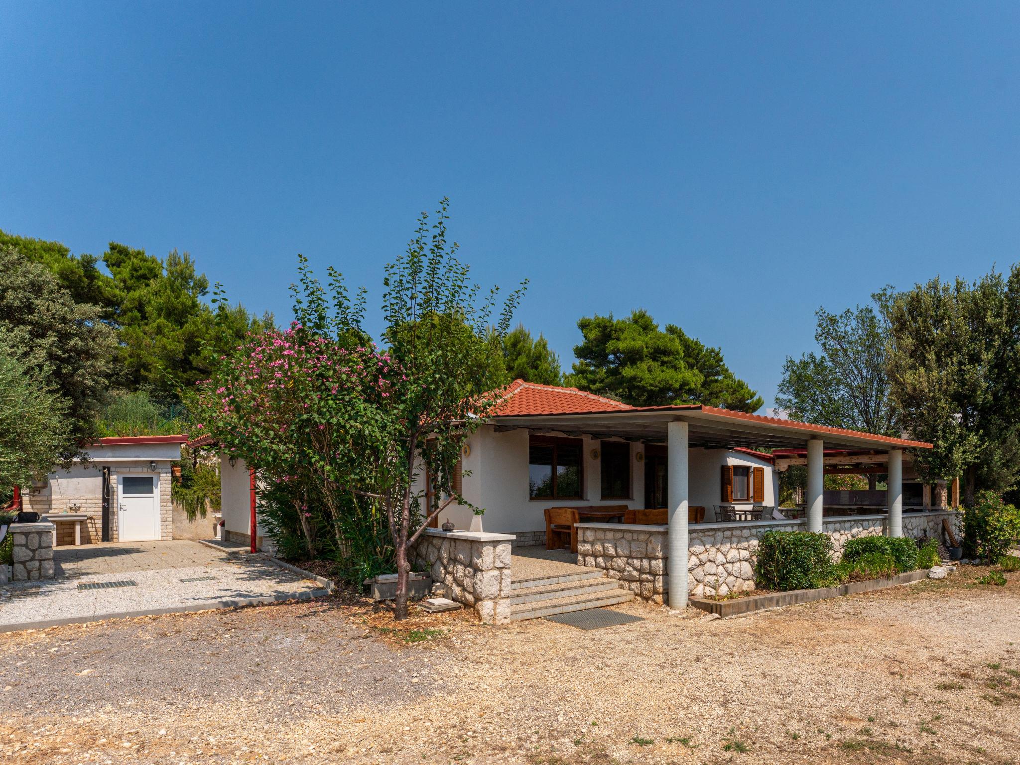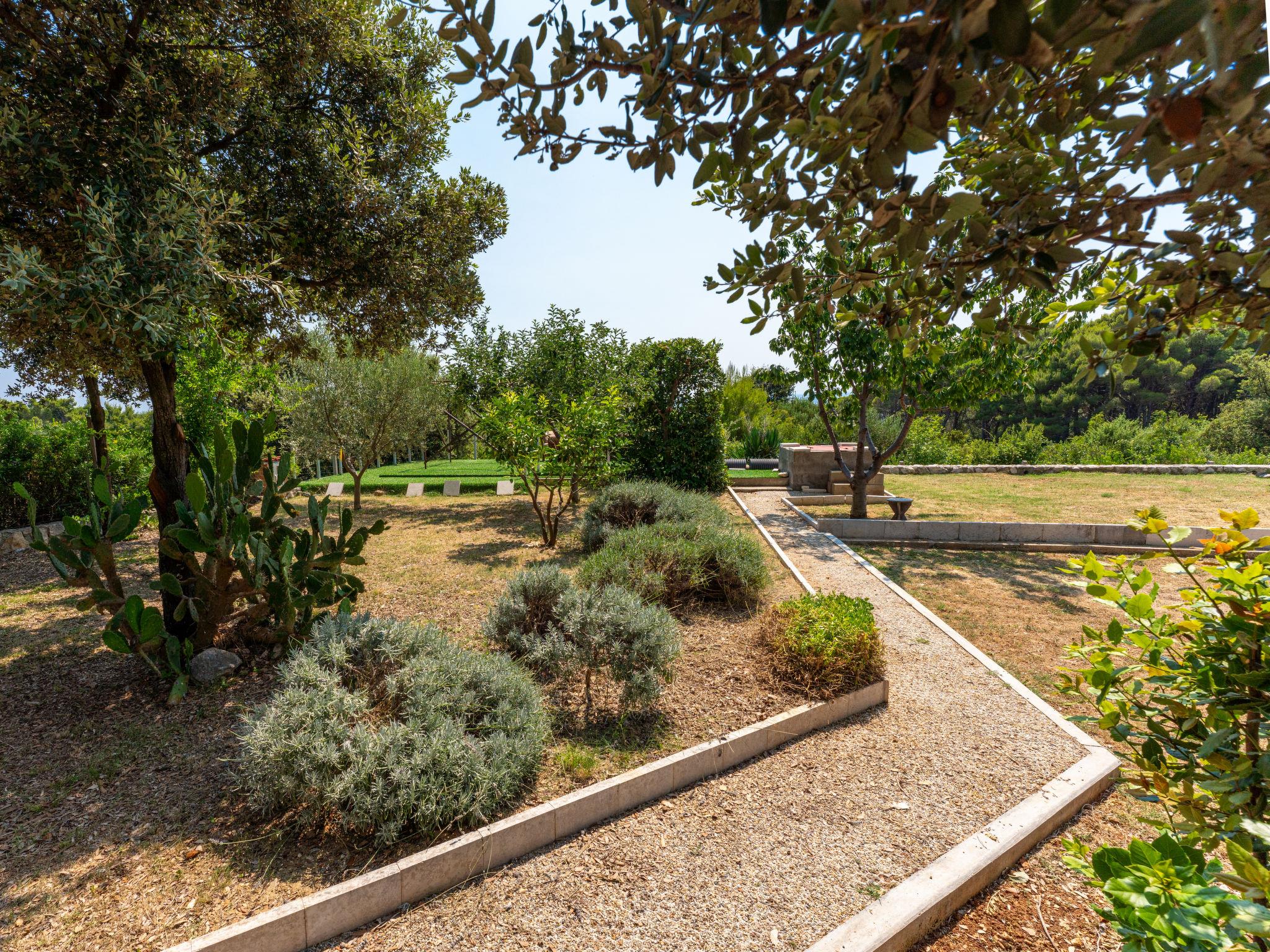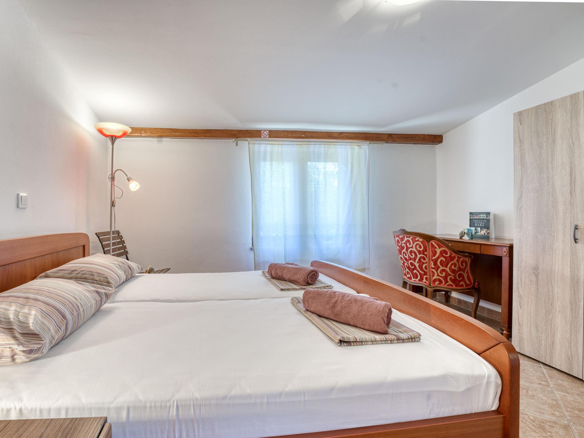 Single-family house "Dundo House". 5 km from the centre of Rab, in a quiet, sunny position, 200 m from the sea, 450 m from the beach, in a cul-de-sac. Private: property 4'000 m2 (fenced) with wildlife garden and trees. In the house: internet access, washing machine. Parking (for 4 cars) at the house on the premises. Supermarket 3.4 km, restaurant 1 km, bus stop 3.2 km, pebble beach, rocky beach 450 m, nudist beach 200 m. Tennis 2.5 km.
