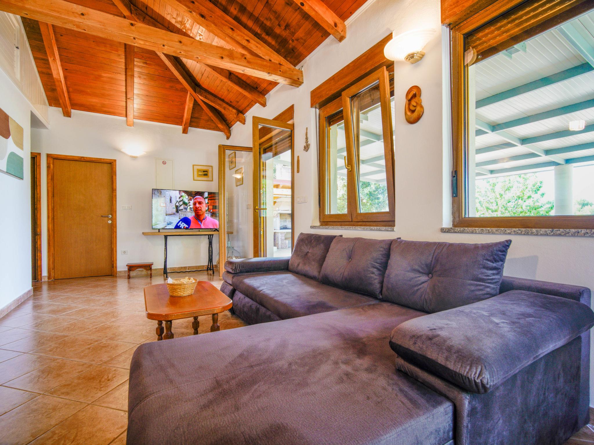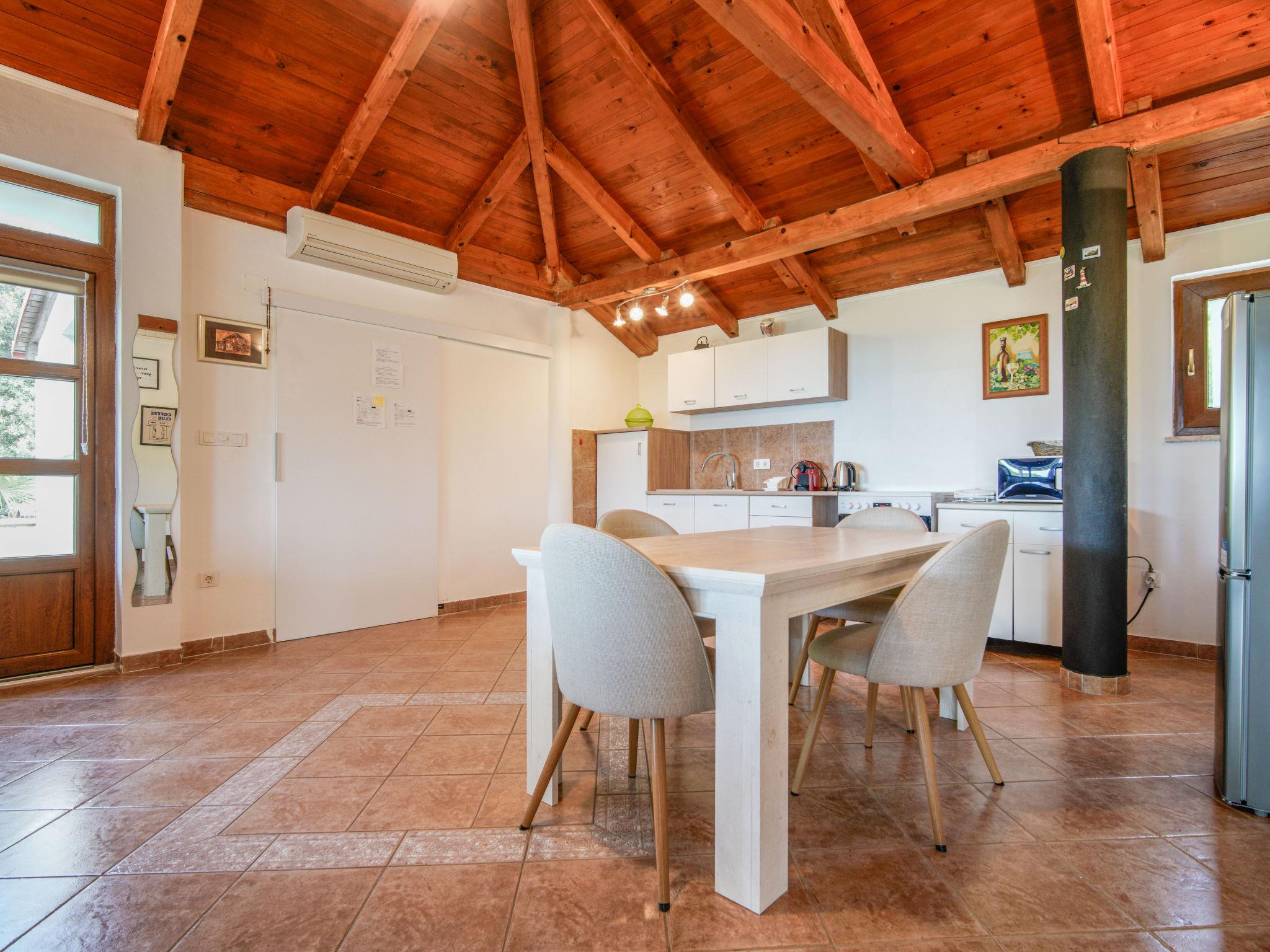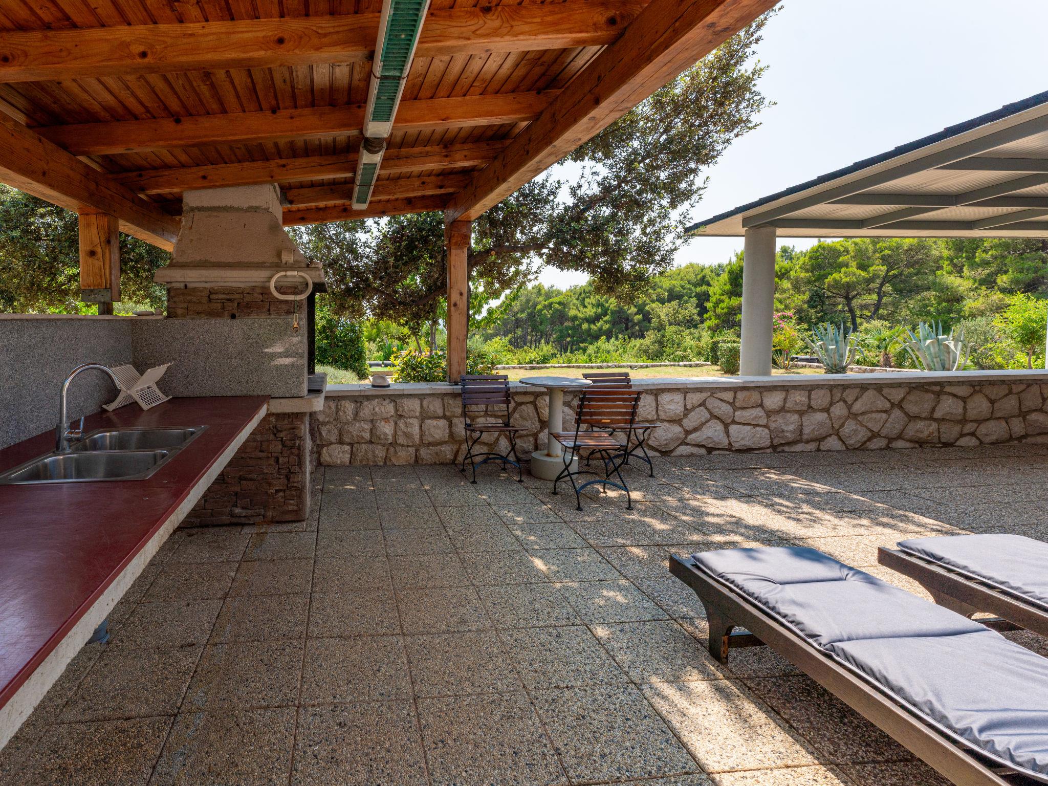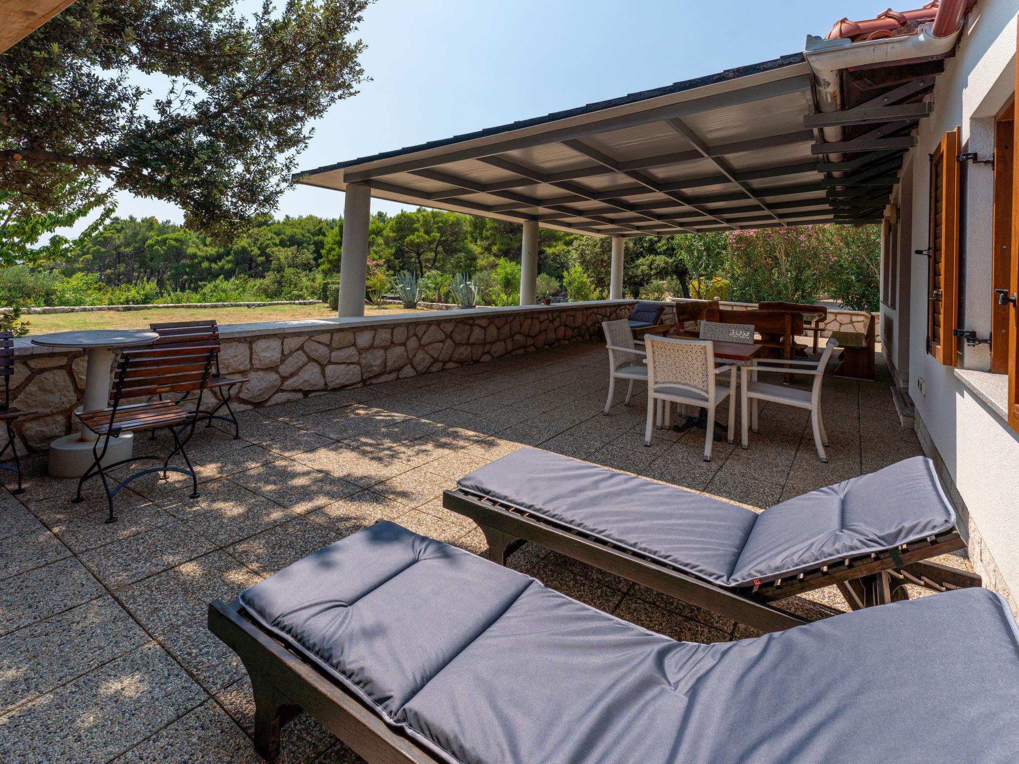 Single-family house "Dundo House". 5 km from the centre of Rab, in a quiet, sunny position, 200 m from the sea, 450 m from the beach, in a cul-de-sac. Private: property 4'000 m2 (fenced) with wildlife garden and trees. In the house: internet access, washing machine. Parking (for 4 cars) at the house on the premises. Supermarket 3.4 km, restaurant 1 km, bus stop 3.2 km, pebble beach, rocky beach 450 m, nudist beach 200 m. Tennis 2.5 km.