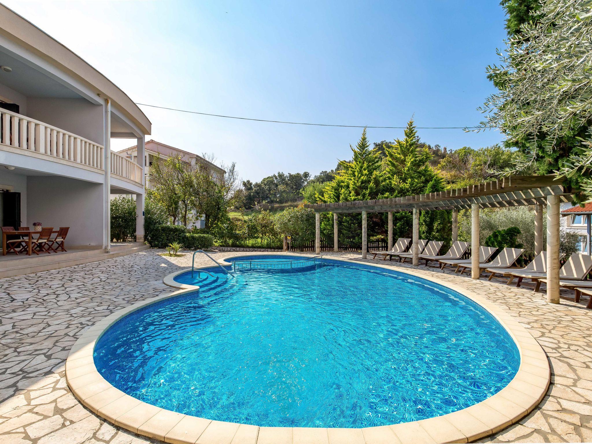 Kampor, 6 km from Rab: Child friendly apartment block. In a quiet, sunny position, 10 m from the sea, 10 m from the beach. For shared use: property (fenced), well-kept garden with lawn, swimming pool kidney-shaped heated (12 x 6 m, depth 120 - 160 cm, seasonal availability: 25.Apr. - 03.Oct.) with internal staircase. Children's pool, outdoor shower, arbour, garden furniture, barbecue. In the house: internet access. Parking on the premises. Shop, restaurant 150 m, bus stop 2.4 km, concrete beach 10 m. Please note: the photograph shows a typical example. Additional accommodations can be booked. Property ref. HR3703.631 is situated on the same property. The apartment house "Mare" is situated on the same grounds (2700 m2) with the apartment house "Tomislav", with swimming pool for shared use with counterflow. One part of the pool is a paddling pool, depth 30 - 60 cm. Deck chairs at disposal. In front of the house concrete beach with sand sea bottom, slightly sloping, very suitable for children.