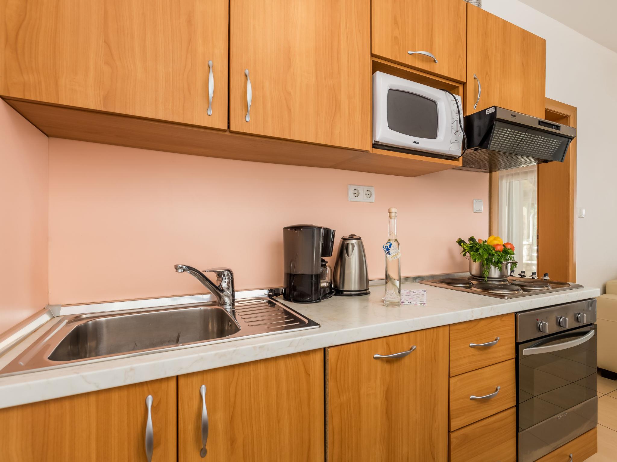 3-room house 65 m2. Modern and cosy furnishings: living/dining room 18 m2 with 1 double sofabed (145 cm, length 195 cm), satellite TV and air conditioning. Exit to the terrace. 2 rooms, each room with 1 double bed (160 cm, length 200 cm), shower/WC. Open kitchen (4 hot plates, oven, dishwasher, microwave, freezer). Terrace 25 m2, roofed. Terrace furniture. Facilities: safe. Internet (WiFi, free). Parking.
