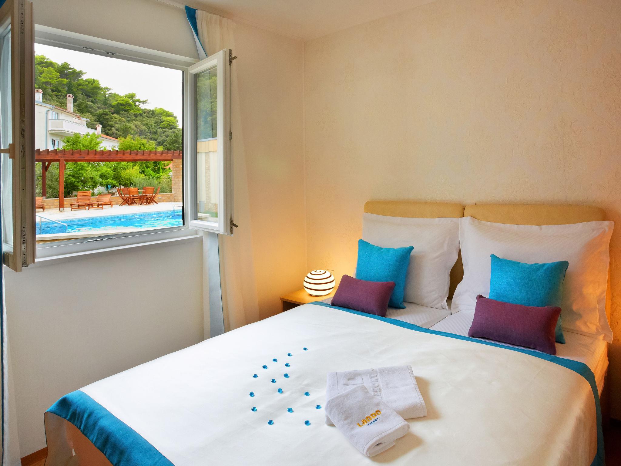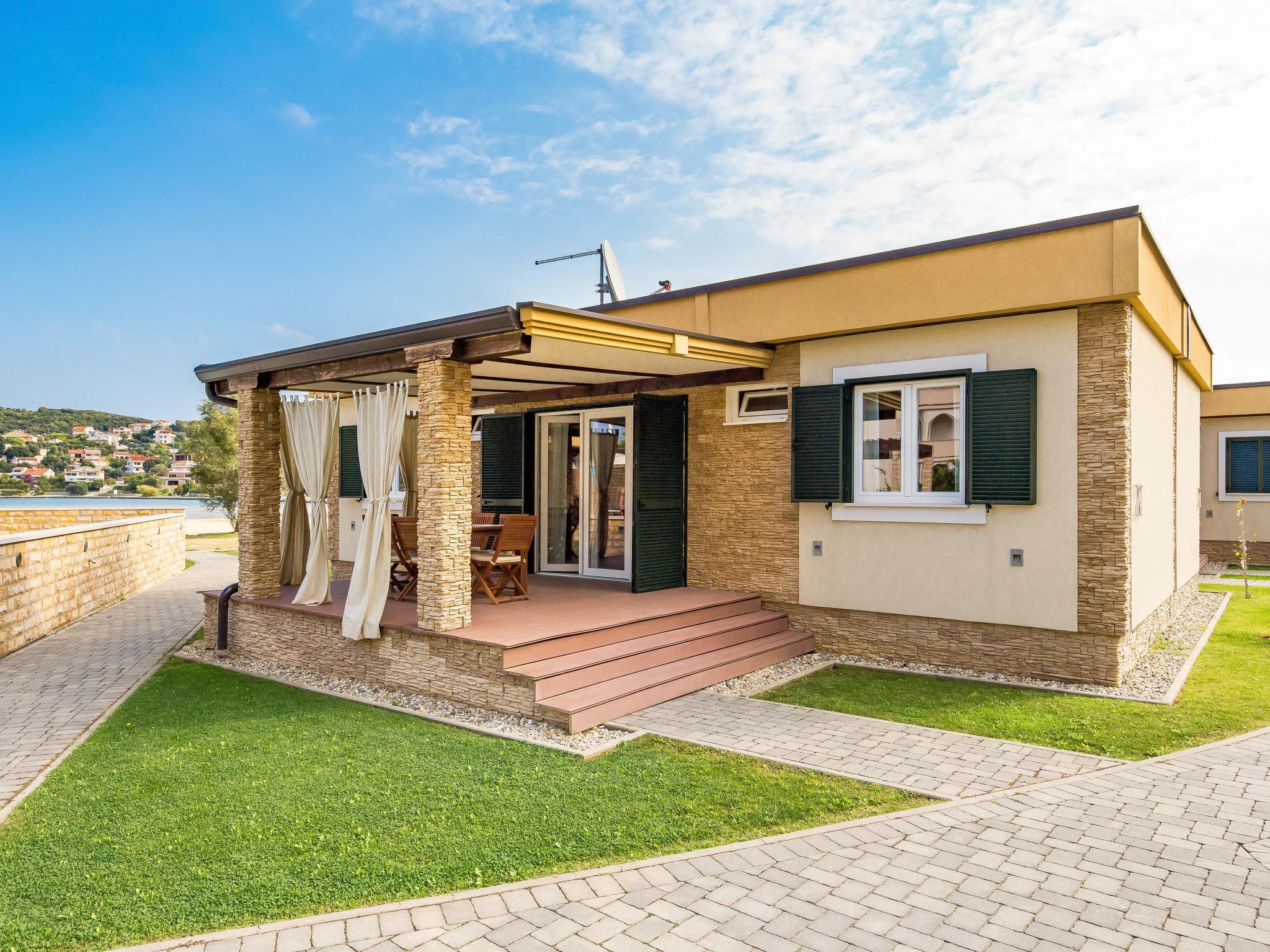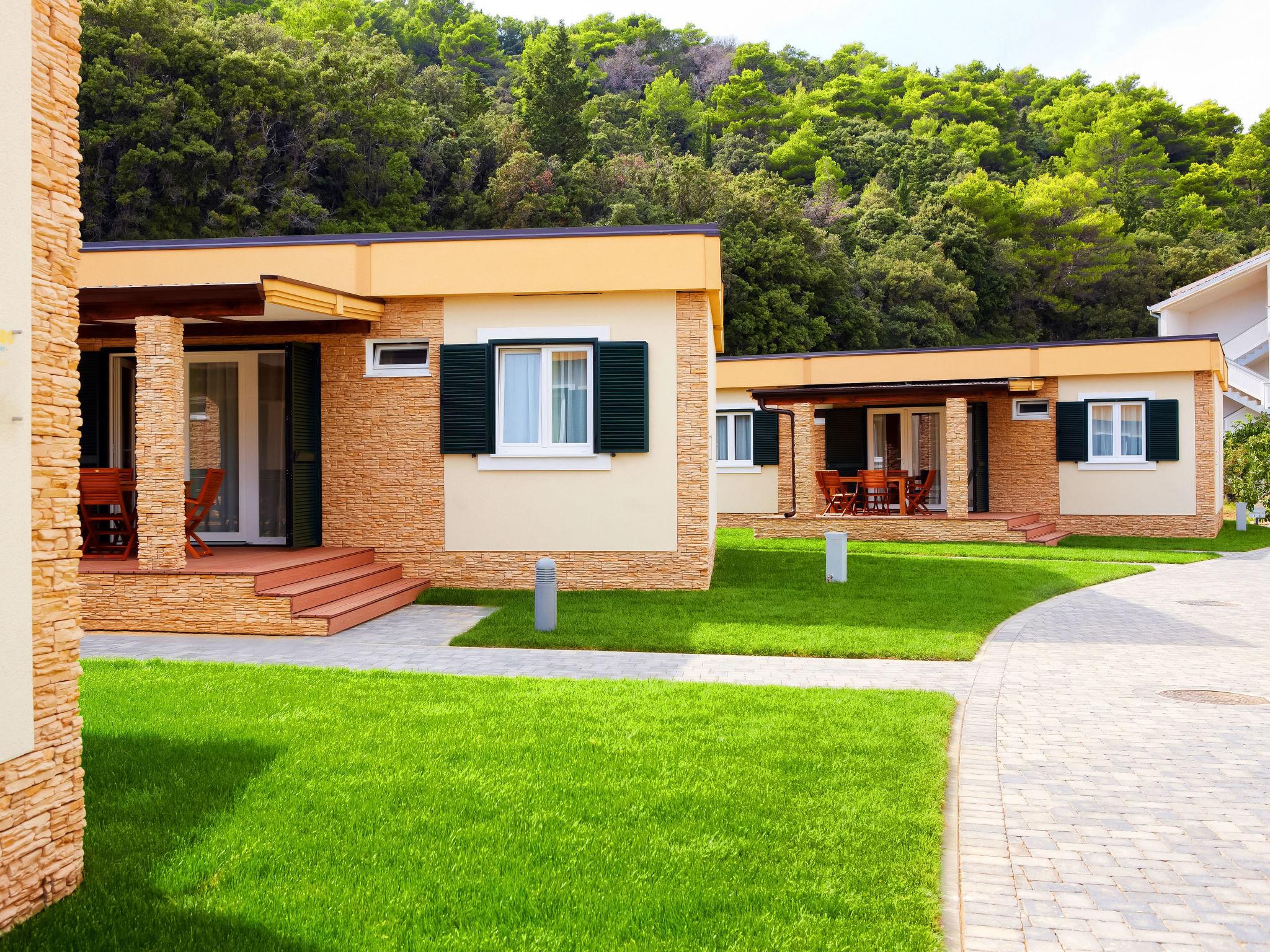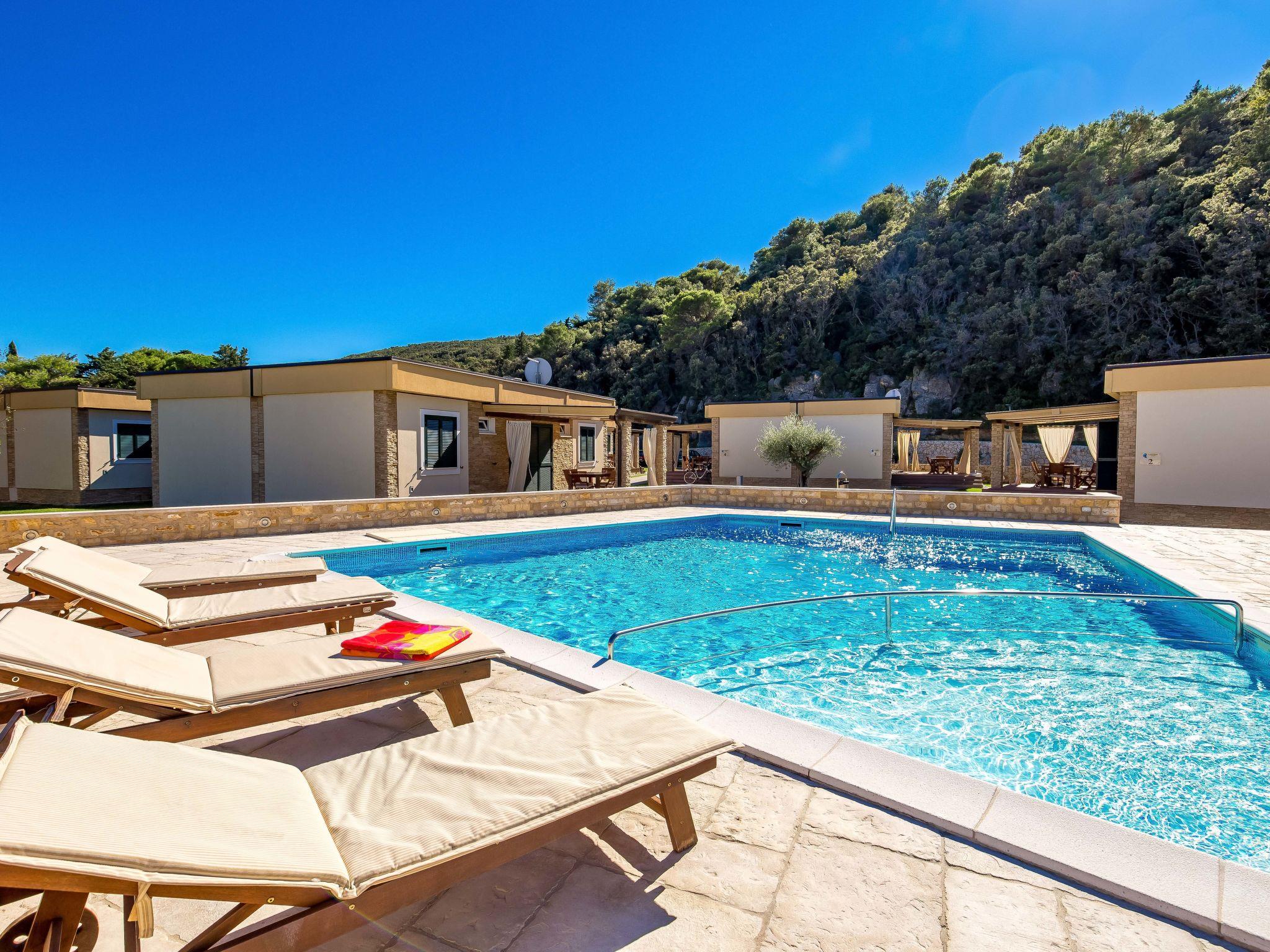 Kampor 7 km from Rab: Small, beautiful holiday village "Camping Lando". 11 houses in the resort. In a quiet, sunny position, at the seaside, on the beach. For shared use: 2 swimming pools angular heated (10 x 8 m, 80 m2, depth 120 - 160 cm, seasonal availability: 13.May. - 30.Sep.) with internal staircase. Outdoor shower. In the complex: reception, internet access. Parking on the premises. Shop 500 m, restaurant, bar, café 50 m, bus stop 2.4 km, sandy beach "Lando". Please note: the photograph shows a typical example. The houses are situated 30 - 50 m from the sea and the sandy beach, 10 - 30 m from the swimming pool.