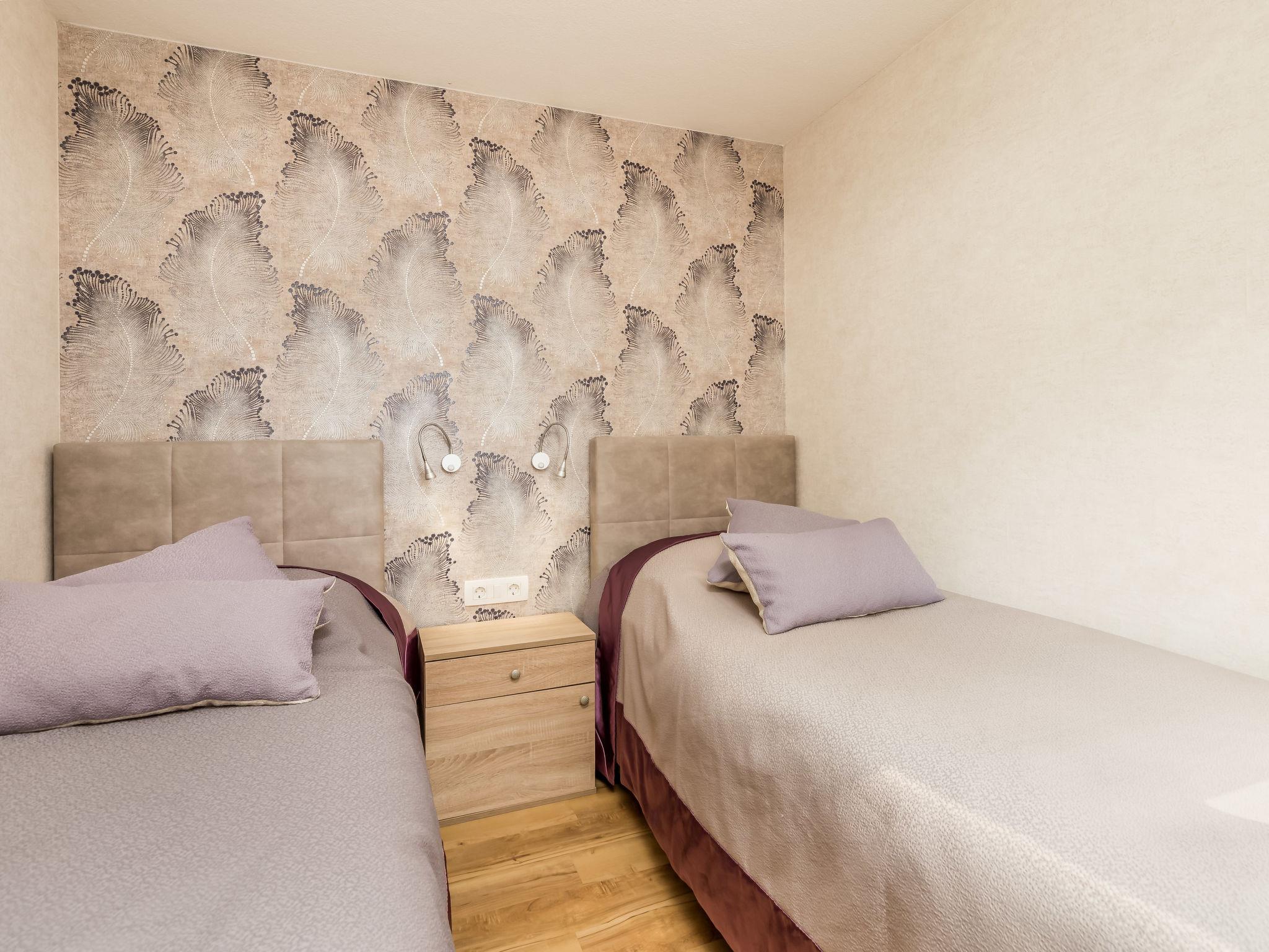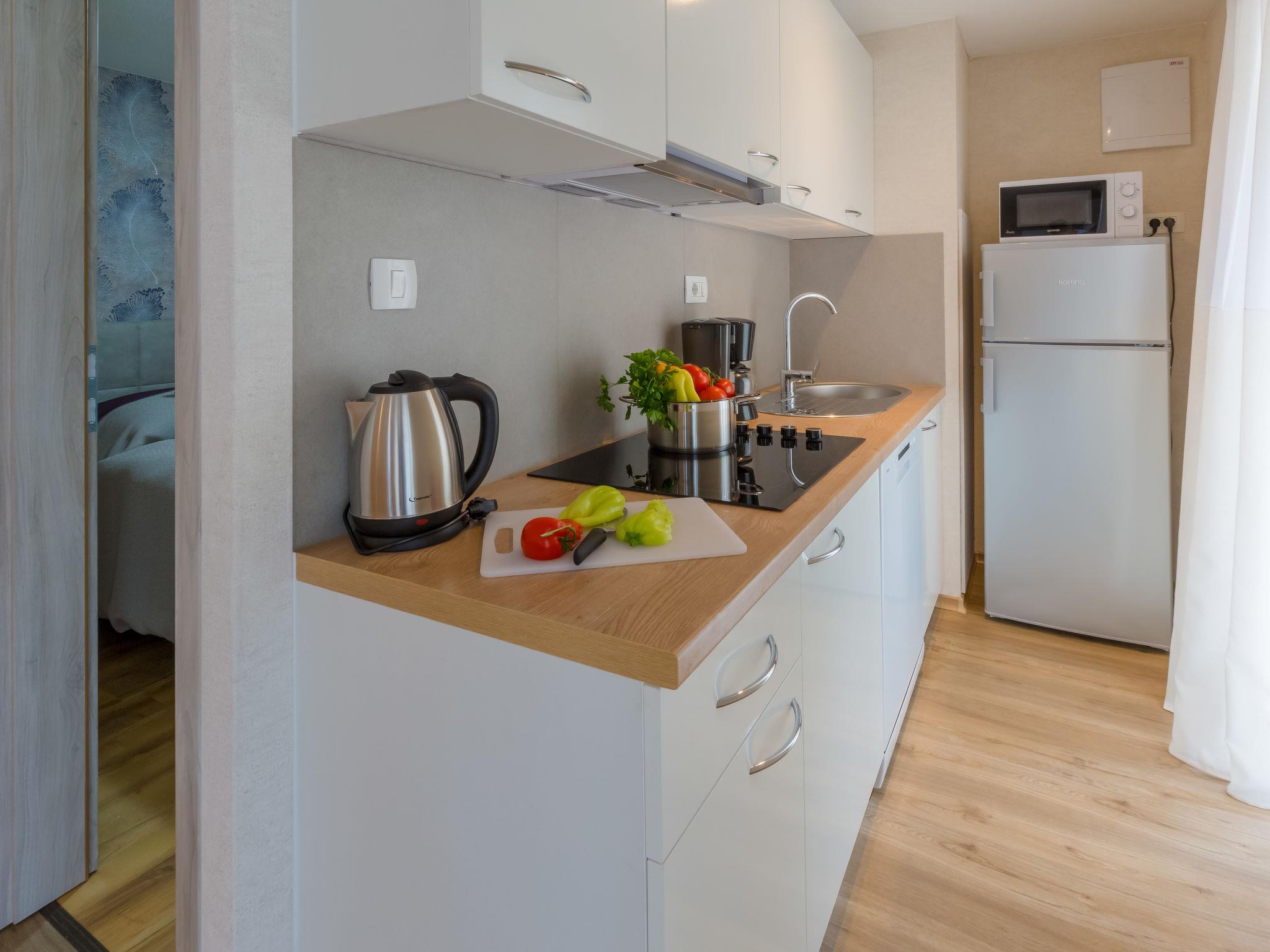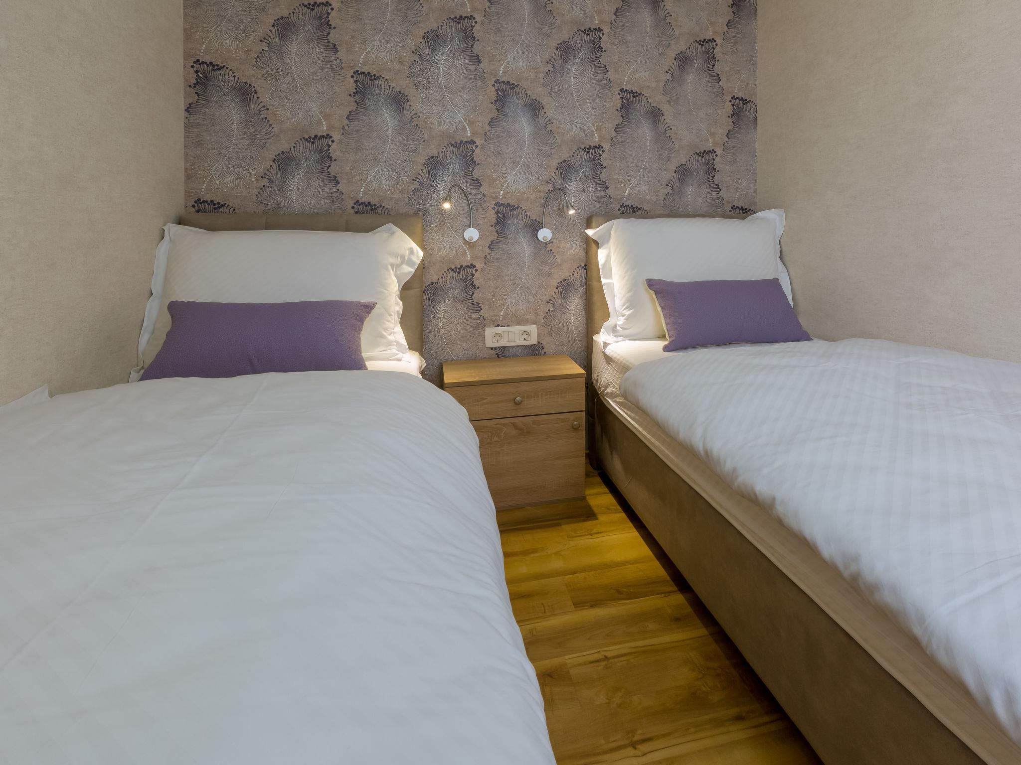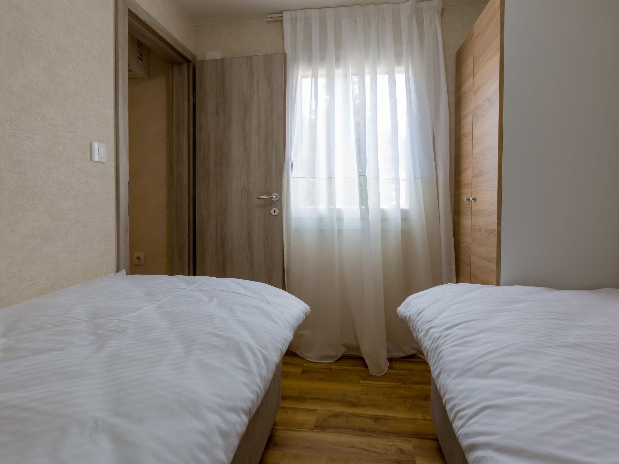 "Standard", 3-room house 40 m2. Living/dining room with 1 double sofabed (160 cm, length 200 cm), satellite TV (flat screen), air conditioning. Exit to the terrace. 1 room with 1 french bed (160 cm, length 200 cm), shower/WC. 1 room with 2 beds (90 cm, length 200 cm). Open kitchen (dishwasher, 2 ceramic glass hob hotplates, microwave, freezer). Shower/WC. Terrace 20 m2. Terrace furniture. Facilities: hair dryer. Internet (WiFi, free).
