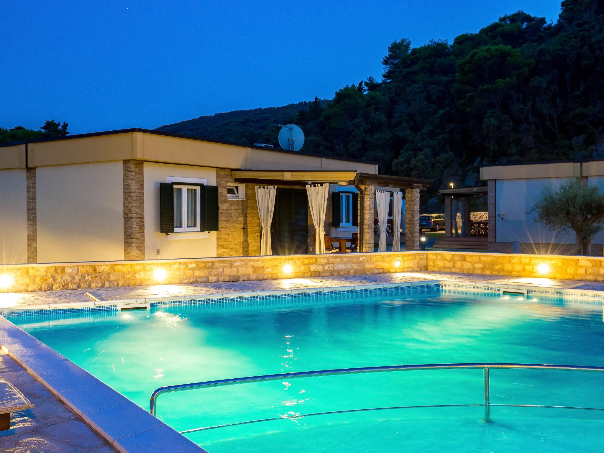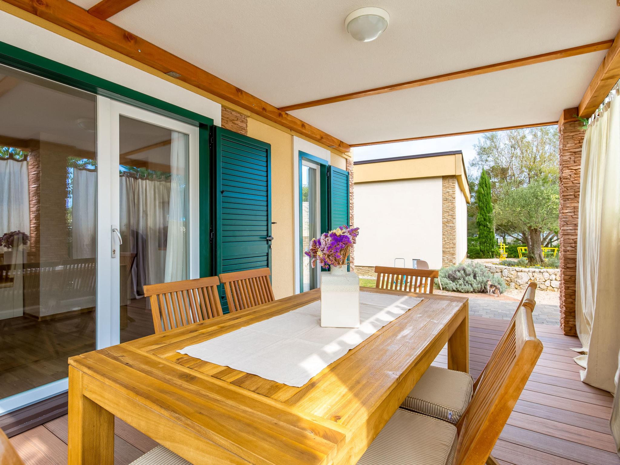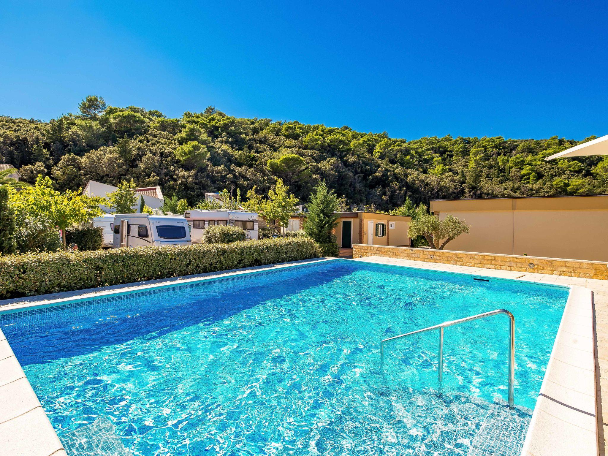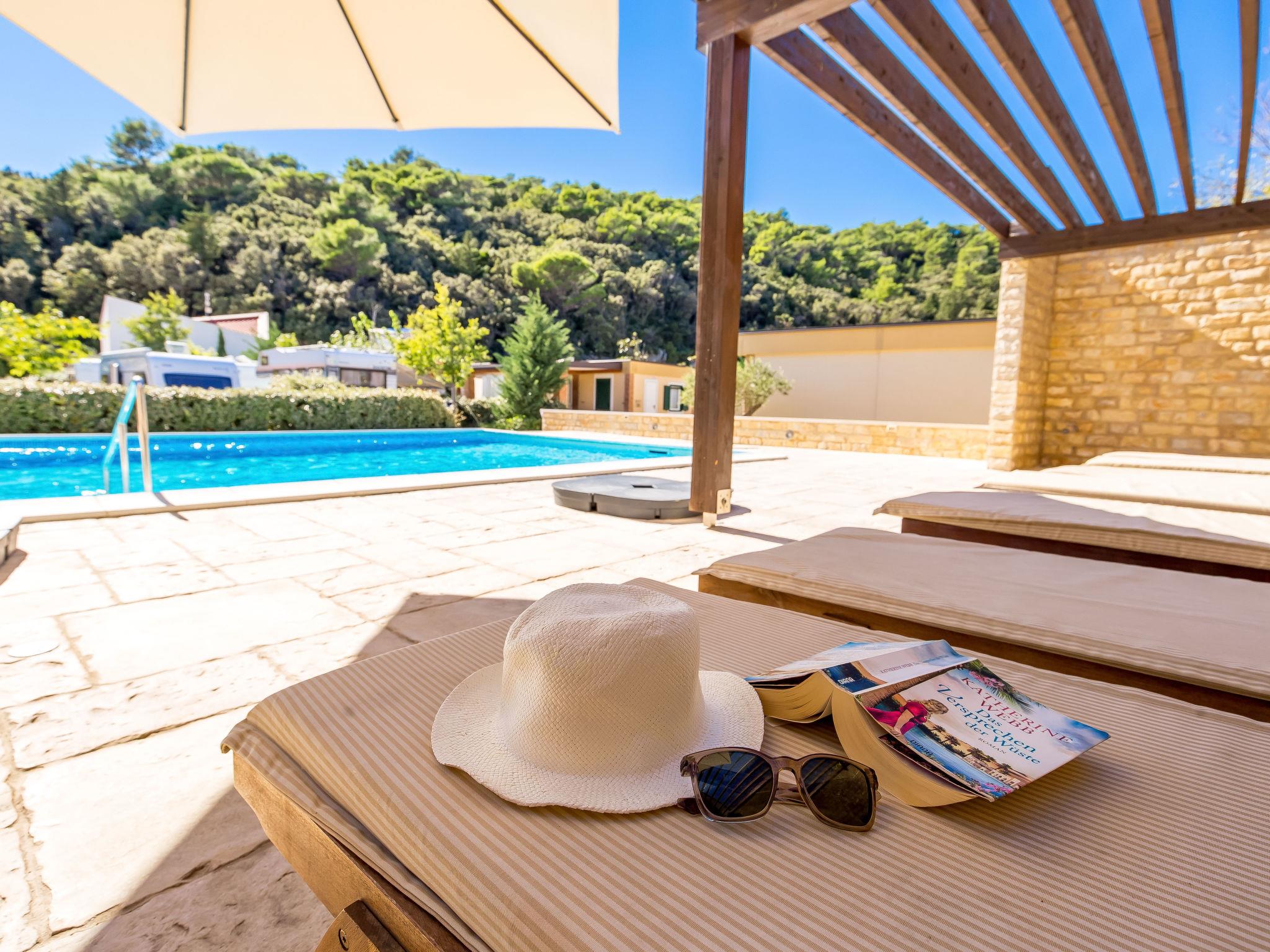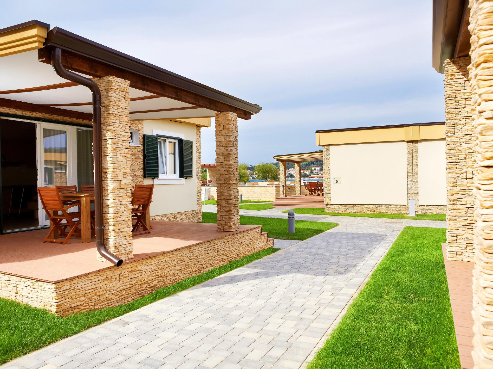 Kampor 7 km from Rab: Small, beautiful holiday village "Camping Lando". 11 houses in the resort. In a quiet, sunny position, at the seaside, on the beach. For shared use: 2 swimming pools angular heated (10 x 8 m, 80 m2, depth 120 - 160 cm, seasonal availability: 13.May. - 30.Sep.) with internal staircase. Outdoor shower. In the complex: reception, internet access. Parking on the premises. Shop 500 m, restaurant, bar, café 50 m, bus stop 2.4 km, sandy beach "Lando". Please note: the photograph shows a typical example. The houses are situated 30 - 50 m from the sea and the sandy beach, 10 - 30 m from the swimming pool.