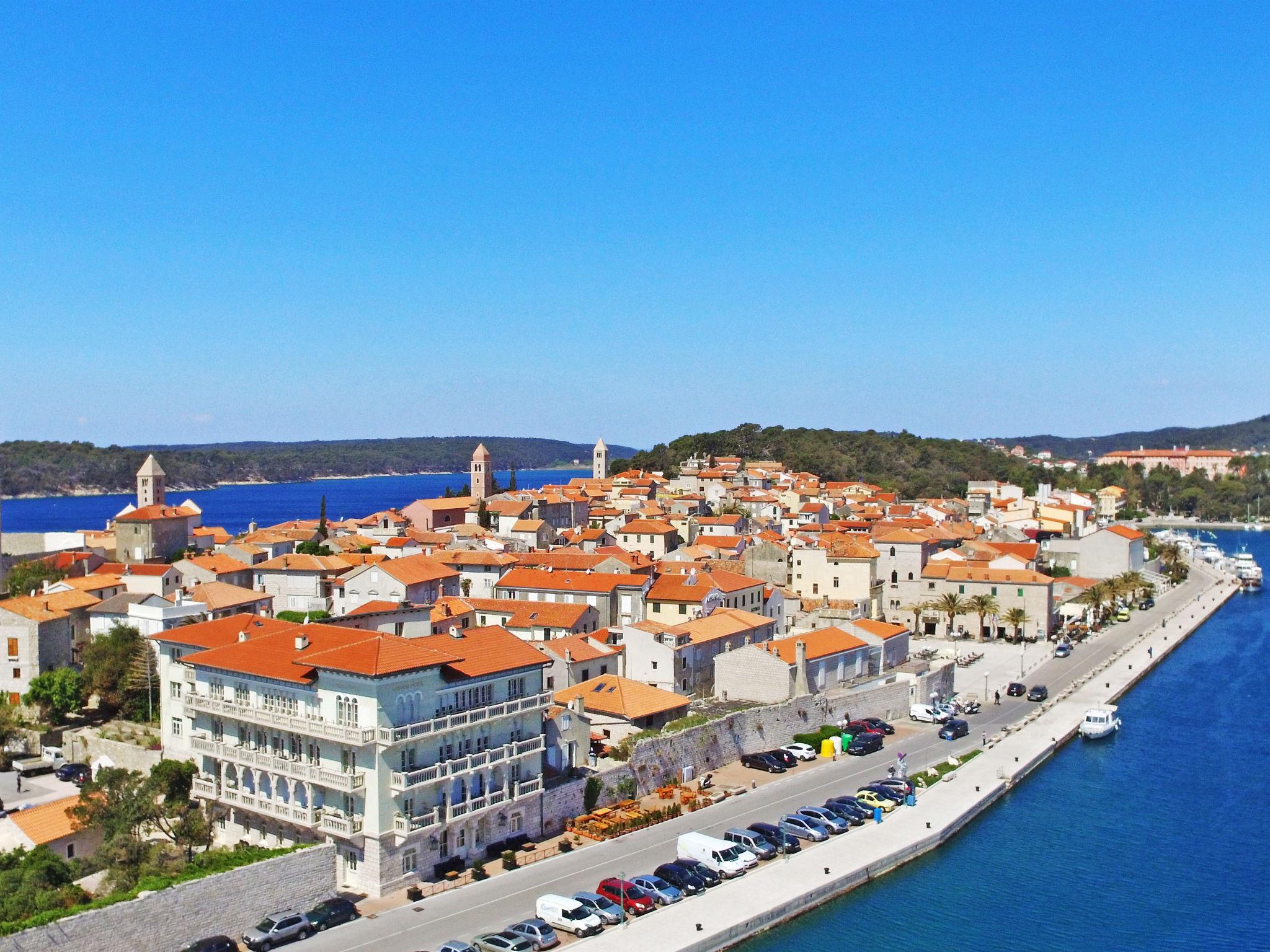 Banjol 2 km from Rab: Apartment house "Jadranka". In a quiet, sunny, elevated position, 200 m from the sea, 200 m from the beach, in the countryside, east facing position. For shared use: property 1'200 m2 (fenced), meadow 200 m2. Barbecue. In the house: washing machine (for shared use). Parking at the house on the premises. Shop 1 km, restaurant 500 m, bus stop 650 m, pebble beach 200 m. Please note: Additional accommodations can be booked.