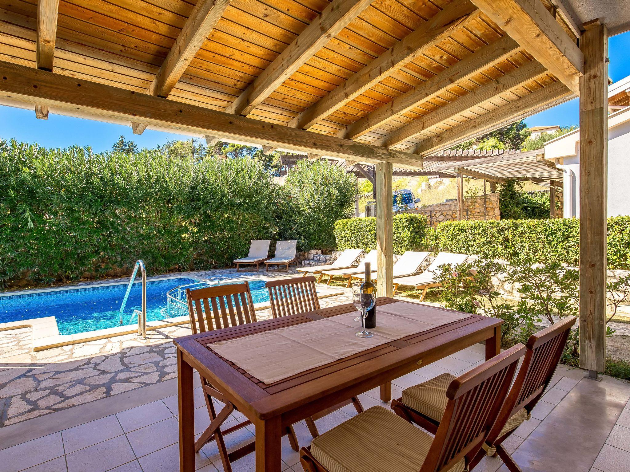 Beautiful apartment block. In the district of Palit 2 km from the centre of Rab, outside the resort, in a sunny, elevated position, 100 m from the sea, 250 m from the beach. For shared use: property (fenced), well-kept garden with lawn, swimming pool angular heated (9 x 4 m, depth 120 - 160 cm, seasonal availability: 13.May. - 30.Sep.) with internal staircase. Children's pool, outdoor shower, garden furniture, barbecue. In the house: internet access. Roofed, parking at the house. Shop 900 m, restaurant 1 km, bus stop 1.9 km, sandy beach, pebble beach 250 m, public bathing area 900 m. Tennis 2.5 km. Please note: the photograph shows a typical example. Additional accommodations can be booked. Property ref. HR3700.301, 304 is situated on the same property. The apartment house "Mihaela" is situated on the same grounds (1600 m2) with apartment houses "Ivan" and "Pavica", with swimming pool for shared use, with counterflow. One part of the pool is a paddling pool, depth 30 - 60cm. Deck chairs at disposal. The old town of Rab can be reached by a coastal promenade (20 minutes walk).