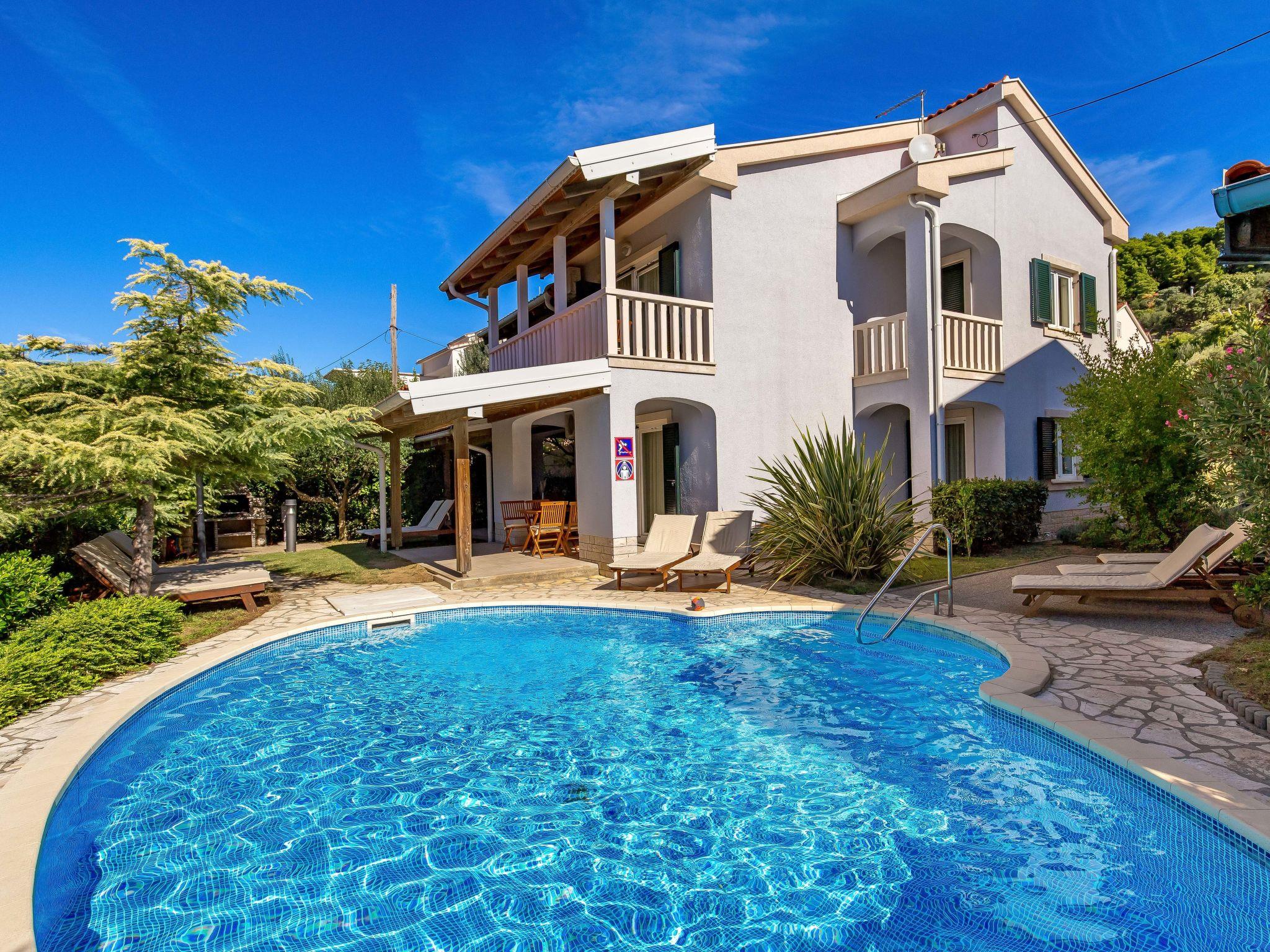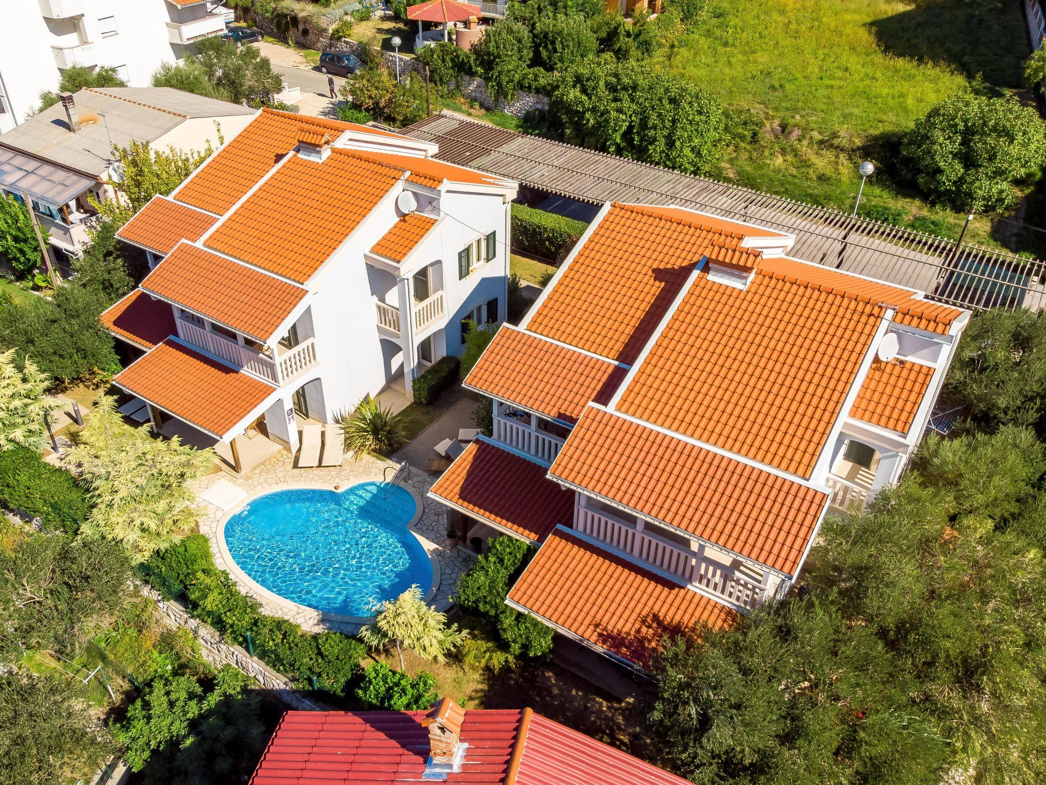 Beautiful apartment block. In the district of Banjol 200 m from the centre of Rab, in a quiet, sunny position, 200 m from the sea, 500 m from the beach, in a cul-de-sac. For shared use: property (fenced), well-kept garden with lawn, swimming pool heated (8 x 4 m, depth 120 - 160 cm, seasonal availability: 13.May. - 30.Sep.) with internal staircase. Outdoor shower, garden furniture, barbecue. In the house: internet access. Roofed, parking at the house on the premises. Shop 100 m, restaurant 30 m, bus stop 450 m, sandy beach, pebble beach 700 m, rocky beach, public bathing area, concrete beach 500 m. Please note: the photograph shows a typical example. Additional accommodations can be booked. Property ref. HR3700.314 is situated on the same property. The apartment house "Petra" is situated on the same grounds (700 m2) with the apartment house "Ivana", with elliptic shaped swimming pool for shared use, with counterflow. Deck chairs at disposal.