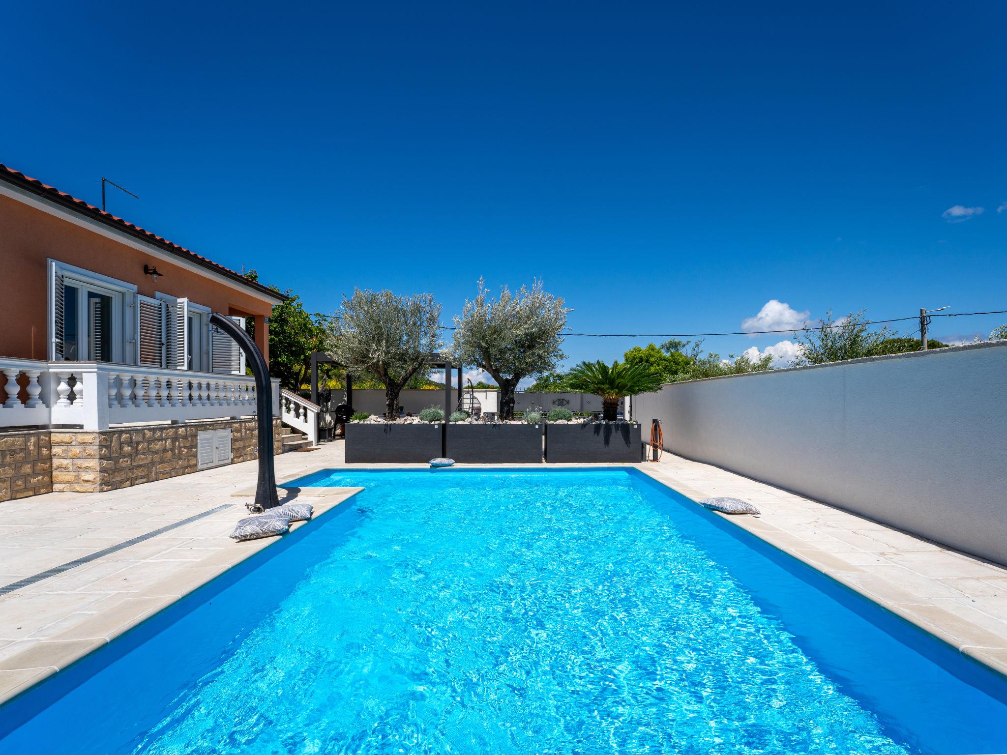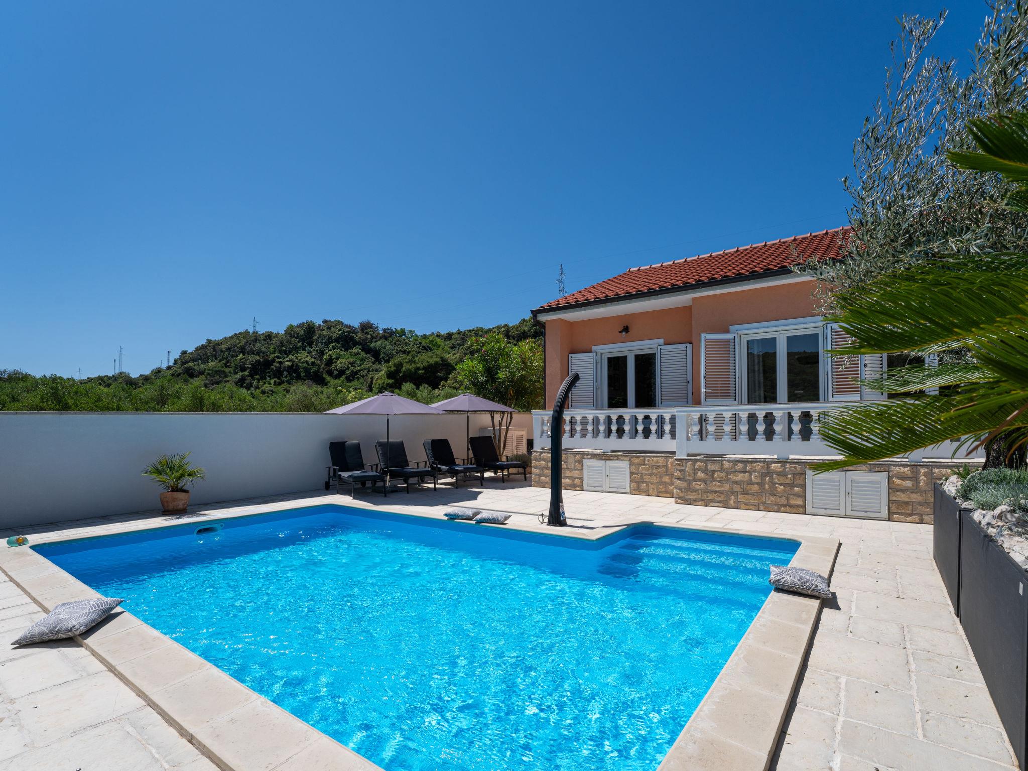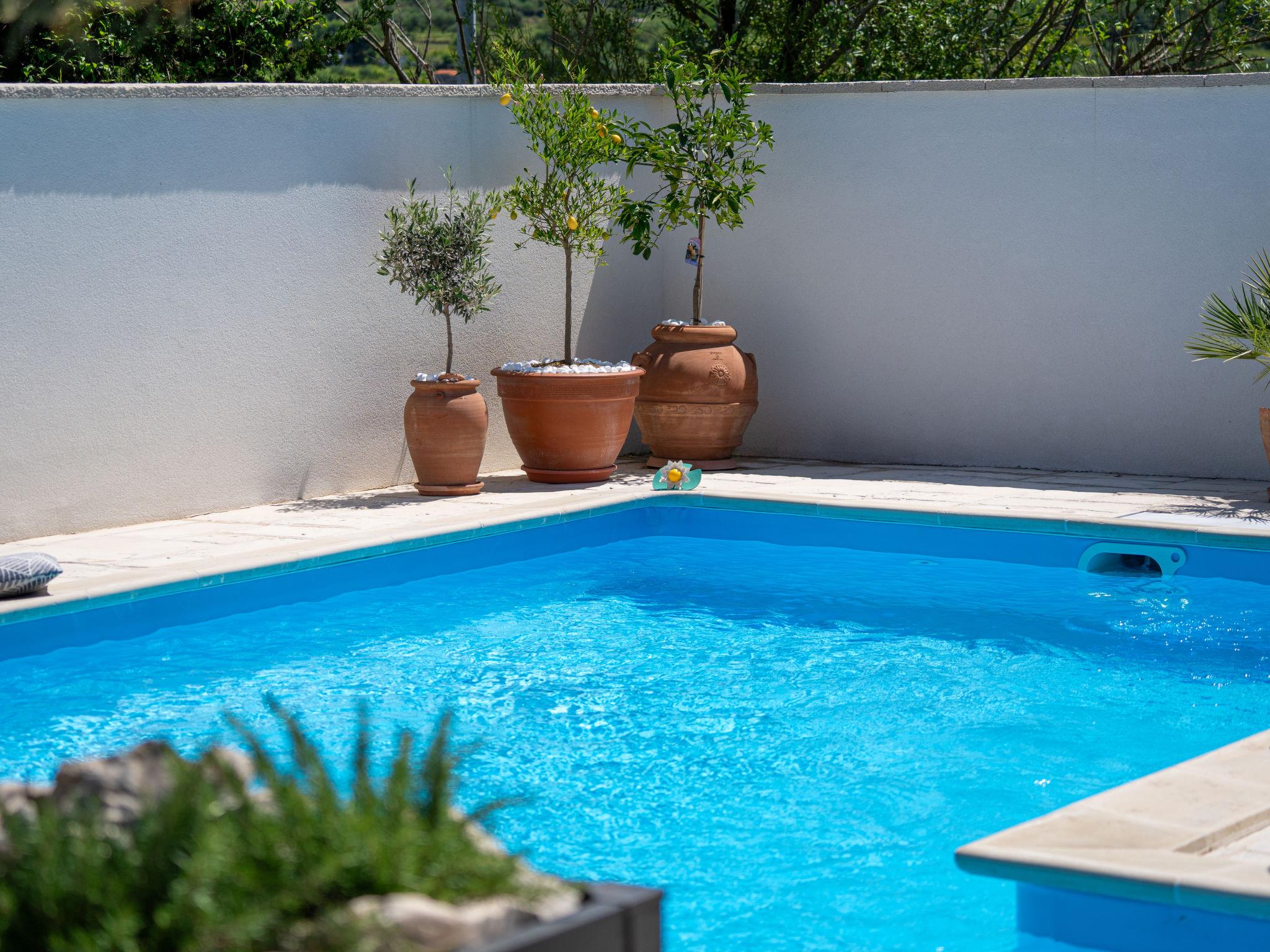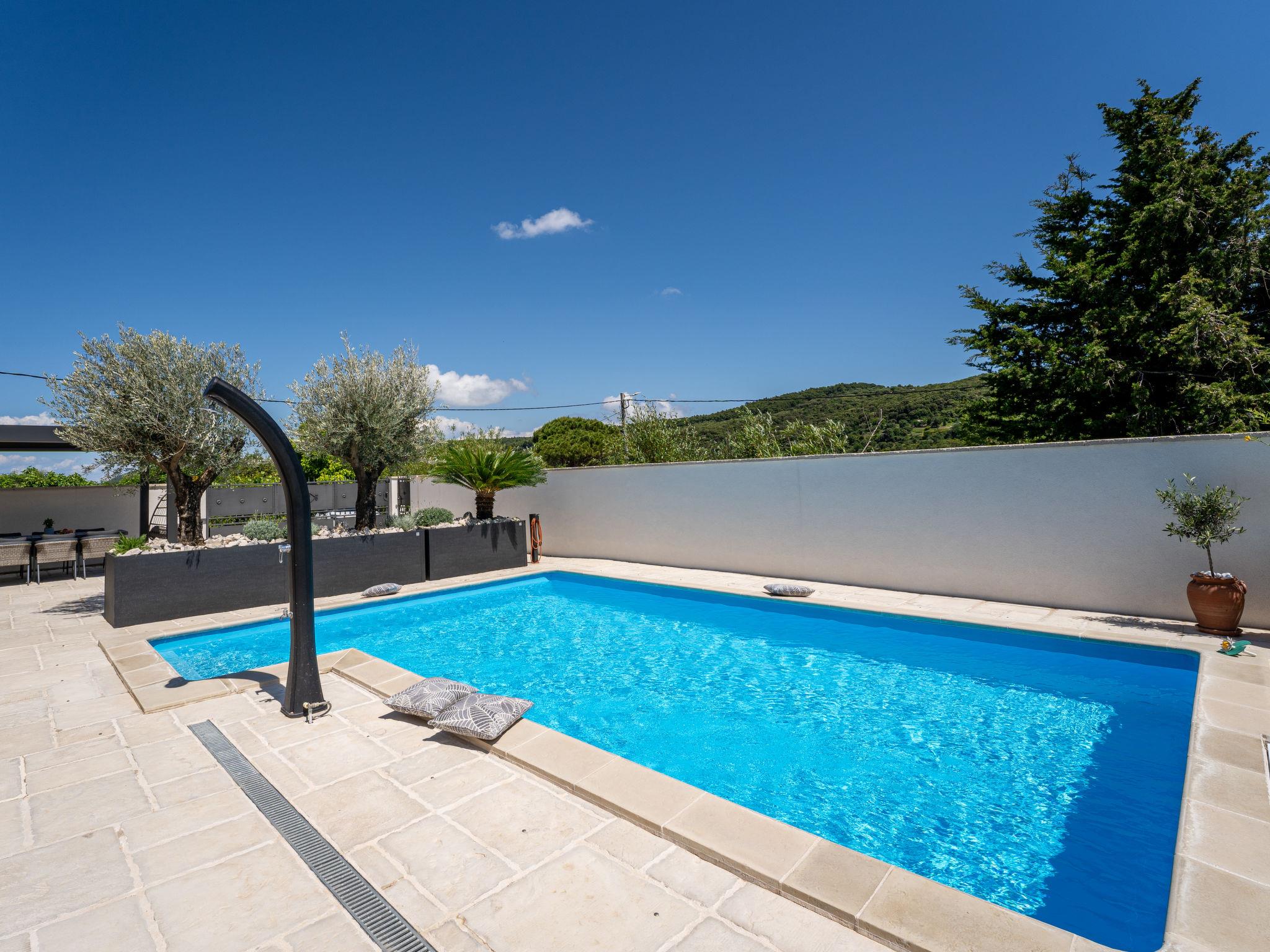 Single-family house "Happy Home Rab". In the hamlet Mundanije 4 km from the centre of Rab, in a sunny position, 4.3 km from the sea, 4.4 km from the beach. Private: property 520 m2 (fenced) with lawn 100 m2 wildlife garden, swimming pool angular (7 x 4 m, depth 110 - 140 cm, seasonal availability: 01.May. - 15.Oct.) with internal staircase and salt-electrolysis pool-cleaning system. Outdoor shower, arbour (8 m2), pergola (12 m2), terrace (27 m2), garden furniture, barbecue. In the house: internet access, washing machine, tumble dryer. Parking (for 2 cars) at the house on the premises. Supermarket 2.7 km, restaurant 900 m, café 4 km, bus stop 4.2 km.