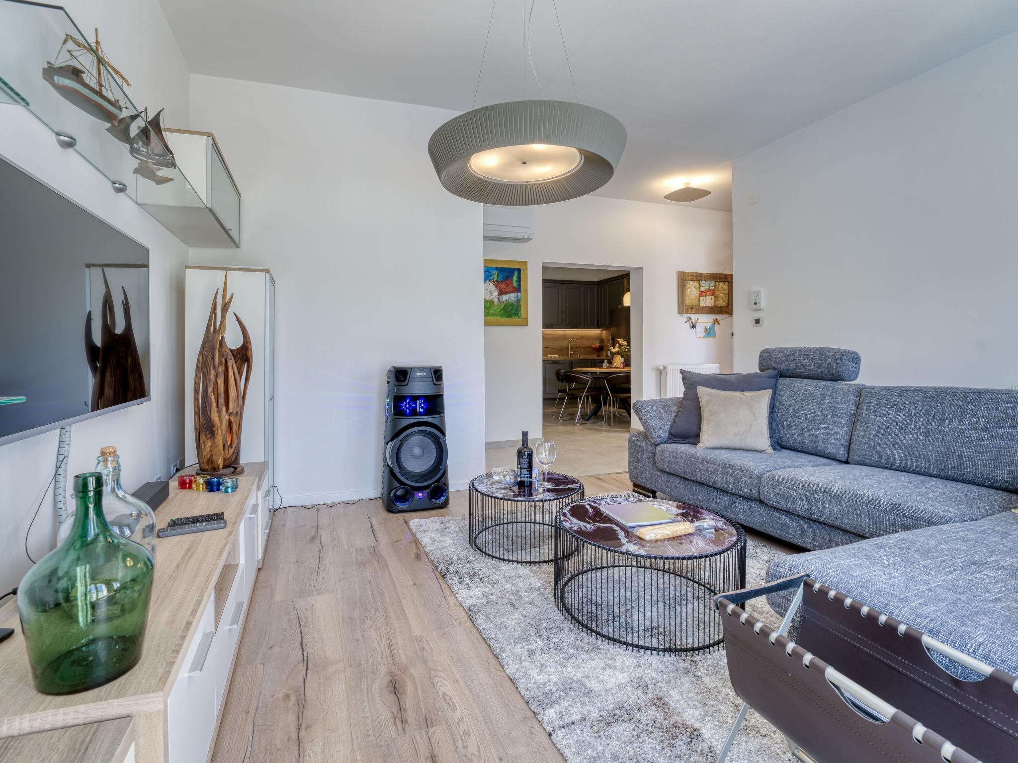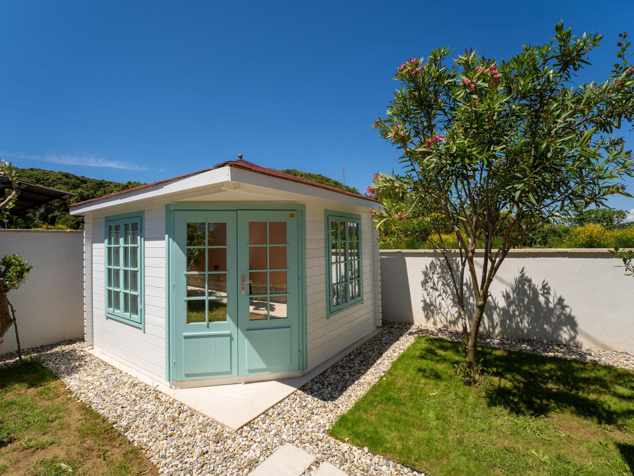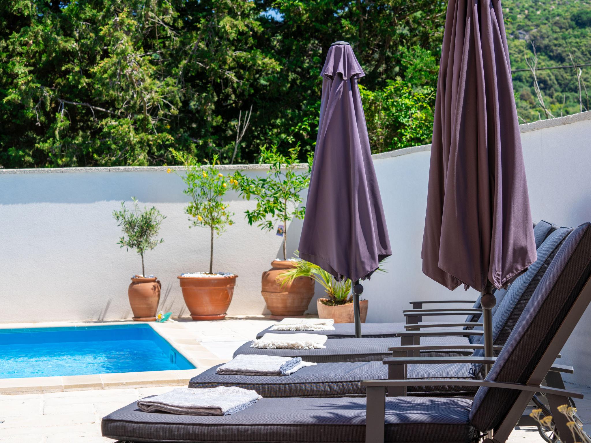 3-room house 76 m2, on the upper ground floor. Modern and tasteful furnishings: living/dining room with cable TV and air conditioning. Exit to the balcony. 1 room with 2 beds (90 cm, length 200 cm). Exit to the balcony. 1 room with 1 double bed (2 x 80 cm, length 200 cm). Open kitchen (oven, dishwasher, 4 gas rings, kettle, microwave, freezer, electric coffee machine). Shower/WC. No heating option. View of the swimming pool. Facilities: safe, baby cot, hair dryer. Please note: suitable for families. Non-smoking house.