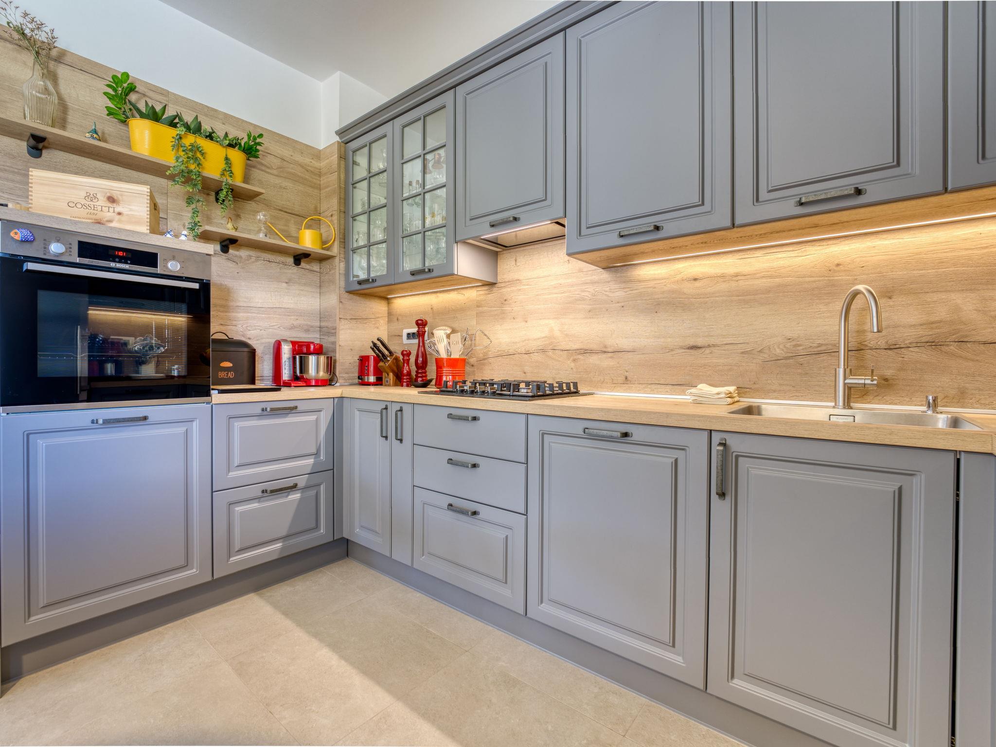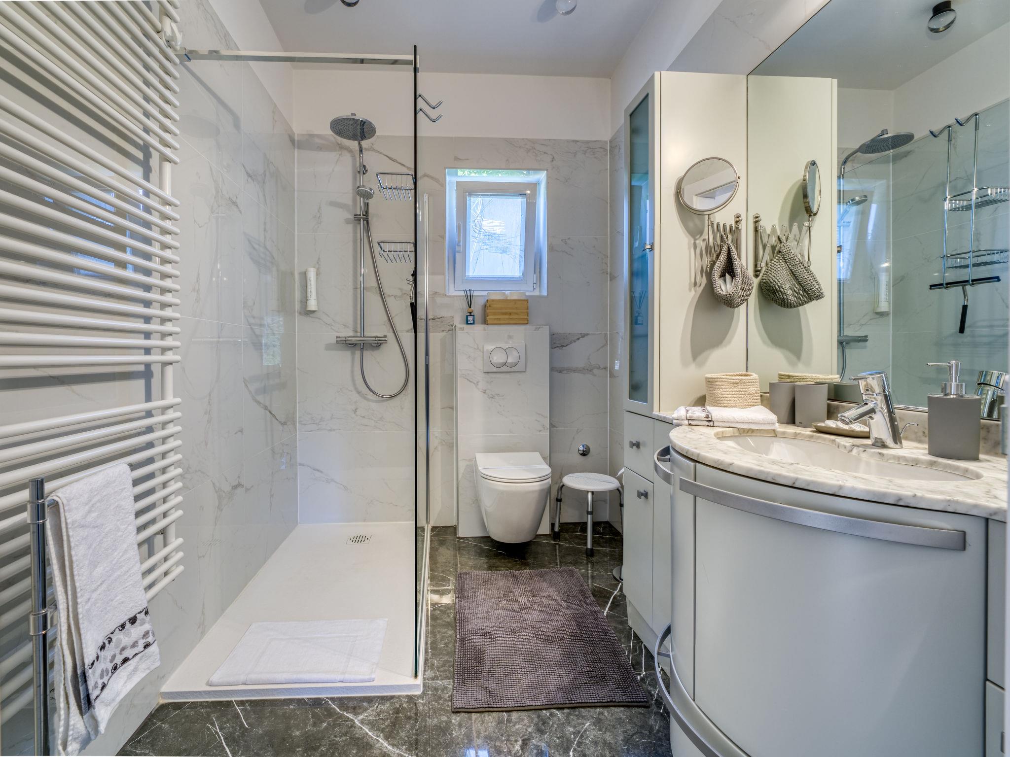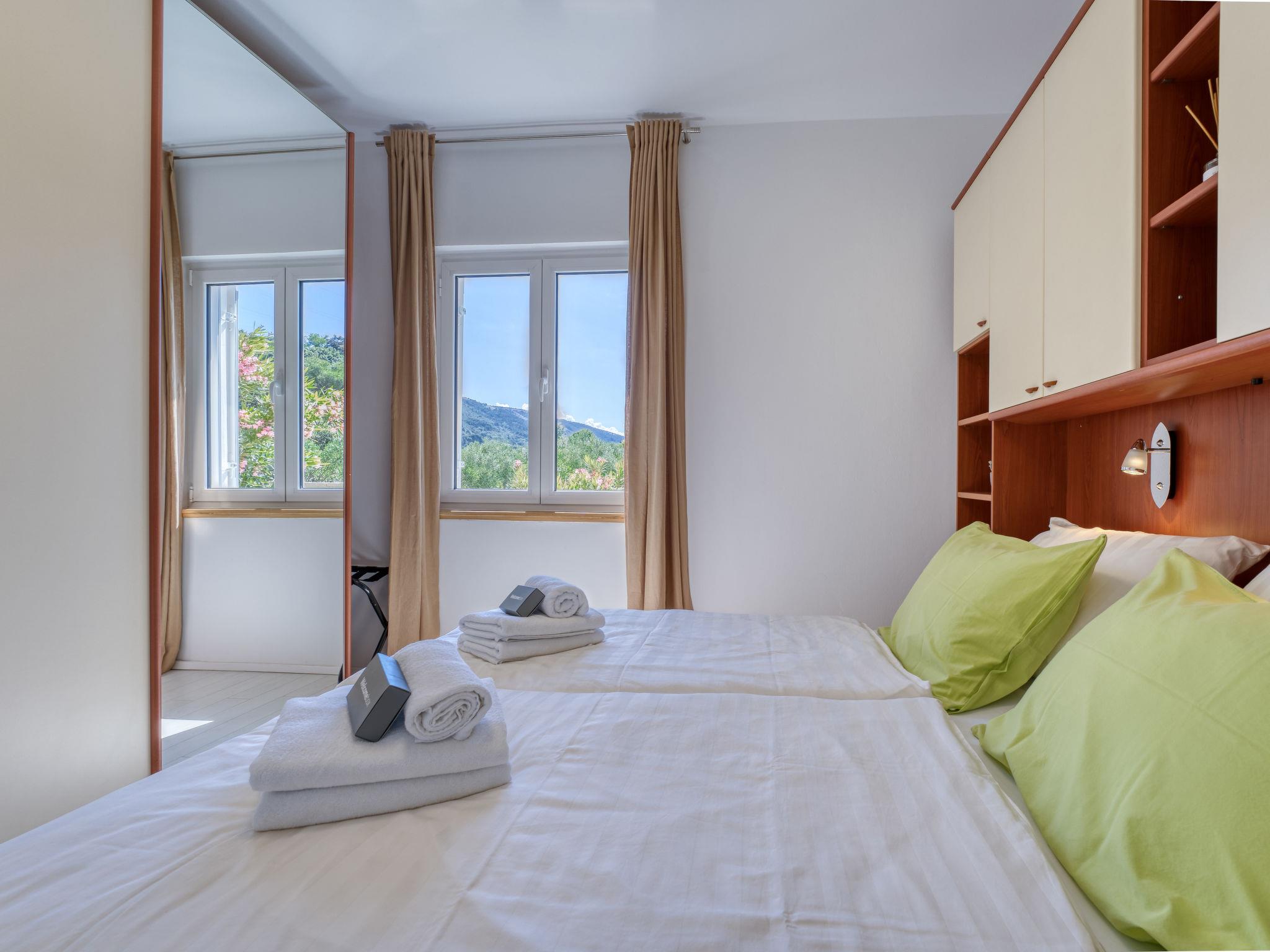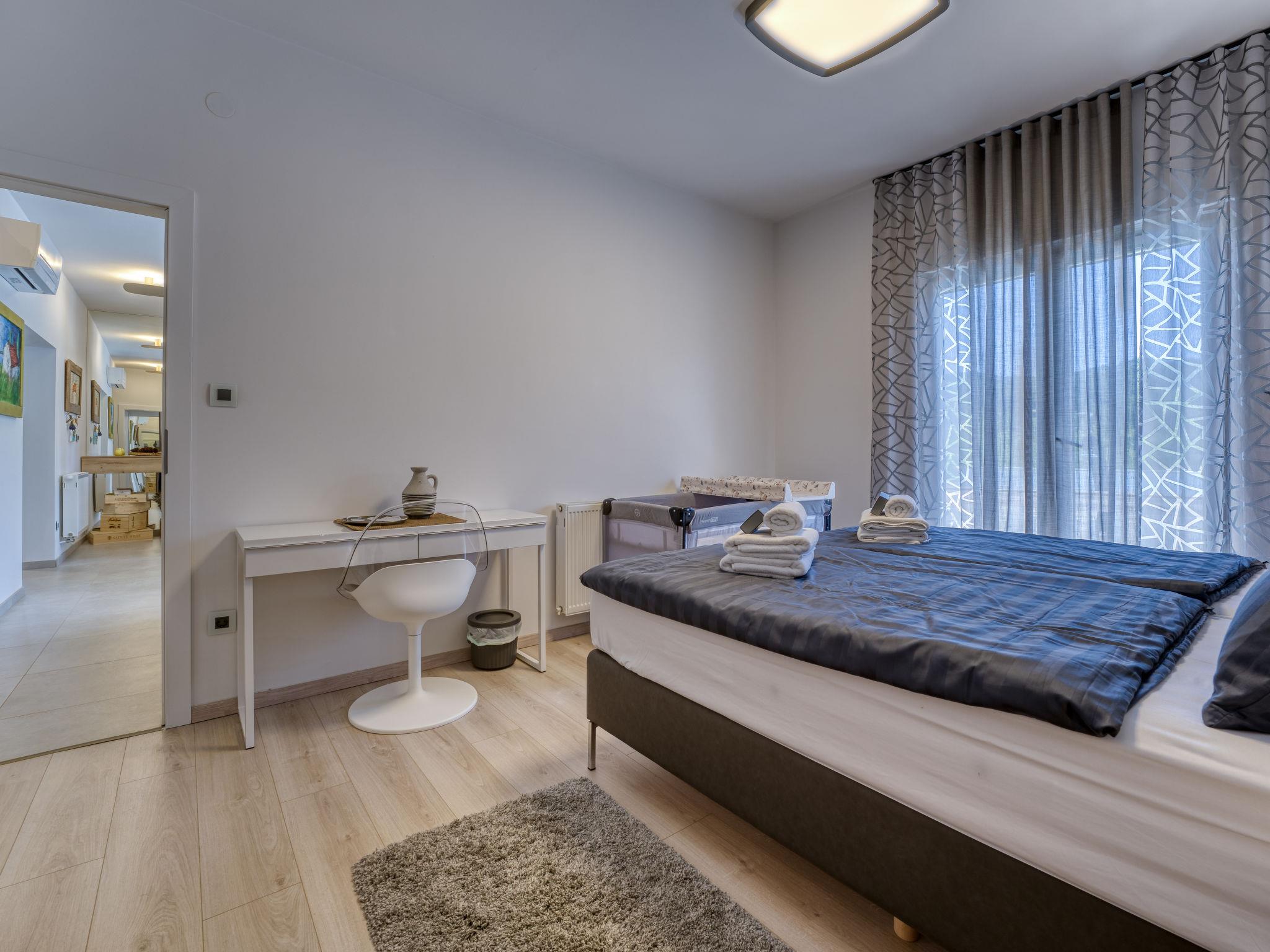 3-room house 76 m2, on the upper ground floor. Modern and tasteful furnishings: living/dining room with cable TV and air conditioning. Exit to the balcony. 1 room with 2 beds (90 cm, length 200 cm). Exit to the balcony. 1 room with 1 double bed (2 x 80 cm, length 200 cm). Open kitchen (oven, dishwasher, 4 gas rings, kettle, microwave, freezer, electric coffee machine). Shower/WC. No heating option. View of the swimming pool. Facilities: safe, baby cot, hair dryer. Please note: suitable for families. Non-smoking house.