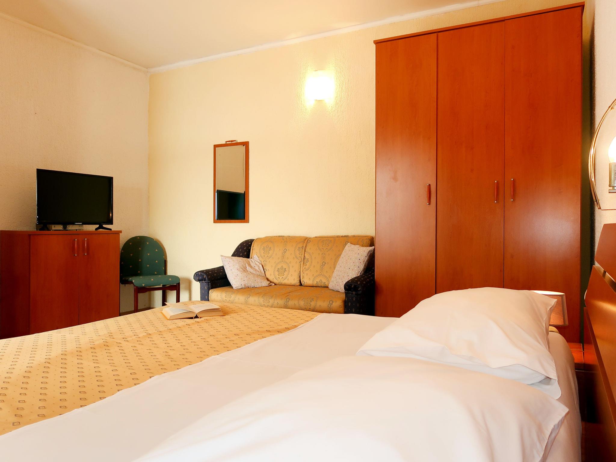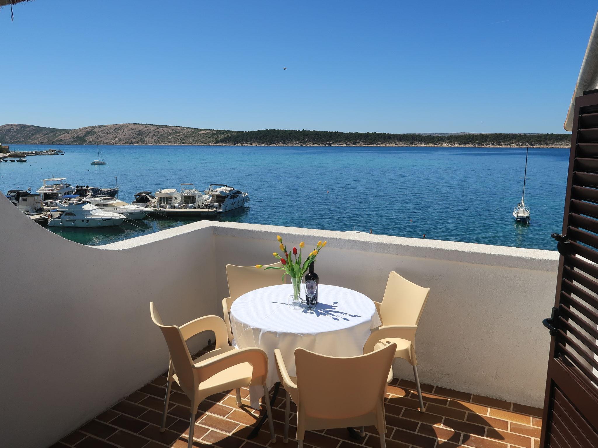 "Ana", 2-room apartment 50 m2, on the top floor. 1 room with 1 french bed (180 cm, length 200 cm). 1 room with 1 double bed (2 x 100 cm, length 220 cm), satellite TV and air conditioning. Exit to the balcony. Kitchen-/living room (2 hot plates, toaster, kettle, microwave, freezer, electric coffee machine) with dining table. Exit to the balcony. Shower/WC. No heating option. Balcony 9 m2. Balcony furniture. View of the sea. Facilities: Internet (WiFi, free). Maximum 2 pets/ dogs allowed.