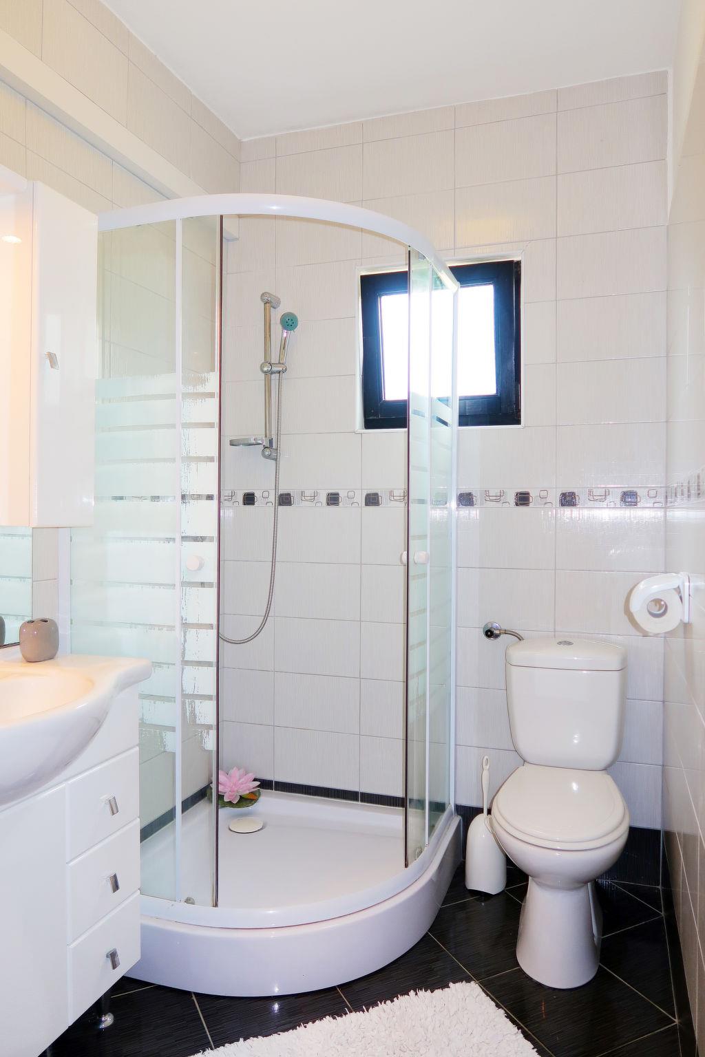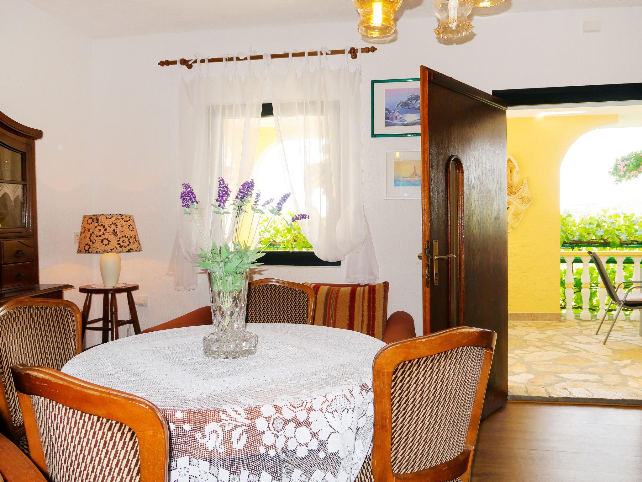 "Kolic", 3-room apartment 55 m2, on the ground floor. Living/dining room with satellite TV (flat screen), air conditioning. 2 rooms, each room with 1 french bed (160 cm, length 200 cm). Exit to the terrace. Kitchen (oven, dishwasher, 4 ceramic glass hob hotplates, toaster, kettle, microwave, freezer, electric coffee machine). Shower/WC. Air-conditioning (extra). No heating option. Terrace roofed. Terrace furniture. Facilities: Internet (WiFi, free).