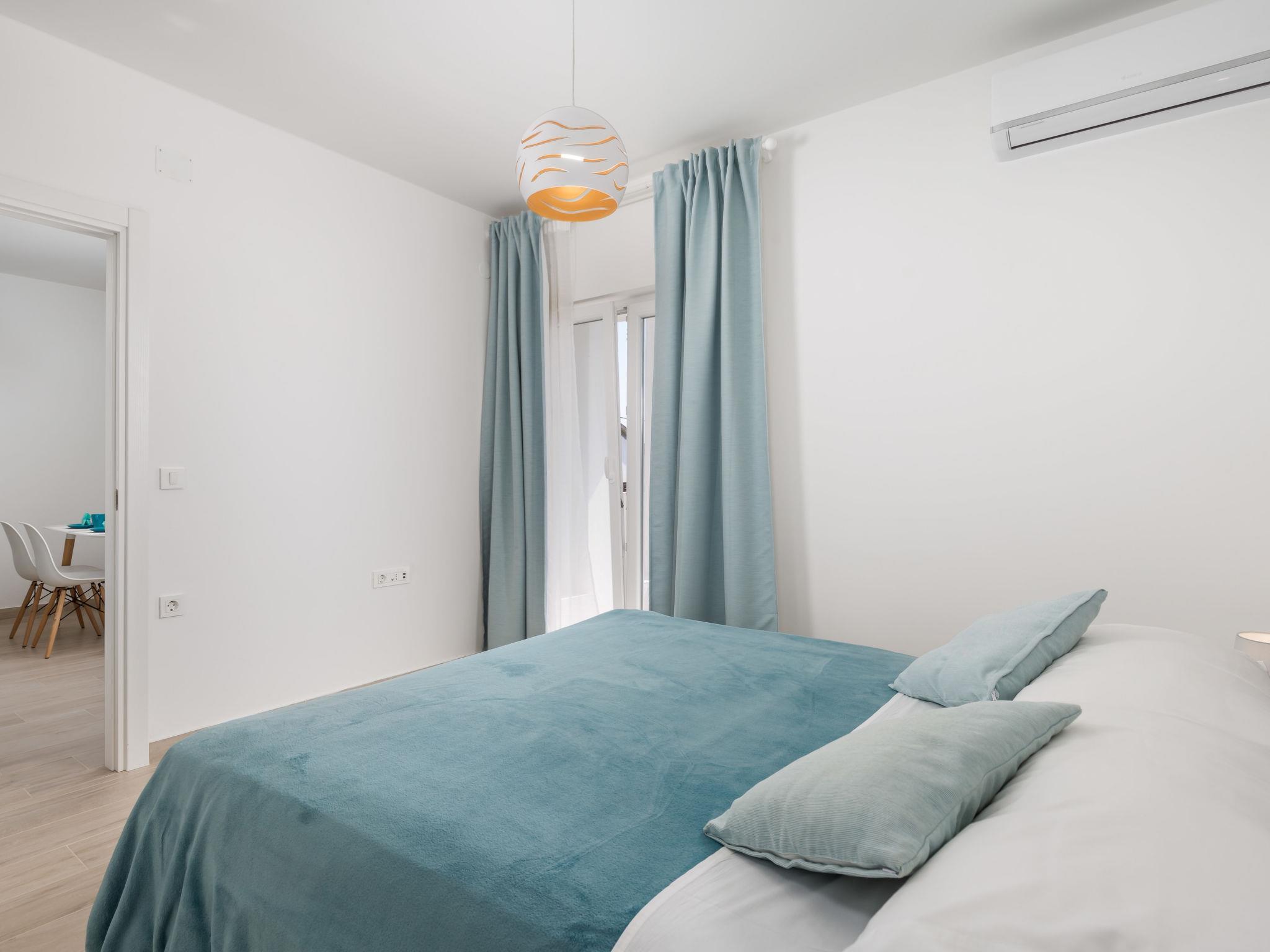 "Simicic", 2-room apartment 42 m2 on 1st floor. Renovated in 2019: 1 room with 1 french bed (160 cm, length 200 cm), air conditioning. Exit to the balcony. 1 room with 1 french bed (160 cm, length 200 cm). Exit to the balcony. Open kitchen (oven, dishwasher, 4 ceramic glass hob hotplates, toaster, kettle, freezer, electric coffee machine) with dining table, air conditioning. Exit to the balcony. Shower/WC. Forced-air heating. Balcony. Balcony furniture. View of the sea. Facilities: washing machine. Internet (WiFi, free). Parking (1 car) at 50 m. Please note: non-smokers only. Maximum 1 pet/ dog allowed.