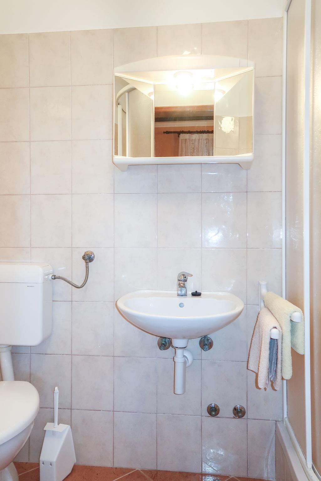 "Noa", 2-room apartment 39 m2, on the ground floor. 1 room with 1 double bed (2 x 80 cm, length 200 cm), shower/WC. 1 room with 1 french bed (140 cm, length 190 cm), shower/WC. Kitchen (2 hot plates, toaster, kettle, freezer, electric coffee machine) with dining table, satellite TV. Oil heating. View of the sea. Facilities: baby cot (extra). Internet (WiFi, free). Please note: non-smokers only. Private entrance.
