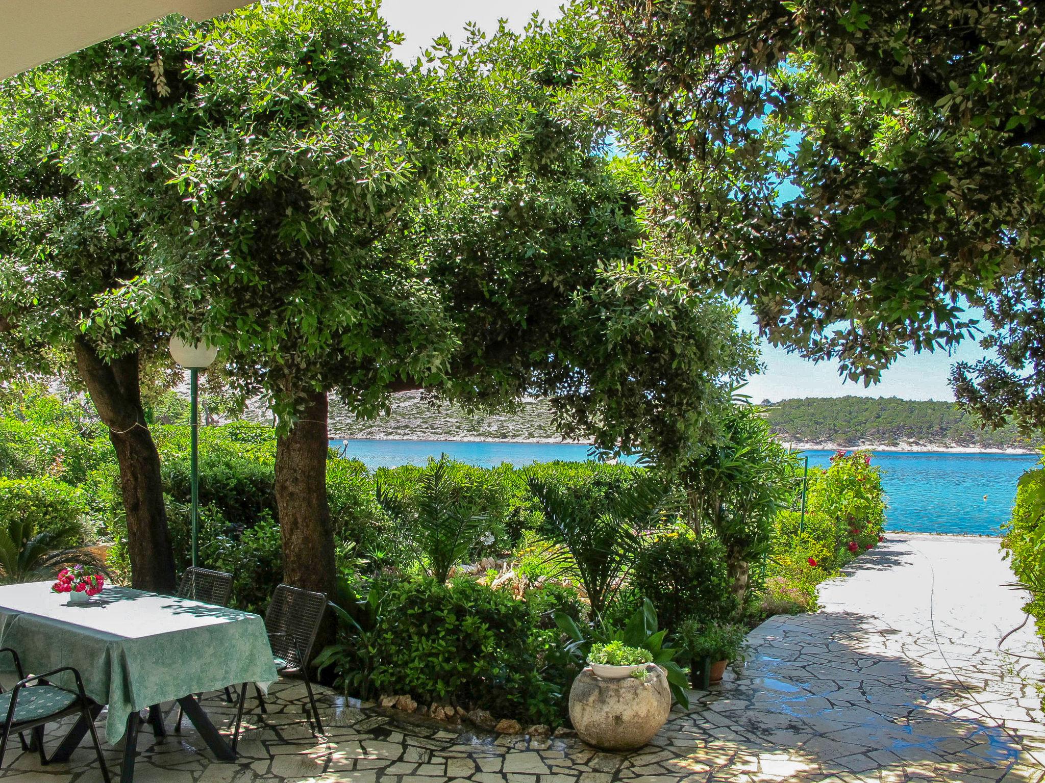Apartment house "Noa". 1.9 km from the centre of Barbat, 6.5 km from the centre of Rab, 17 km from the centre of Lopar, 20 m from the sea, 20 m from the beach. For shared use: property 1'500 m2, trees. Terrace, garden furniture, barbecue. In the house: internet access, washing machine (for shared use, extra). Parking on the premises. Shop 1.6 km, restaurant 70 m, bus stop 650 m, sandy beach, pebble beach 300 m, concrete beach 20 m. Please note: private mooring (extra) on request.
