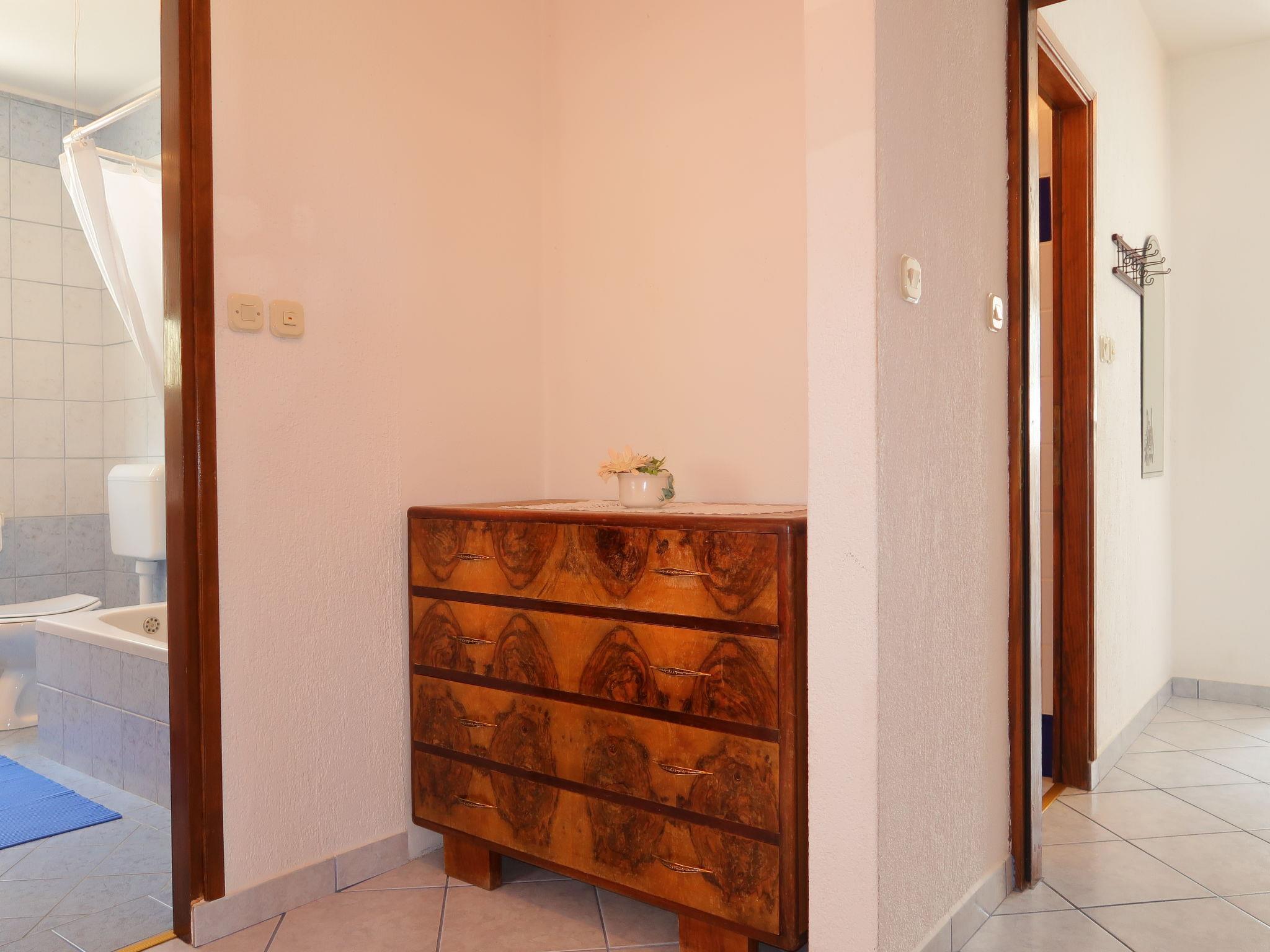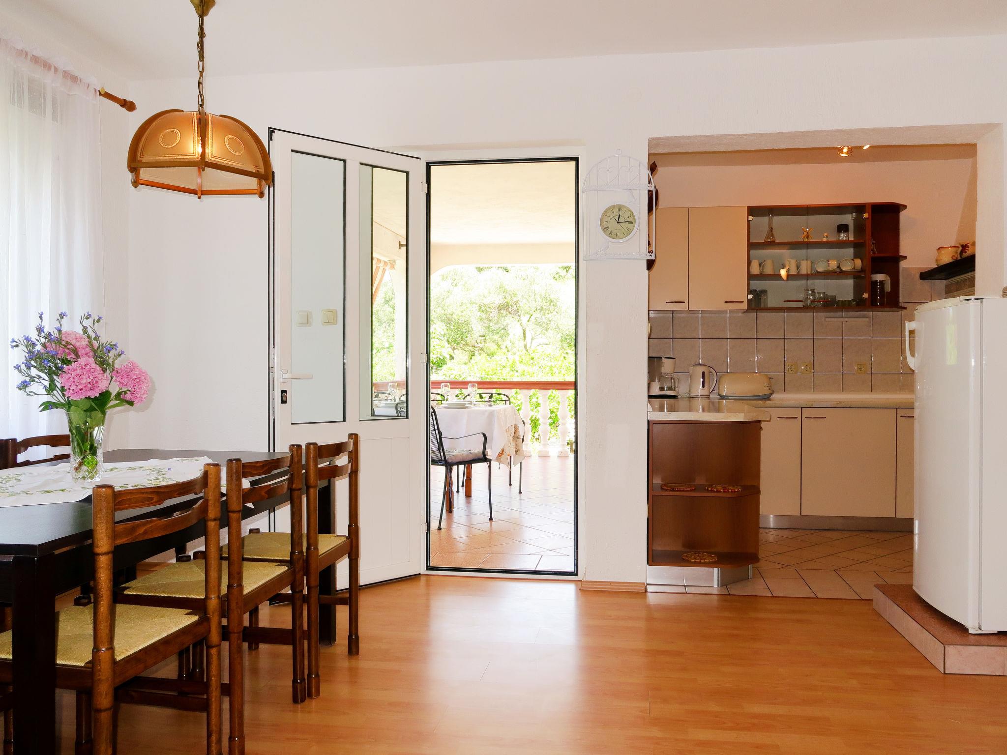 3-family house "Dorka". 650 m from the centre of Rab, 6 km from the centre of Kampor, 12 km from the centre of Lopar, 450 m from the sea, 900 m from the beach. For shared use: property 900 m2 (fenced), garden with plants. Barbecue. In the house: internet access, washing machine (for shared use, extra). Parking at the house on the premises. Shop 250 m, bus stop 550 m, ferry 12 km, rocky beach 900 m.