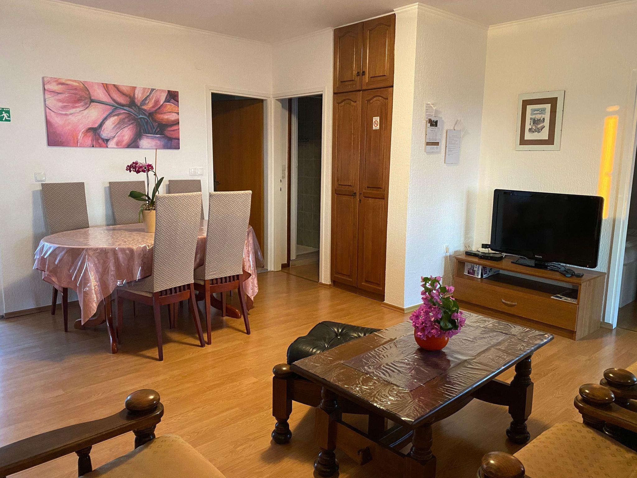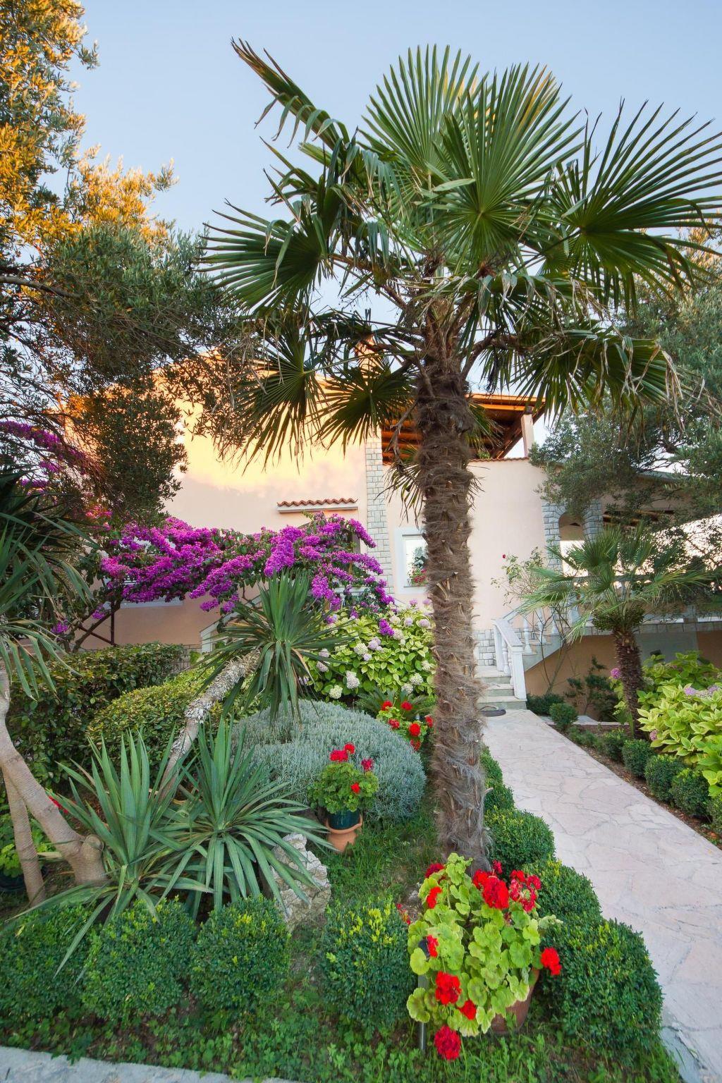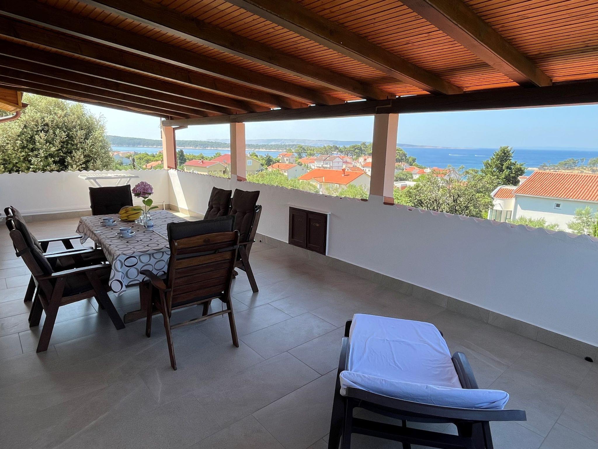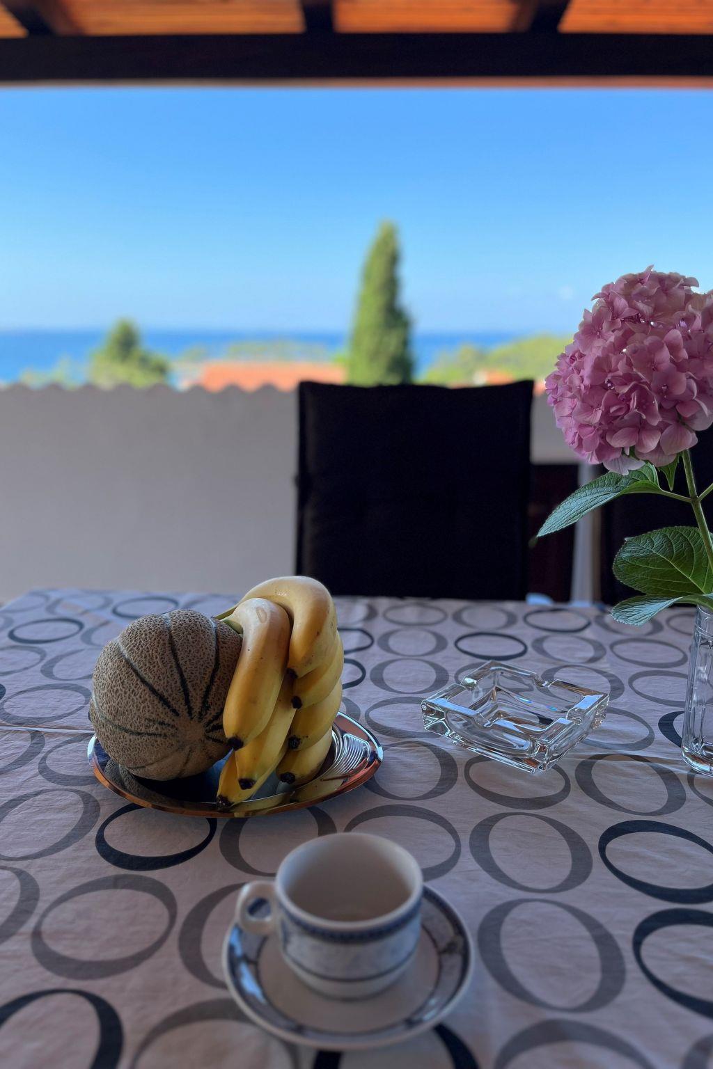 The 125 m² apartment has three bedrooms each with a double bed. A supplementary bed can also be added to two of the bedrooms. The kitchen is fully-equipped with a four-ring stove, oven, coffee machine, cutlery and crockery. The living and dining room has a sofa and a dining table with chairs for six to eight people. Satellite TV, air conditioning and Internet are available. There are two bathrooms with a bath or shower respectively. The terrace has a table, chairs and deckchairs and affords a wonderful view.