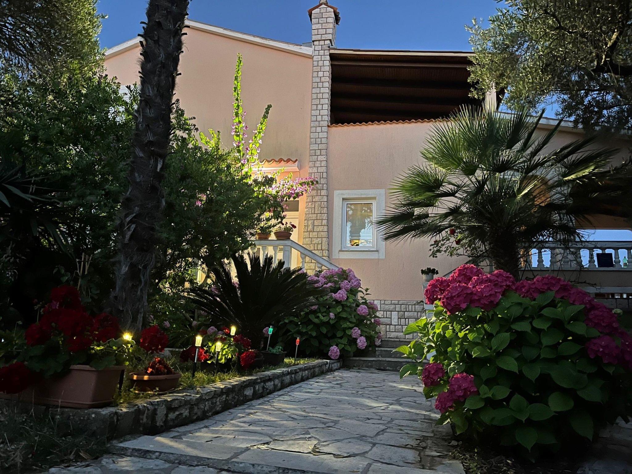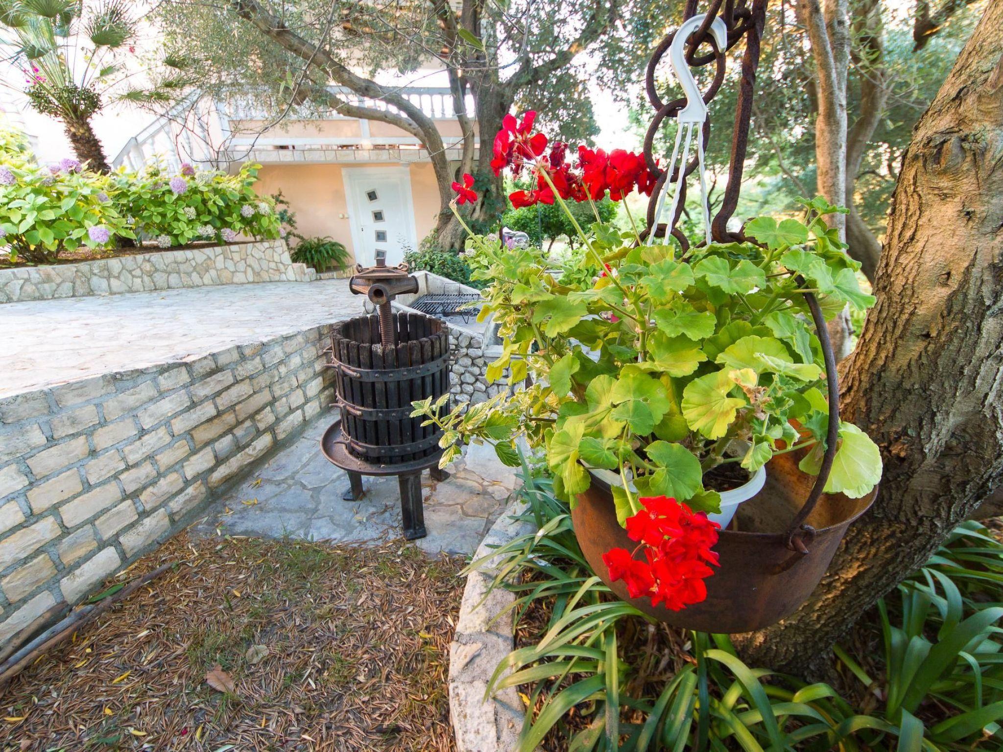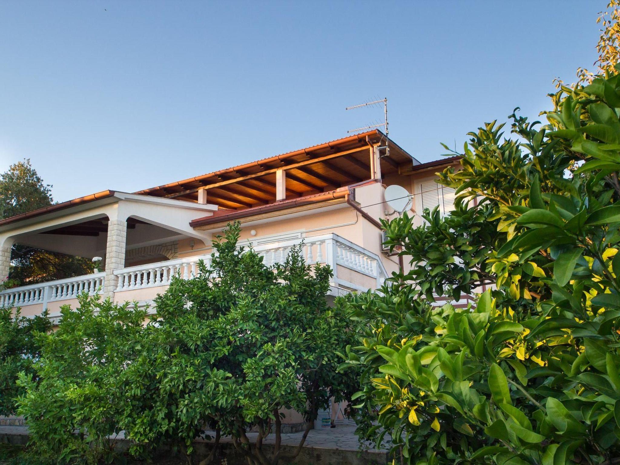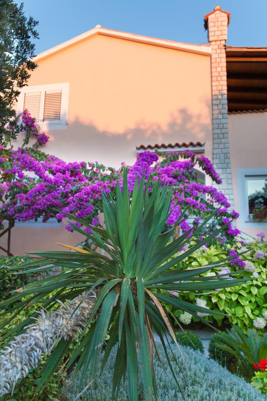 The 125 m² apartment has three bedrooms each with a double bed. A supplementary bed can also be added to two of the bedrooms. The kitchen is fully-equipped with a four-ring stove, oven, coffee machine, cutlery and crockery. The living and dining room has a sofa and a dining table with chairs for six to eight people. Satellite TV, air conditioning and Internet are available. There are two bathrooms with a bath or shower respectively. The terrace has a table, chairs and deckchairs and affords a wonderful view.