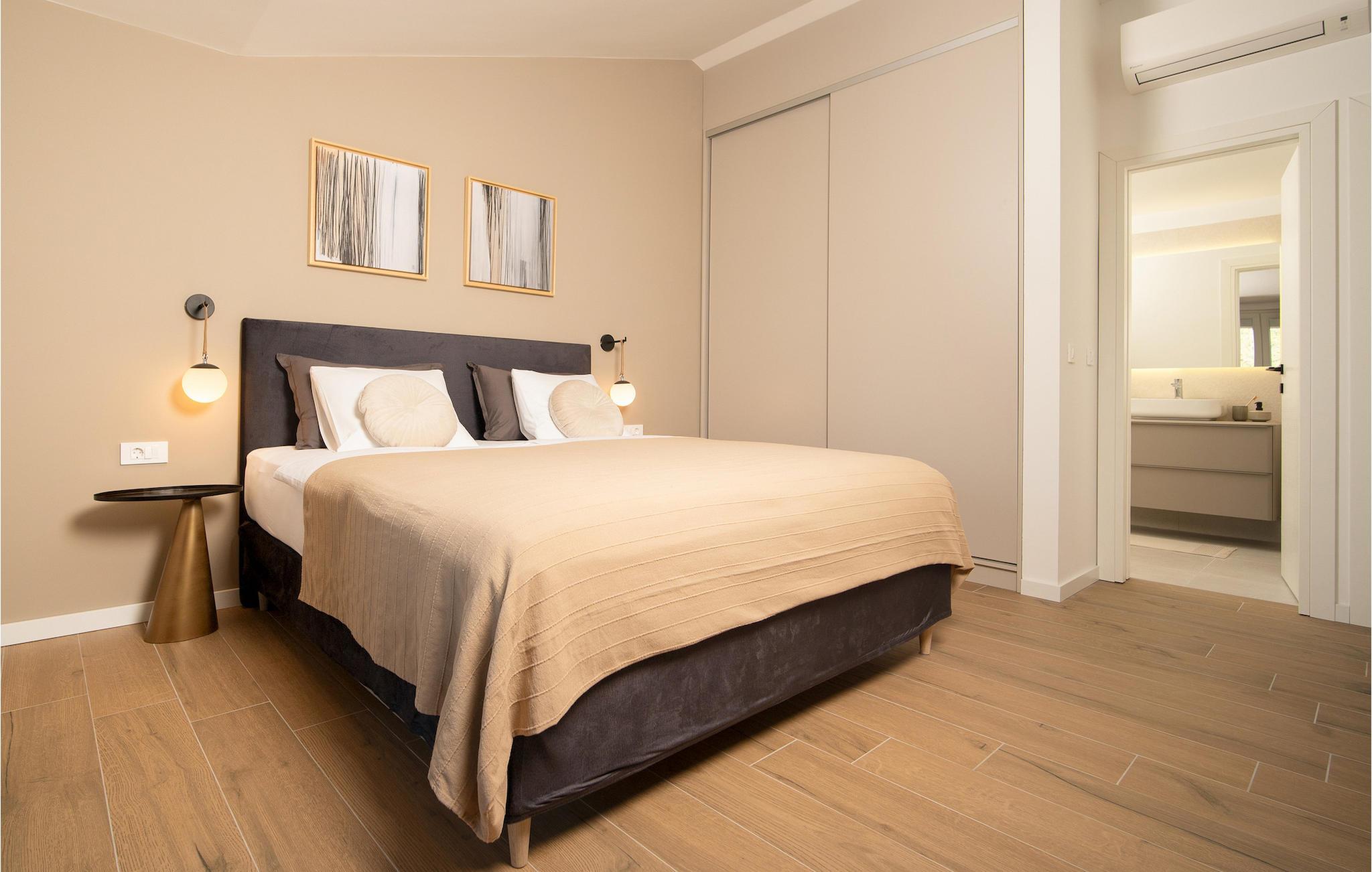 For alle, der leder efter en high-end villa i Istrien med en smuk beliggenhed, der har potentialet til at overgå alle dine forventninger, er den dejlige Villa Matani med privat pool det ideelle feriemål. Den fantastiske udsigt over havet og bjergene fra dette tre-værelses hjem vil efterlade alle besøgende målløse og fulde af vidunderlige minder. Tag din ferie til næste niveau ved at tilbringe dejlige sommeraftener i Villa Matani med dine kære i maleriske omgivelser. Du vil uden tvivl tilbringe størstedelen af din tid uden for villaen. Forestil dig bare, at du ligger i solen hele dagen, ser børnene hygge sig i den private pool, laver lækker håndlavet og lokal kroatisk mad på grillen og nyder dejlige stunder med deres kære. Villaens interiør har en moderne indretning og fremragende sans for detaljer på begge etager. En rummelig opholdsstue, et fuldt udstyret køkken, et bryggers og et badeværelse er alle placeret i stueplan. Du kan få adgang til tre komfortable og skønne dobbeltværelser på anden sal via trappen, som hver har eget badeværelse med bruser og tv. Wi-Fi er tilgængeligt i hele ejendommen, hvilket gør den velegnet til et længere ophold eller potentielt "arbejde". Derudover har villaen en barneseng og en høj stol, som er tilgængelige efter anmodning. Det er fuldt airconditioneret, helt indhegnet og børnevenligt. Planlæg din næste ferie til Istrien ved at booke Villa Matani. Du vil helt sikkert have det sjovt! Villa Matani ligger kun omkring 4 kilometer fra strandene i Rabac og er beliggende tæt på Labin på den østlige side af halvøen Istrien. Småstensstrandene og det blå Adriaterhav vil glæde dig. Større turistmål med et bredt udvalg af spisesteder, caféer og butikker er Labin og Rabac. Tag romantiske gåture langs de snoede gader, mens du beundrer de mange paladser. På nærliggende restauranter kan du slappe af, mens du smager lækre fiskeretter. Rabac, som tidligere var en fiskerlandsby, er nu et velkendt turistmål ved kysten, der har fantastiske strande og en række sports- og underholdningsmuligheder. Besøg Opatija eller Pula, to dejlige kystturistdestinationer med en rig historisk og kulturel arv, hvis du ønsker at lære mere om Istrien.