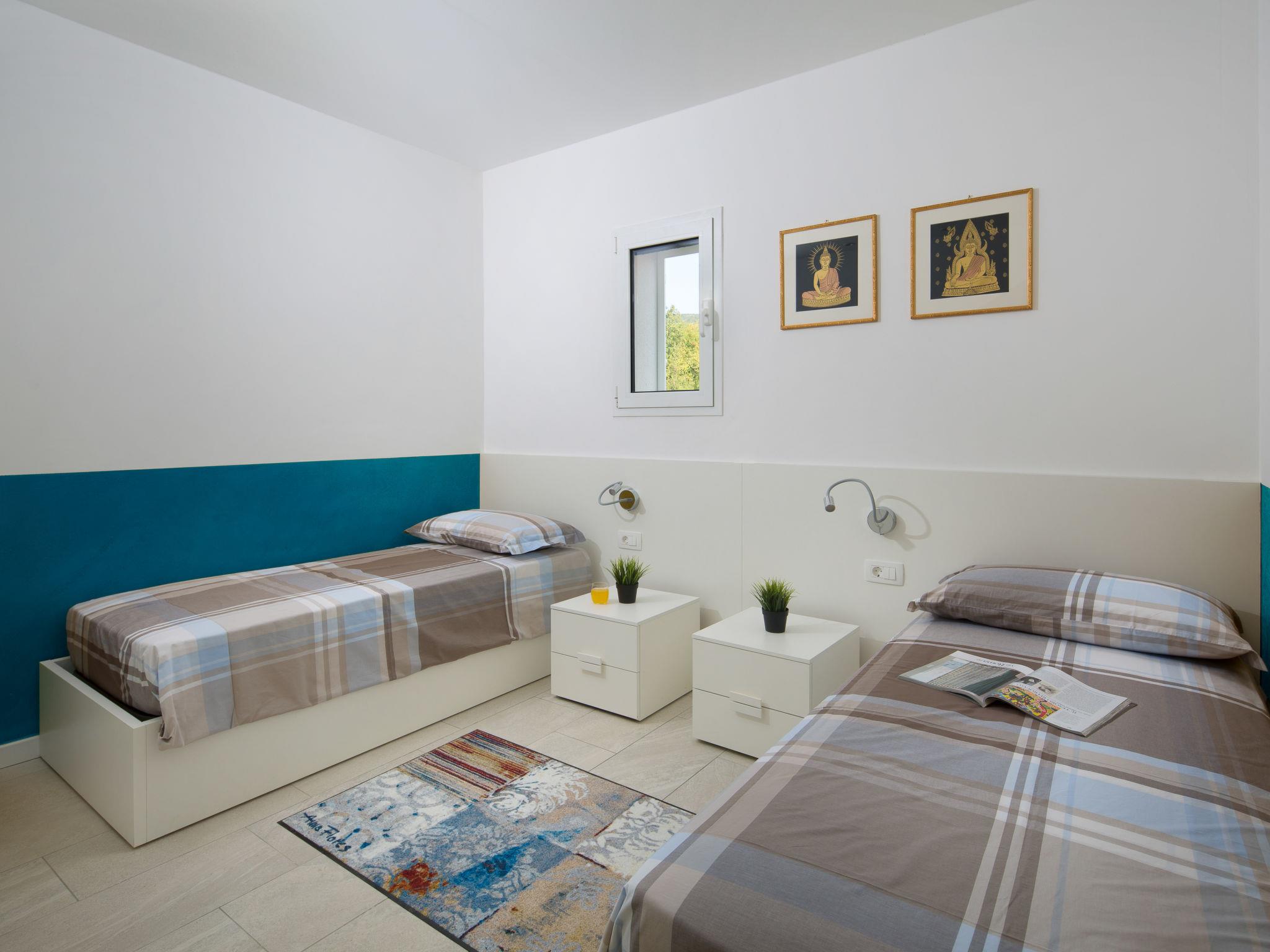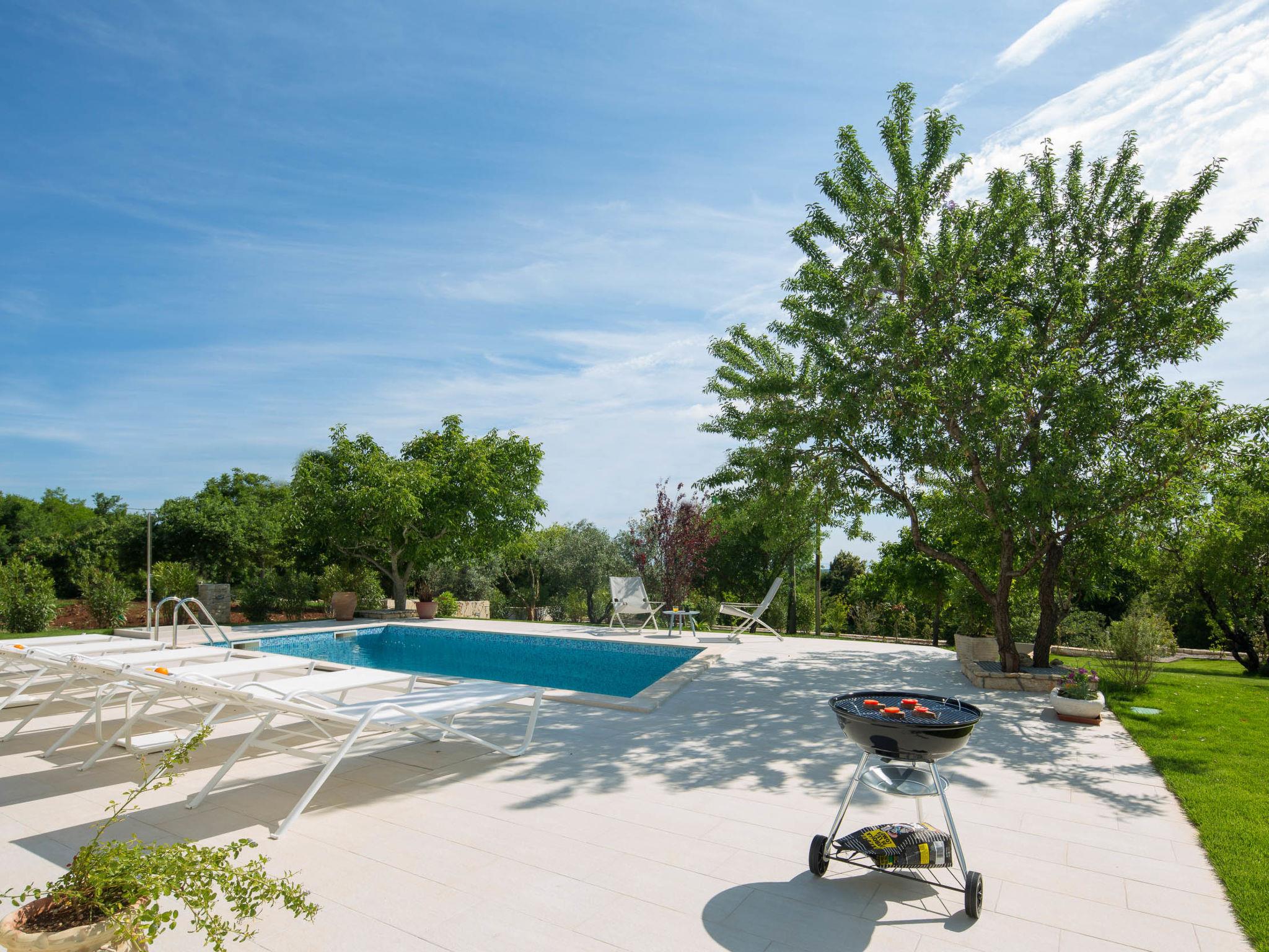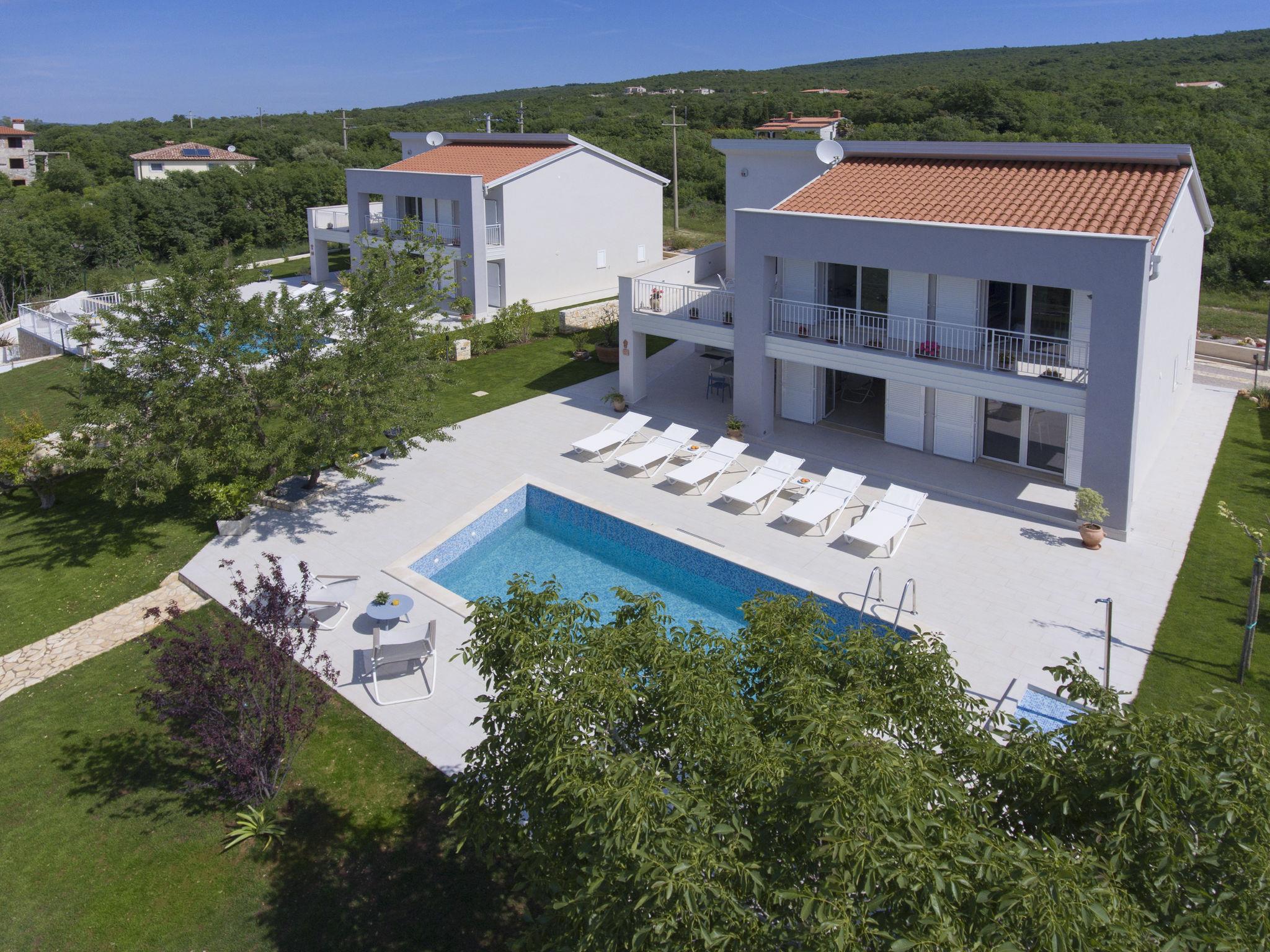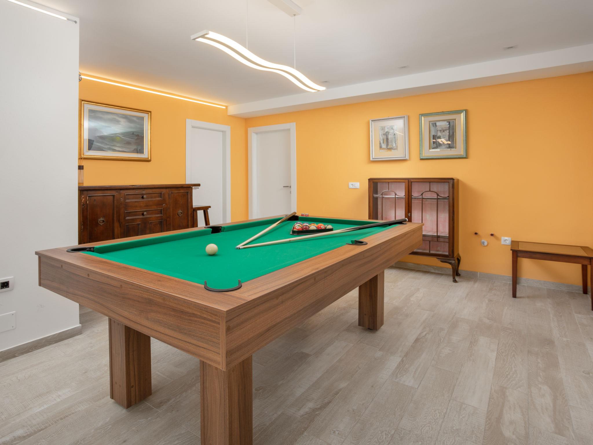 Sveti Lovrec Labinski 20 km from Rabac: Beautiful villa "Chiara", 2 storeys, surrounded by trees. In the hamlet Vlakovo 15 km from the centre of Labin, in a quiet, sunny position, 4 km from the sea, 4 km from the beach, in the countryside. For shared use: table tennis, children's playground (slide, swing). Private: property 700 m2, garden with lawn and wildlife garden, swimming pool (8 x 4 m, depth 140 cm, seasonal availability: 01.May. - 20.Oct.). Unconventional pool shape. Outdoor shower. In the house: internet access, table football, washing machine. Parking at the house on the premises. Shop 4 km, restaurant 4 km, bus stop 14.8 km, pebble beach 4 km, rocky beach 4 km. Walking paths from the house 20 m, cycle lane 25 m. Please note: suitable for families. The owner does not accept any youth groups. Separate room with billiard table and darts, at 50 m from the villa, for shared use with villas HR2835.106.1 and HR2835.108.1. Possibility of renting a boat and kayak (on request, extra). The owner can arrange boat trips (on request, extra).