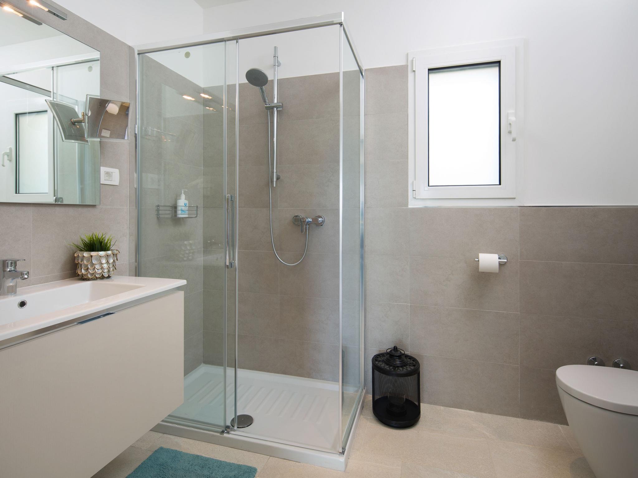 5-room villa 200 m2 on 2 levels. Living/dining room with satellite TV (flat screen), air conditioning. Exit to the terrace. 1 room with 2 beds (80 cm, length 190 cm). Open kitchen (oven, dishwasher, 4 ceramic glass hob hotplates, microwave, freezer, electric coffee machine). Shower/WC. Upper floor: 1 room with 1 sofabed (90 cm, length 190 cm), 1 french bed (160 cm, length 200 cm), shower/bidet/WC and satellite TV (flat screen), air conditioning. Exit to the terrace. 1 room with 1 double bed (2 x 80 cm, length 190 cm), air conditioning. Exit to the terrace. 1 room with 1 double bed (2 x 80 cm, length 190 cm), shower/bidet/WC and air conditioning. Exit to the terrace. Bath/bidet/WC. Terrace 30 m2, roofed, terrace 30 m2 partly roofed. Terrace furniture, barbecue (portable), deck chairs. Marvellous panoramic view of the sea and the countryside. Facilities: safe, baby cot, hair dryer. Internet (WiFi, free). 1 small pet/ dog allowed.