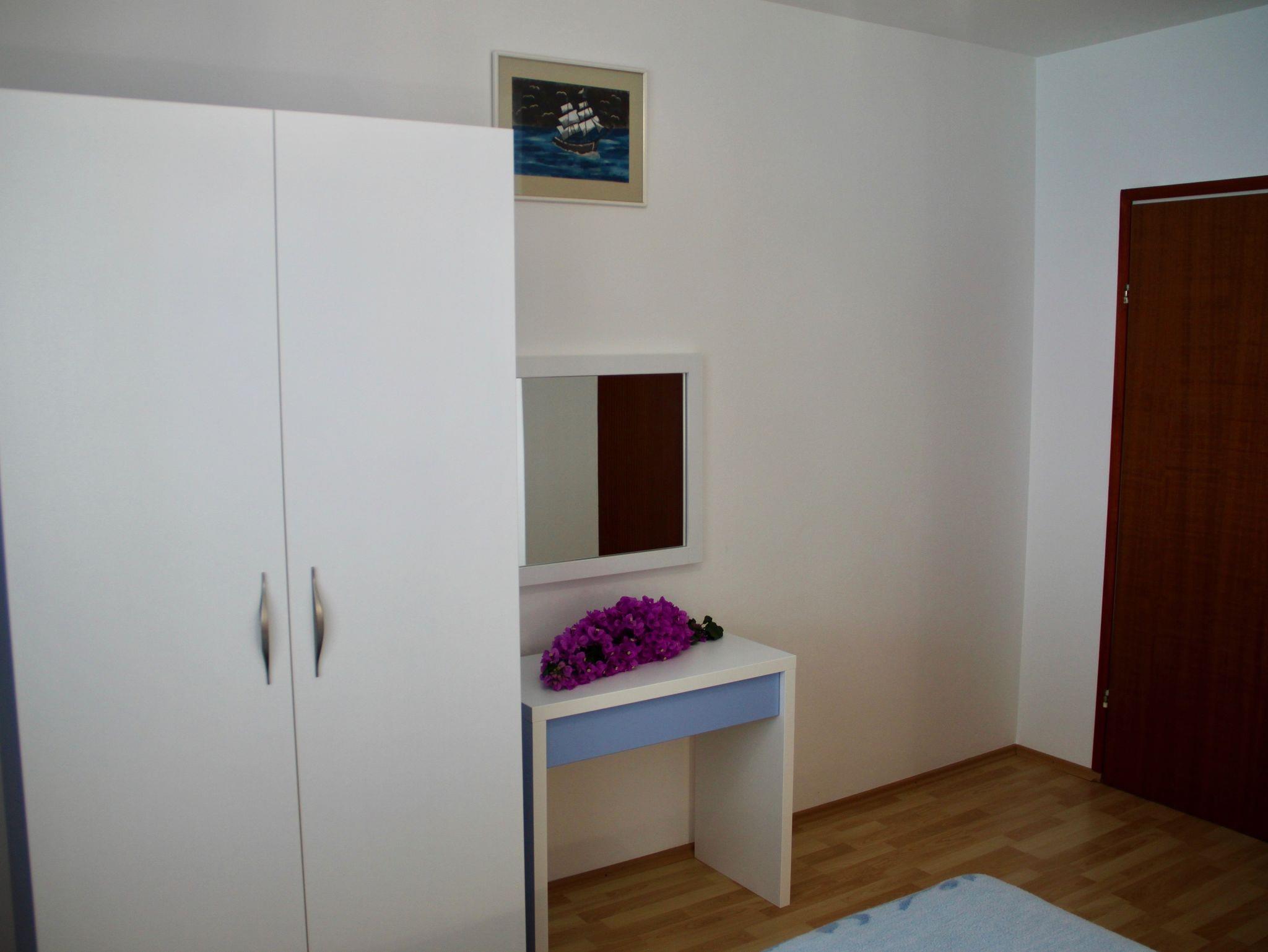 Ferienwohnung bietet Platz für 4 Gäste. Die Betten sind in Schlafzimmern, die es 2 gibt, innerhalb einer Gesamtfläche von 51m2, angeordnet. Die Gäste haben eine eigene Terrasse zur Verfügung, auf der sie in warmen Sommernächten genießen können. Das Apartment bietet Meerblick. Es ist erlaubt, Speisen auf dem Gemeinschafts-Grill vorzubereiten. IM PREIS INBEGRIFFEN: Kurtaxe, Endreinigung, Klimatisierung, Parkplatz, Internet, Kinderbett, Bügeleisen, Bügelbrett, Föhn, Liegestühle. UNVERBINDLICHE ZUSÄTZLICHE KOSTEN: 2 Kinderbettchen (5,00 € Person/Tag). Die Verfügbarkeit zusätzlicher Dienstleistungen in Ihrem reservierten Termin und die Preise derselben (falls nicht aufgeführt) müssen im Voraus überprüft werden. Zusätzliche Dienstleistungen die in der Zahlungsaufforderung nicht aufgeführt sind werden direkt beim Vermieter bezahlt, angenommen der Gast nutzt auch diese.