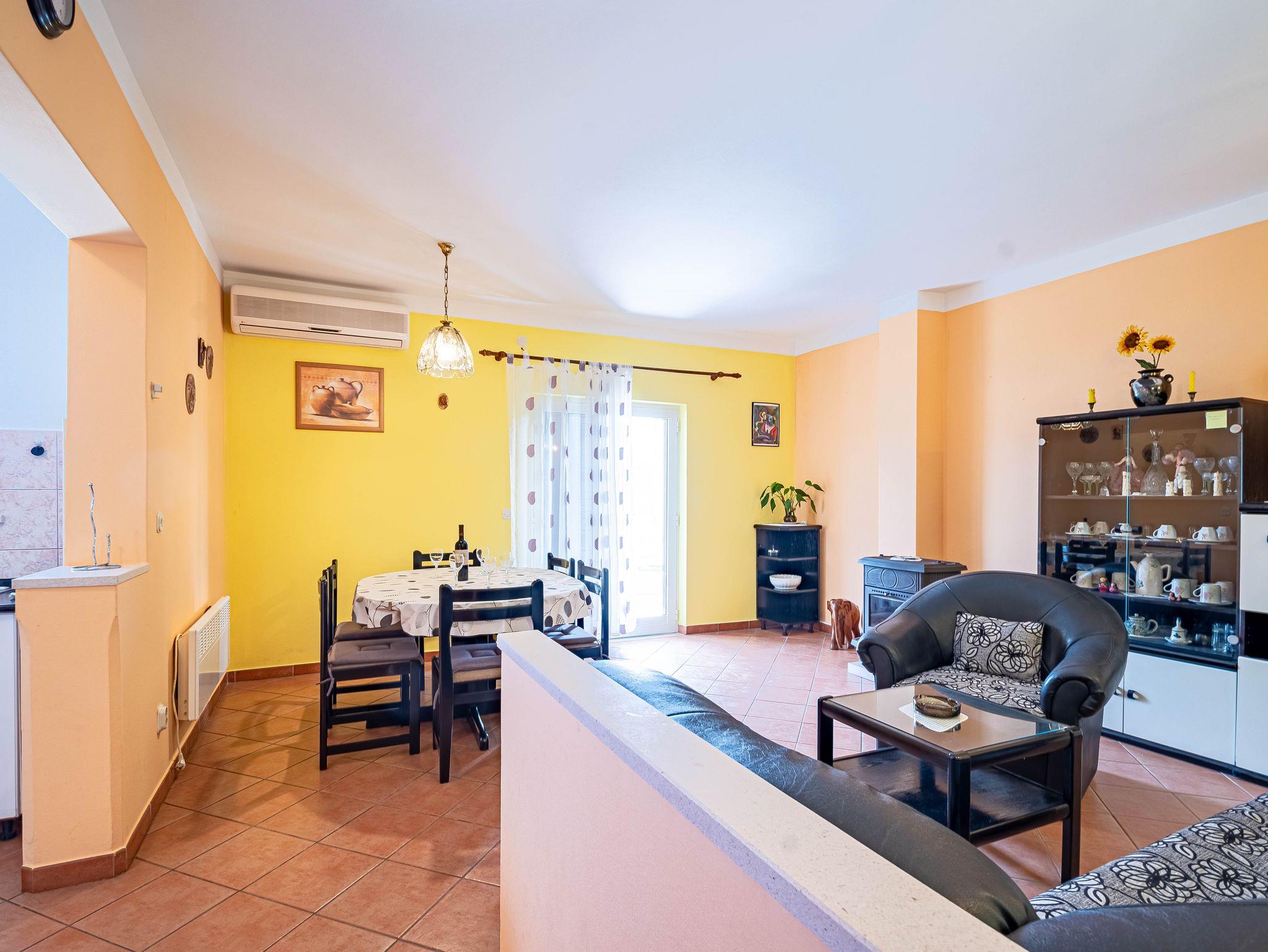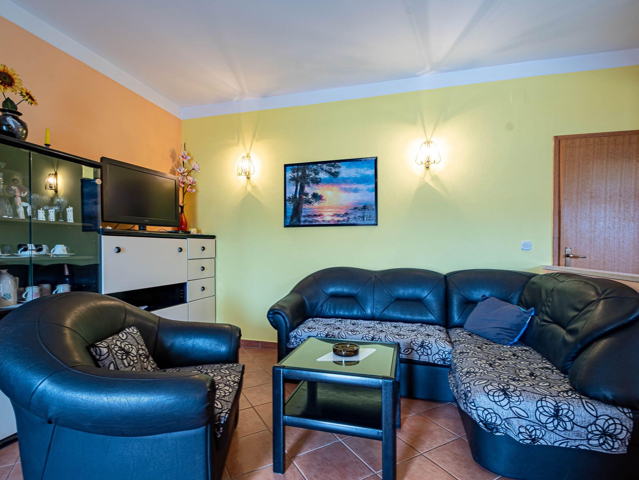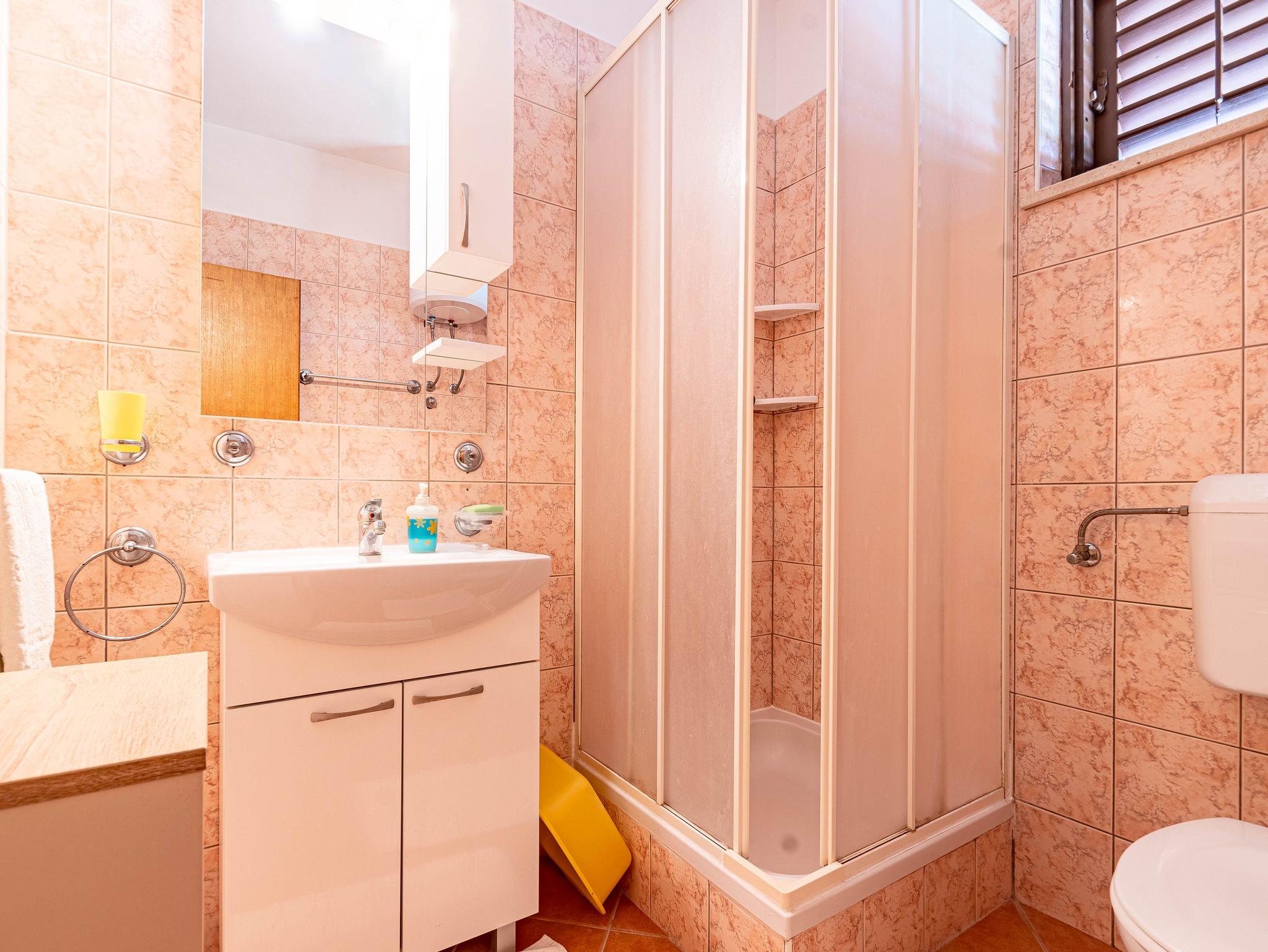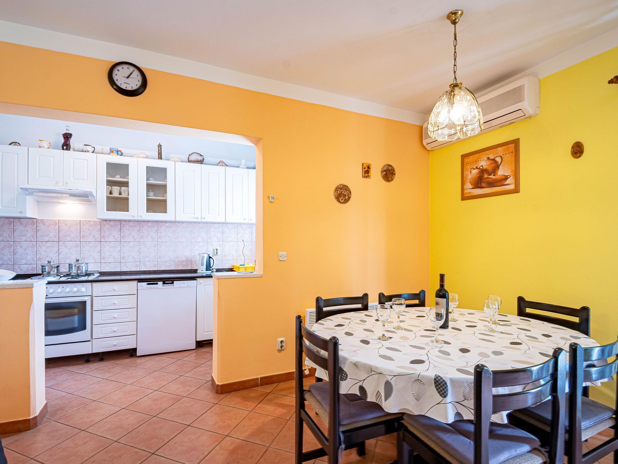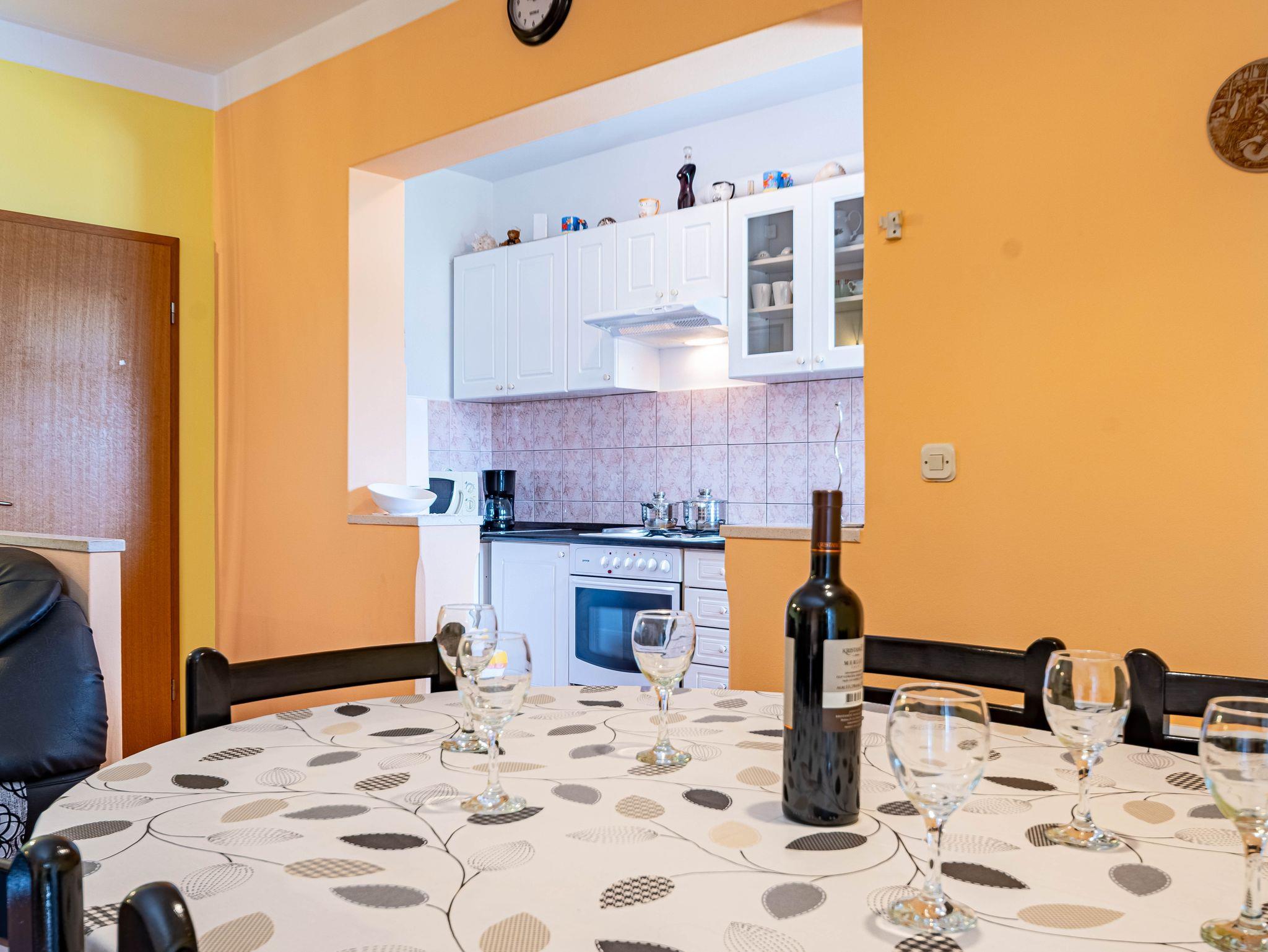 Ferienwohnung bietet Platz für 6 Gäste. Die Betten sind in Schlafzimmern, die es 3 gibt, innerhalb einer Gesamtfläche von 79m2, angeordnet. Die Gäste haben eine eigene Terrasse zur Verfügung, auf der sie in warmen Sommernächten genießen können. Das Apartment bietet Meerblick. Es ist erlaubt, Speisen auf dem Gemeinschafts-Grill vorzubereiten. IM PREIS INBEGRIFFEN: Kurtaxe, Endreinigung, Klimatisierung, Parkplatz, Internet, Wäschewaschen, Kinderbett, Bügeleisen, Bügelbrett, Föhn, Liegestühle. VERBINDLICHE ZUSÄTZLICHE KOSTEN: Aufzahlung für Kurzaufenthalte (prozentualer Zuschlag pro Nächtigungsanzahl: 30% - 1, 20% - 2, 10% - 3). Die Verfügbarkeit zusätzlicher Dienstleistungen in Ihrem reservierten Termin und die Preise derselben (falls nicht aufgeführt) müssen im Voraus überprüft werden. Zusätzliche Dienstleistungen die in der Zahlungsaufforderung nicht aufgeführt sind werden direkt beim Vermieter bezahlt, angenommen der Gast nutzt auch diese. Ermäßigung auf den Grundpreis: Gratistag 14=13 (bei einem Aufenthalt von 14 Tagen oder mehr erhalten Sie einen Gratistag für den Aufenthalt bis 31.12.26).