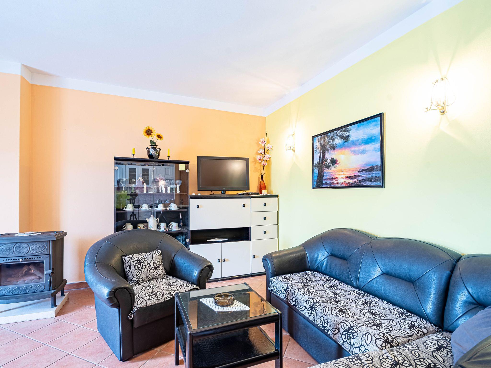 Umgebung des Objekts (Ordentlich), Hof (50m2, Kinderbereich, Sitzbereich), Parkplatz (Anzahl der Parkplätze: 2, Entfernung vom Objekt: im Hof), Grill: gemeinsam, WiFi Internet, Wäschewaschen, Föhn, Bügeleisen, Bügelbrett, Liegestühle, Kinderbett