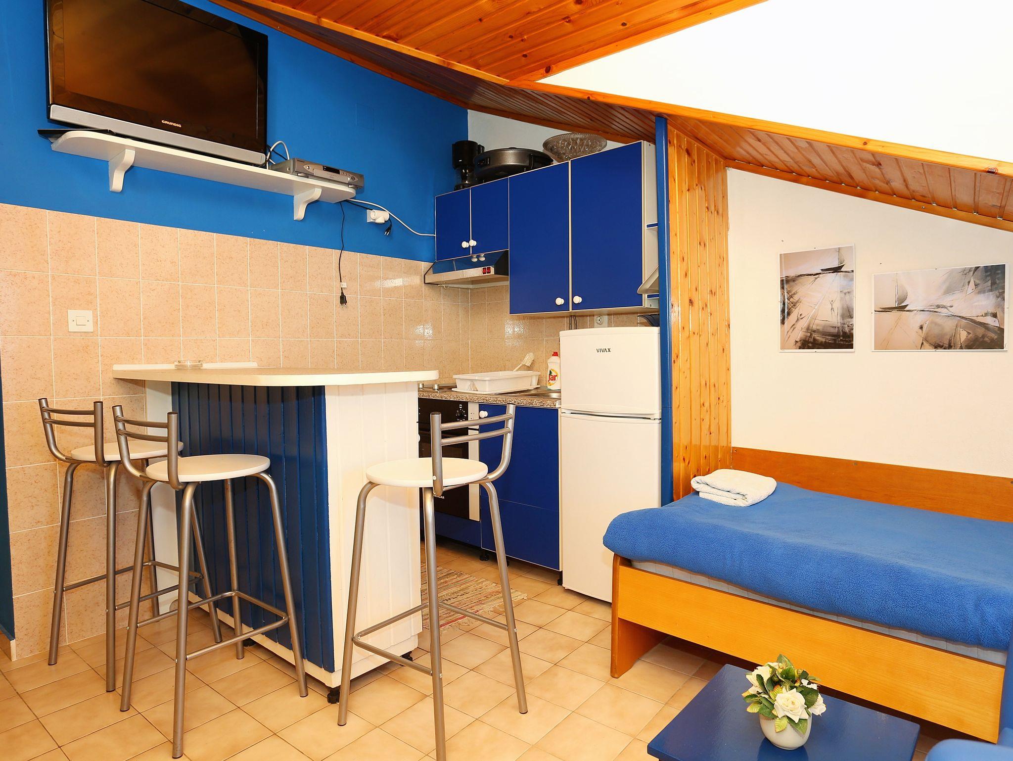 Ferienwohnung bietet Platz für 4 Gäste. Die Betten sind in Schlafzimmern, die es 1 gibt, und in Wohnzimmer, innerhalb einer Gesamtfläche von 31m2, angeordnet. Die Gäste haben eine eigene Terrasse zur Verfügung, auf der sie in warmen Sommernächten genießen können. Das Apartment bietet Meerblick. Es ist erlaubt, Speisen auf dem Gemeinschafts-Grill vorzubereiten. In der Unterkunftseinheit besteht die Möglichkeit des Mitbringens von Haustieren gegen Aufpreis. IM PREIS INBEGRIFFEN: Kurtaxe, Endreinigung, Klimatisierung, Parkplatz, Internet, Wäschewaschen, Bootsanlegeplatz, Kinderbett, Bügeleisen, Bügelbrett, Föhn, Liegestühle. VERBINDLICHE ZUSÄTZLICHE KOSTEN: Aufzahlung für Kurzaufenthalte (prozentualer Zuschlag pro Nächtigungsanzahl: 30% - 1, 20% - 2, 10% - 3). UNVERBINDLICHE ZUSÄTZLICHE KOSTEN: Haustiere (9,00 € pro Nacht), Zusatzbett (7,00 € pro Nacht). Die Verfügbarkeit zusätzlicher Dienstleistungen in Ihrem reservierten Termin und die Preise derselben (falls nicht aufgeführt) müssen im Voraus überprüft werden. Zusätzliche Dienstleistungen die in der Zahlungsaufforderung nicht aufgeführt sind werden direkt beim Vermieter bezahlt, angenommen der Gast nutzt auch diese. Ermäßigung auf den Grundpreis: Gratistag 21=19 (bei einem Aufenthalt von 21 Tagen oder mehr erhalten Sie 2 Gratistage für den Aufenthalt bis 31.12.26).