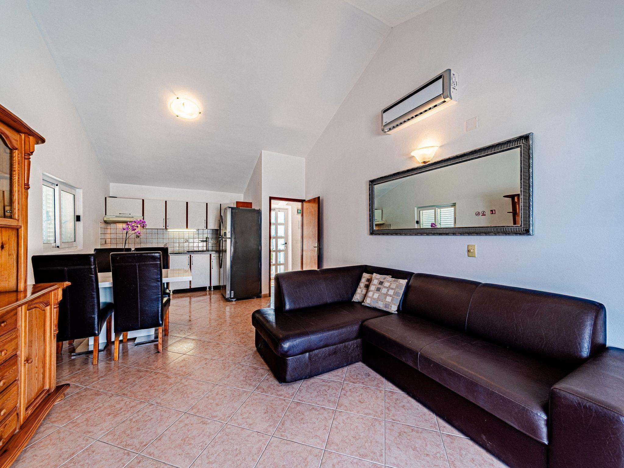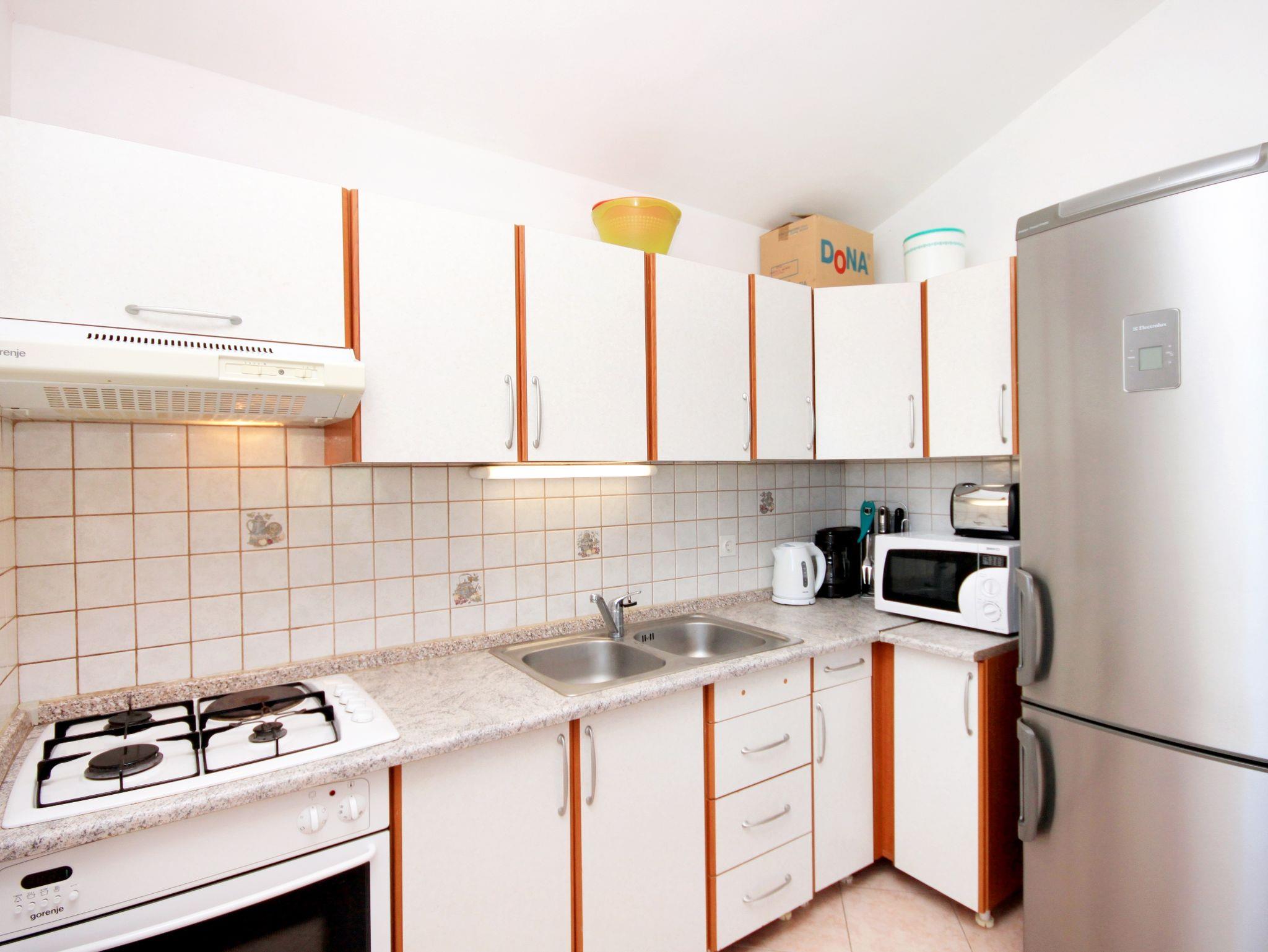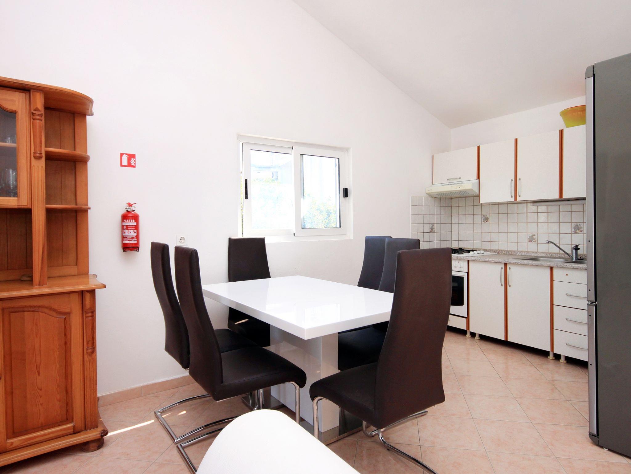 Ferienwohnung bietet Platz für 5 Gäste. Die Betten sind in Schlafzimmern, die es 2 gibt, innerhalb einer Gesamtfläche von 53m2, angeordnet. Die Gäste haben eine eigene Terrasse zur Verfügung, auf der sie in warmen Sommernächten genießen können. Das Apartment bietet Meerblick. Es ist erlaubt, Speisen auf dem Gemeinschafts-Grill vorzubereiten. IM PREIS INBEGRIFFEN: Kurtaxe, Endreinigung, Klimatisierung, Parkplatz, Internet, Bootsanlegeplatz, Kinderbett, Bügeleisen, Bügelbrett, Föhn, Sonnenschirm, Liegestühle. Die Verfügbarkeit zusätzlicher Dienstleistungen in Ihrem reservierten Termin und die Preise derselben (falls nicht aufgeführt) müssen im Voraus überprüft werden. Zusätzliche Dienstleistungen die in der Zahlungsaufforderung nicht aufgeführt sind werden direkt beim Vermieter bezahlt, angenommen der Gast nutzt auch diese.