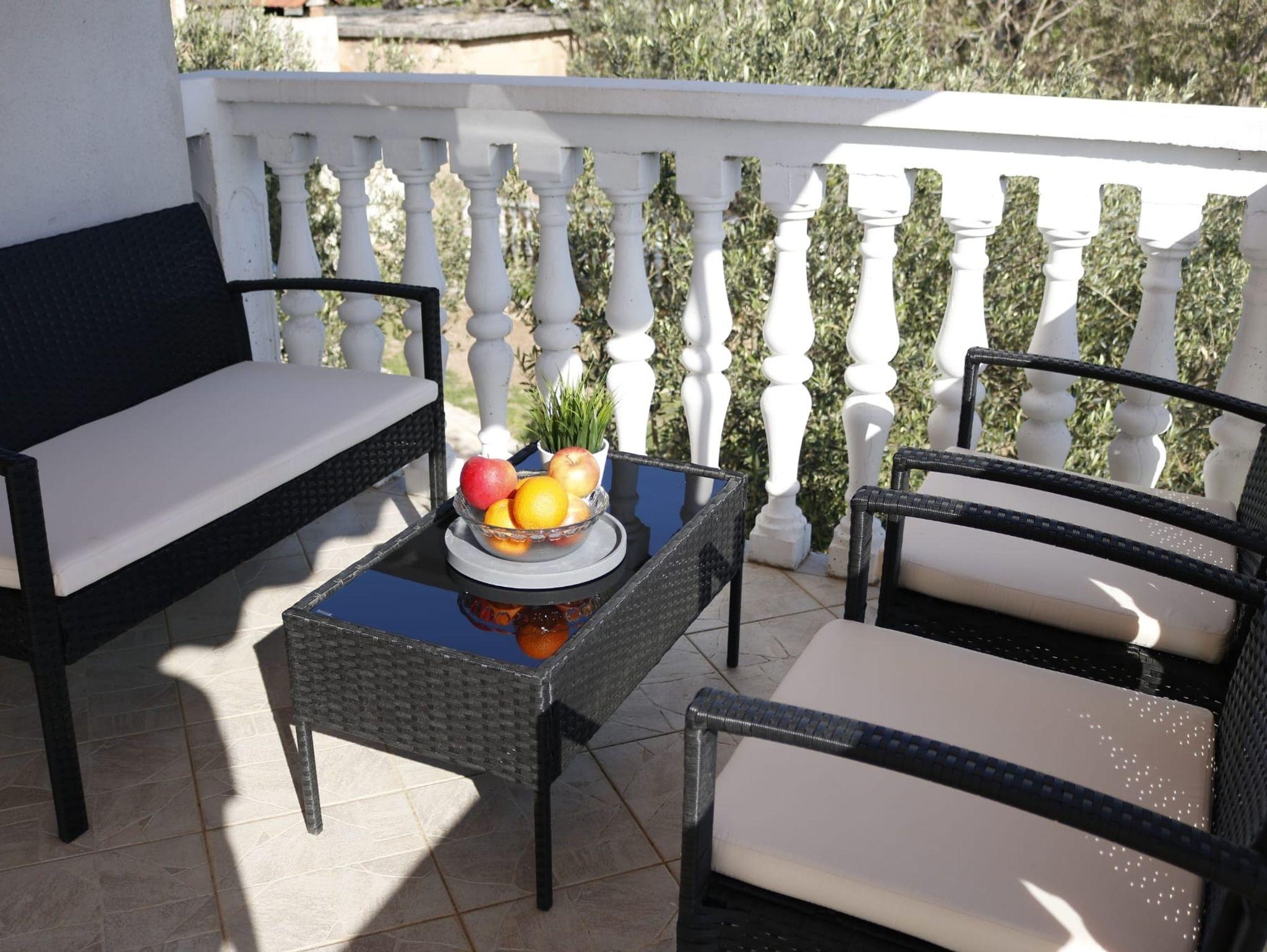 Ferienwohnung bietet Platz für 5 Gäste. Die Betten sind in Schlafzimmern, die es 2 gibt, und in Wohnzimmer, innerhalb einer Gesamtfläche von 55m2, angeordnet. Die Gäste haben eine eigene Terrasse zur Verfügung, auf der sie in warmen Sommernächten genießen können. Für vollen Genuss und Entspannung gibt es einen privaten Grill für Gäste dieser Unterkunft. Während ihres Aufenthalts können sich Gäste im privaten Schwimmbad entspannen. IM PREIS INBEGRIFFEN: Kurtaxe, Endreinigung, Klimatisierung, Pool, Parkplatz, Internet, Kinderbett, Bügeleisen, Bügelbrett, Föhn. Die Verfügbarkeit zusätzlicher Dienstleistungen in Ihrem reservierten Termin und die Preise derselben (falls nicht aufgeführt) müssen im Voraus überprüft werden. Zusätzliche Dienstleistungen die in der Zahlungsaufforderung nicht aufgeführt sind werden direkt beim Vermieter bezahlt, angenommen der Gast nutzt auch diese. Ermäßigung auf den Grundpreis: Gratistag 14=13 (bei einem Aufenthalt von 14 Tagen oder mehr erhalten Sie einen Gratistag für den Aufenthalt bis 31.12.26).
