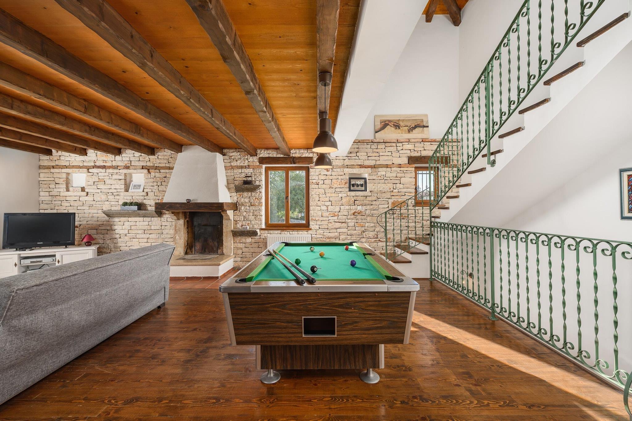 Villaen tilbyder sammen med dets rummelige og velindrettede design en luksuriøs villa med tre soveværelser med kapacitet til at rumme op til otte gæster, med en privat have, udendørsmøbler og en privat swimmingpool til udendørs nydelse. Villaen inkluderer en række faciliteter for at sikre komfort, såsom aircondition i hele huset, en varmepumpe til klimastyring, Wi-Fi, en vaskemaskine og en pejs til hyggelige aftener. Yderligere faciliteter inkluderer et fitnesscenter/fitnesscenter, børneområde, balkon og overdækket parkering i samme bygning. Det ligger kun få skridt fra et skisportssted, og tilbyder vintersportsentusiaster en bekvem base for deres aktiviteter. For familier tilbyder den nærliggende "Dino Park Funtana" (22 km) sjove attraktioner, mens de smukke strande i Rovinj (19 km) byder på en blanding af sand- og klippemuligheder til solbadning og svømning. Gæsterne kan også nyde vandlandet "Aquacolors Porec" (20 km) eller udforske naturreservatet "Brijuni National Park" (41 km). Villaen er bekvemt beliggende nær byen Sveti Lovrec (7 km), hvor gæsterne kan finde lokale supermarkeder og restauranter, herunder den populære "Konoba Danijeli" i Kringa (4 km). Pula Lufthavn (45 km) og Pula togstation (45 km) er let tilgængelige, hvilket gør det nemt at rejse til villaen. Villaen har et fuldt udstyret åbent køkken med gaskomfur, køleskab, mikroovn, ovn, fryser, opvaskemaskine, kaffemaskine, brødrister og kedel samt bestik. Den rummelige terrasse giver et perfekt udendørsrum til spisning eller afslapning. For ekstra komfort tilbyder villaen en grill til al fresco-måltider, et pengeskab for sikkerhed og et alarmsystem for ro i sindet.