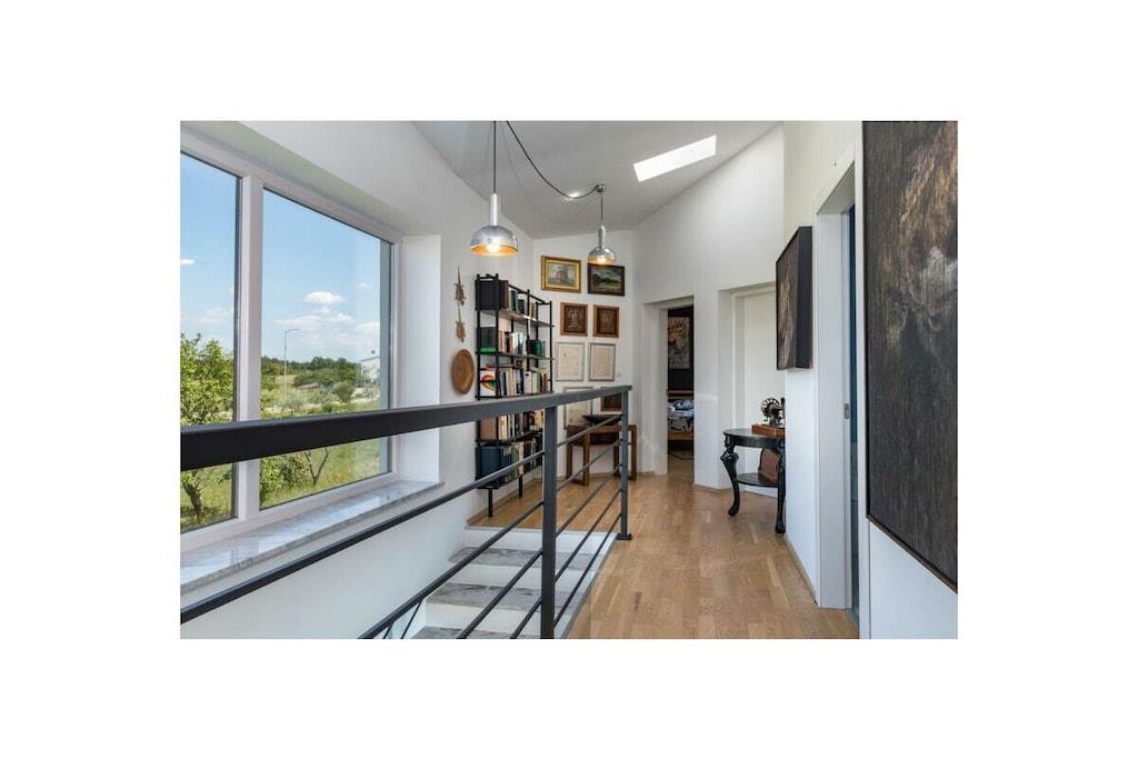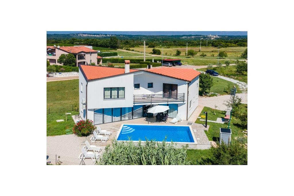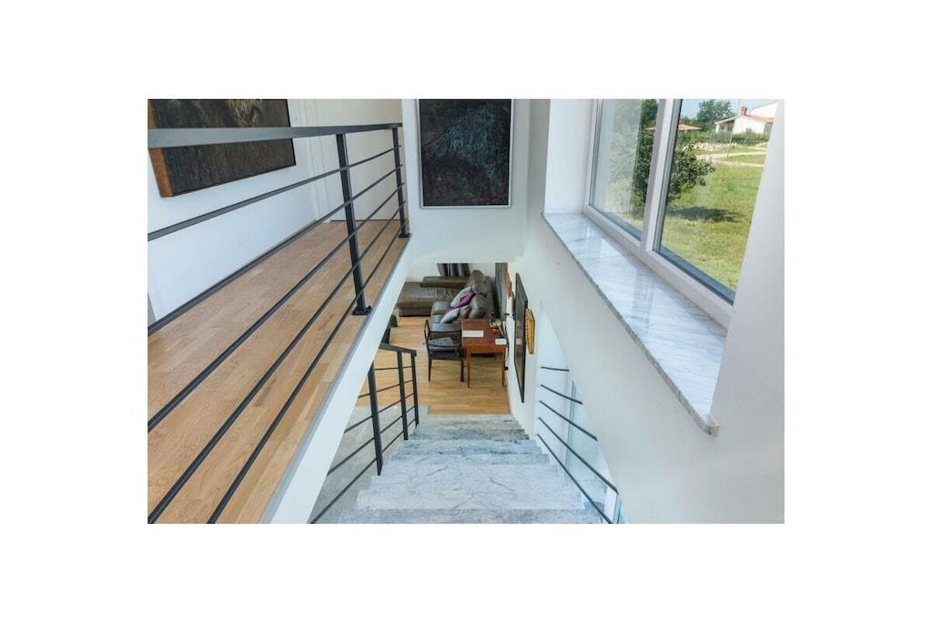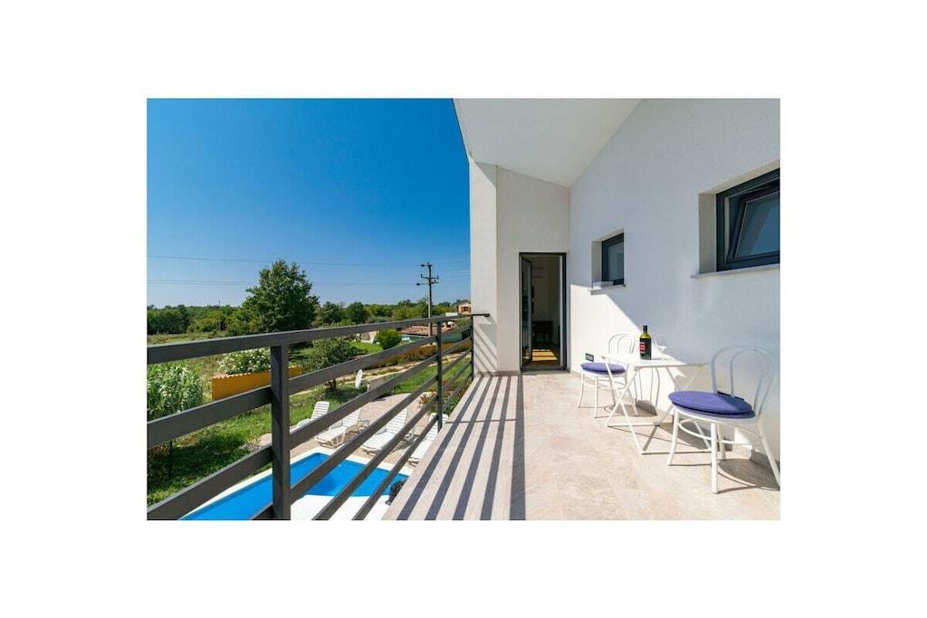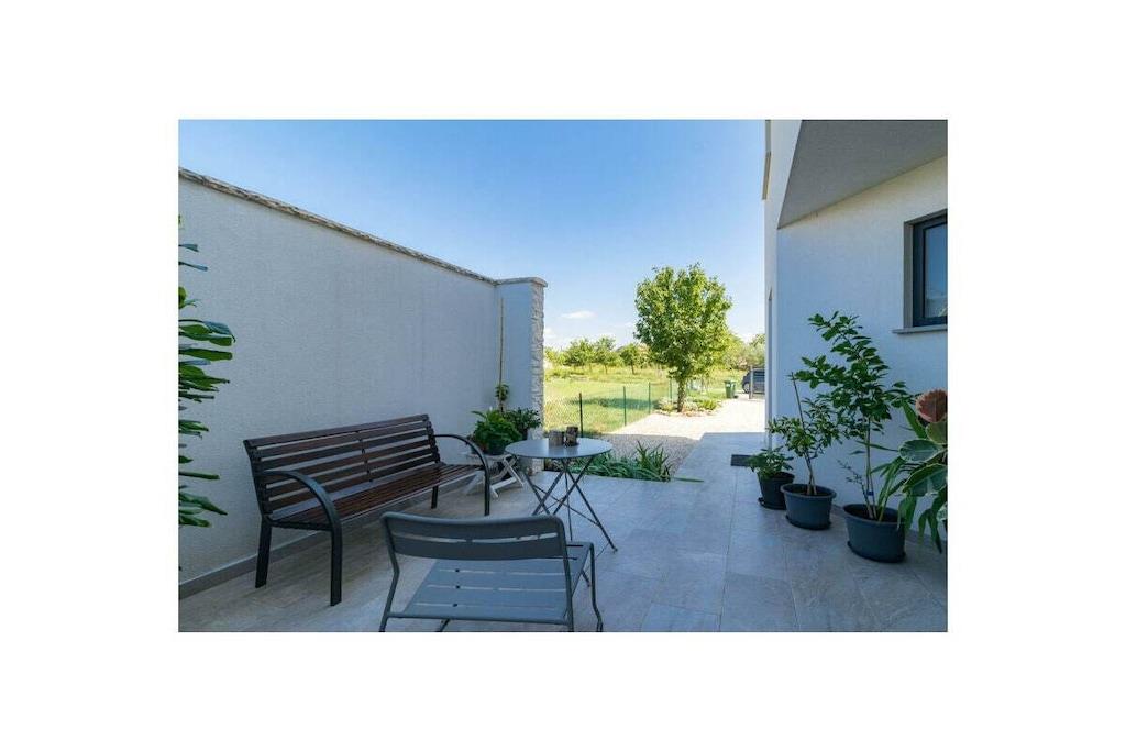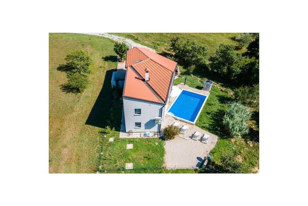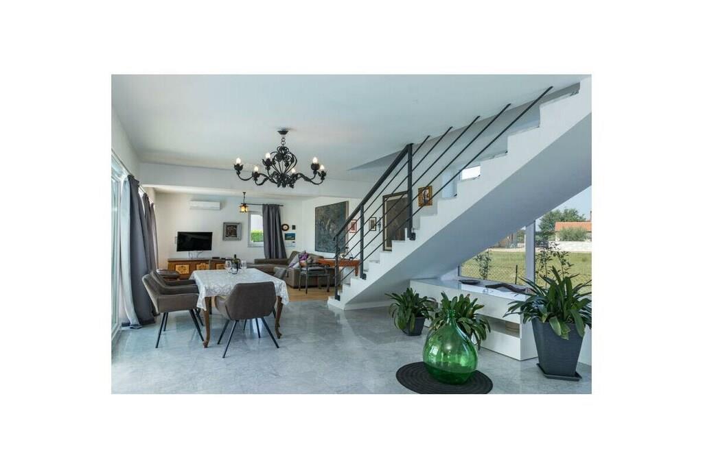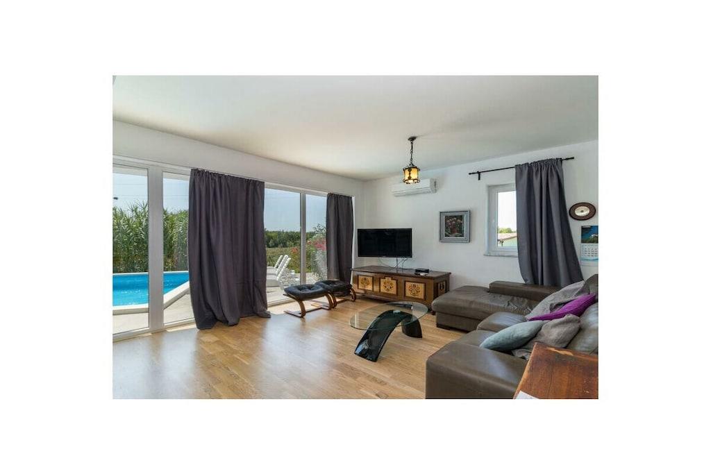 Dette arkitektonisk moderne hus ligger midt i smuk kroatisk natur og tilbyder med sine tre soveværelser og tre badeværelser plads til i alt seks personer (+ en sovesofa til to personer). Med et fuldt udstyret køkken og en udendørs grillplads tilbyder huset alt, hvad du behøver til dine daglige behov. Udenfor er der en 30 m² stor pool inden for et indhegnet område - ideelt til dine børn. Du kan parkere dine køretøjer sikkert på husets indhegnede grund.