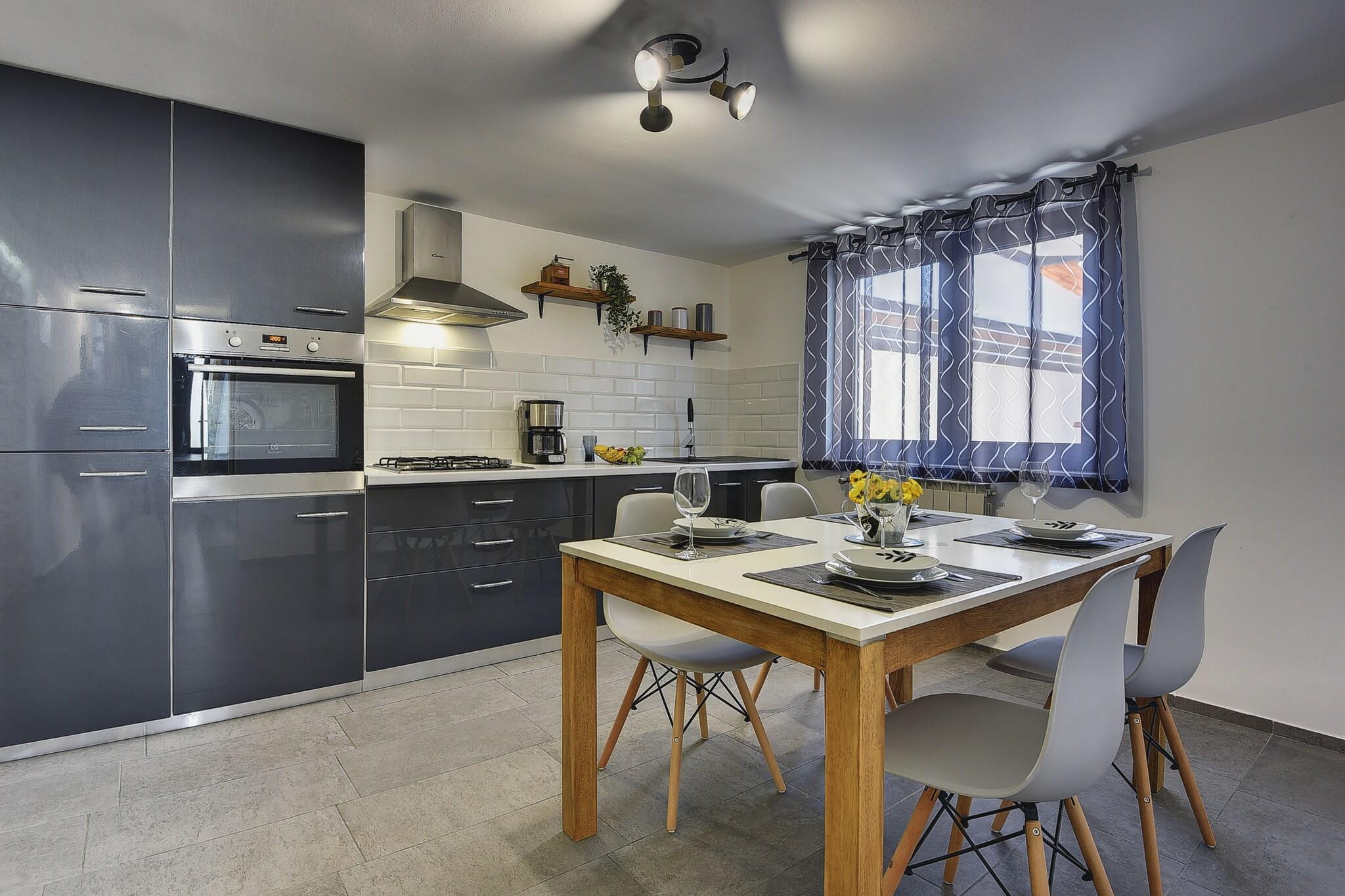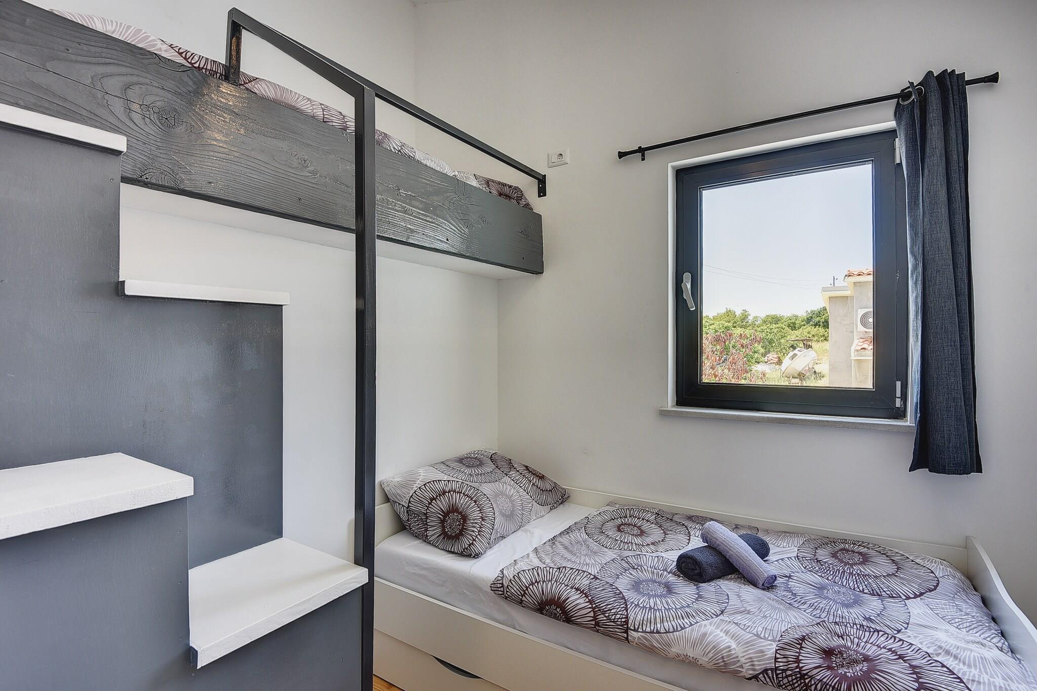 Stueetage: (Stue(enkeltsovesofa, Fjernsyn(fladskærm, parabol), sofahjørne), Køkken(spisebord, komfur, kaffemaskine, ovn, mikrobølgeovn, opvaskemaskine , køle-fryseskab), badeværelse(bruser, håndvask, toilet), terrasse(privat, 42 m2)) På 1. etage: (soveværelse(dobbeltseng(180 x 200 cm)), soveværelse(køjeseng), badeværelse(bruser, håndvask, toilet)) tremmeseng, bruser(udendørs), vaskemaskine, klimaanlæg, terrasse, have(privat, indhegnet), havemøbler, solstole, parkering, swimmingpool(privat), strygebræt, strygejern, føntørrer, loungemøbler