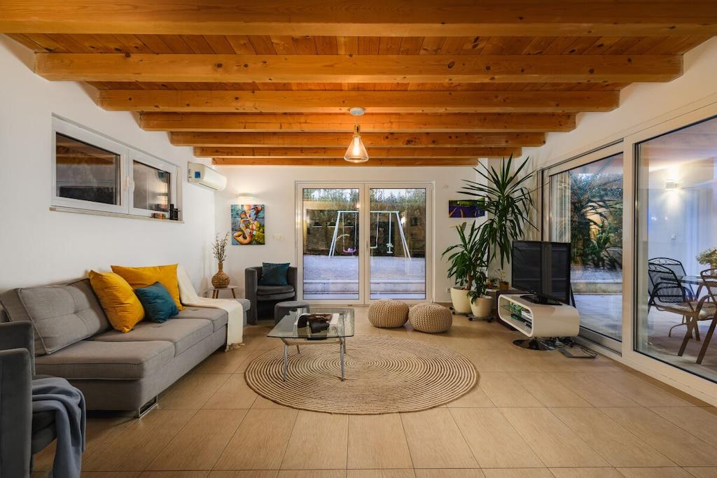 Wie soll ihr perfekter Urlaubstag beginnen? Vielleicht mit „Morgens aufwachen und das Meer sehen“ ! Oder wie wäre es mit „vor dem Frühstück kurz mal ins Pool springen“! All dies und vieles mehr ist in der Villa Sole möglich! Das schöne Poolhaus befindet sich im Ort Rakalj in Meernähe. Es wurden traditionelle, istrische und moderne Elementen kombiniert. Im Erdgeschoss befindet sich ein großzügiger Wohnbereich, von dem aus Sie auf die Terrasse gelangen. Im 1.Stock sind die Schlafzimmer mit eigenen Bädern und Terrassen mit Blick auf die Kvarner Bucht. Das Haus ist mit einer Sauna, einem Whirlpool Spielmöglichkeiten ausgestattet.