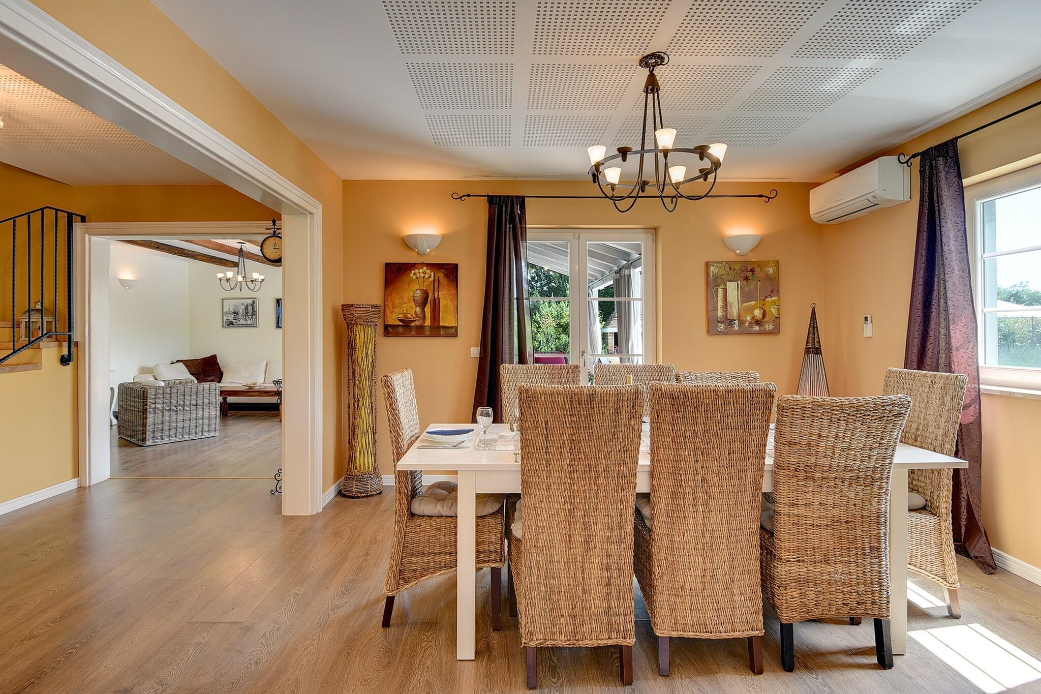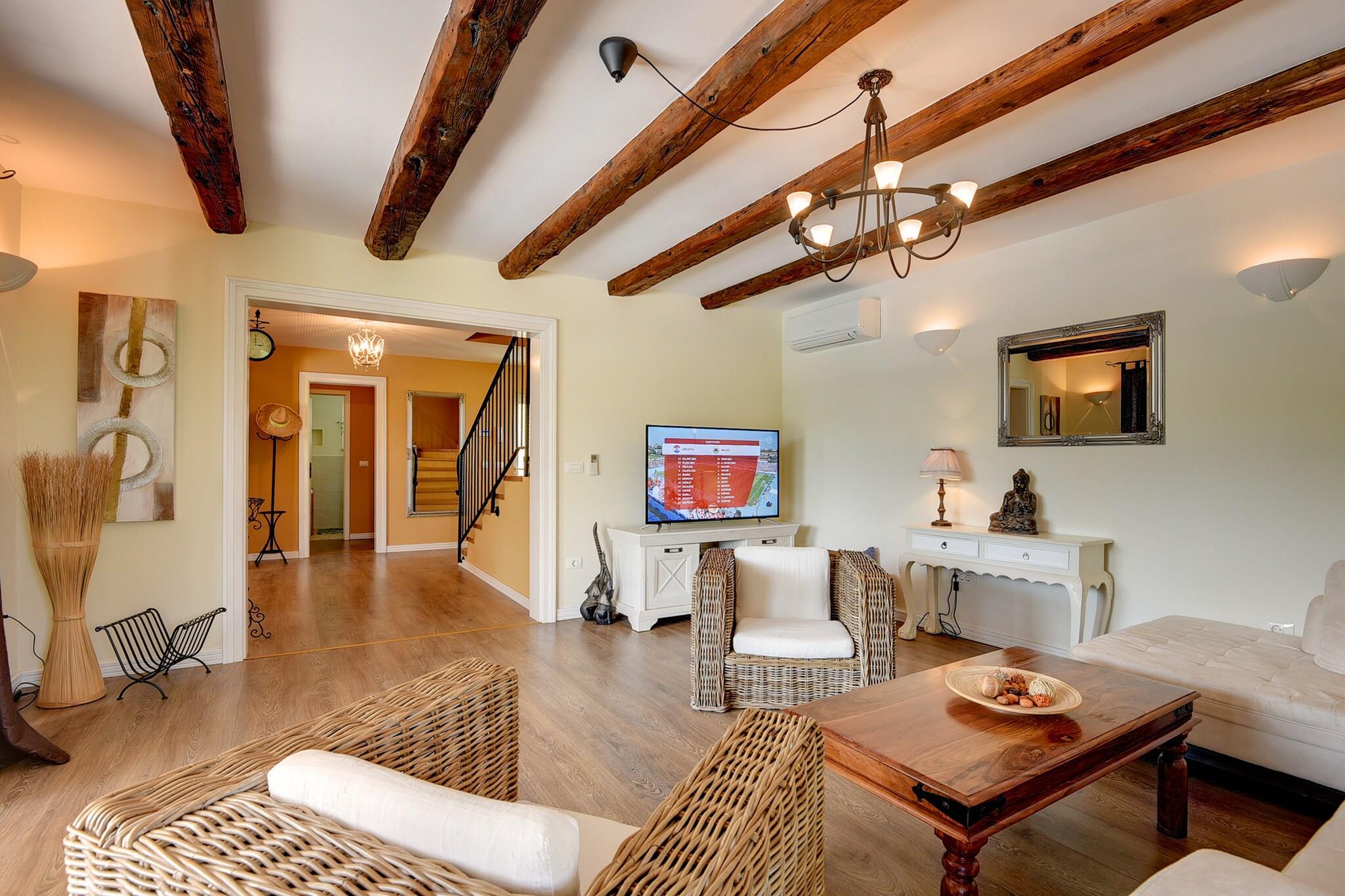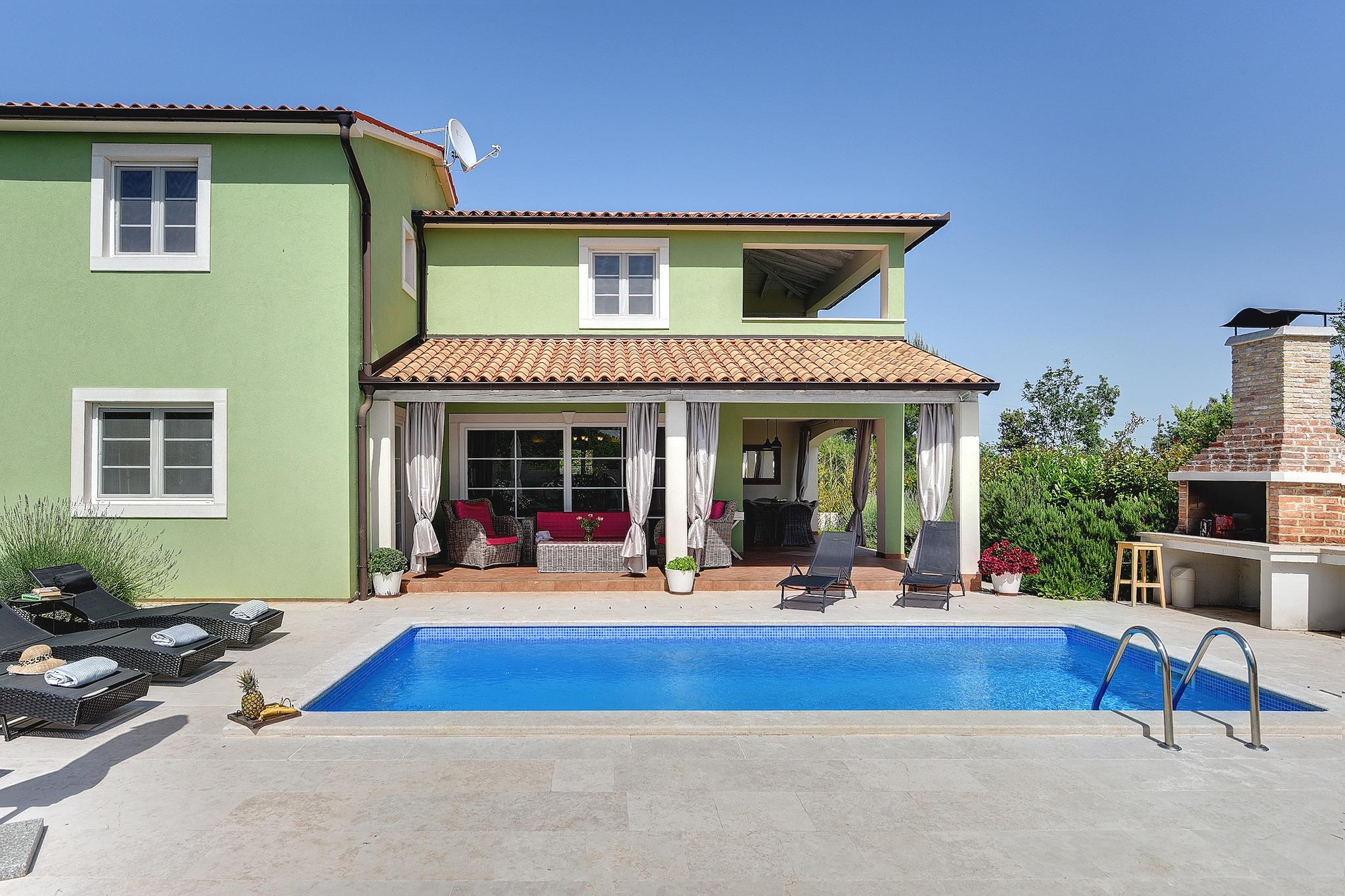 Denne villa med privat swimmingpool ligger i det østlige Istrien, på stedet Rakalj, 2,5 km fra stranden. Et lille supermarked og en restaurant ligger inden for gåafstand. Ud over det velholdte interiør tilbyder Villa Oliva også udendørs faciliteter såsom en privat swimmingpool, jacuzzi og grill. Der er en swing til børnene. I stueetagen finder du en stue med opholdsstue og spisebord og adgang til overdækket terrasse, køkken og separat toilet. På første sal er der tre soveværelser med aircondition og eget badeværelse, en med balkon og havudsigt.