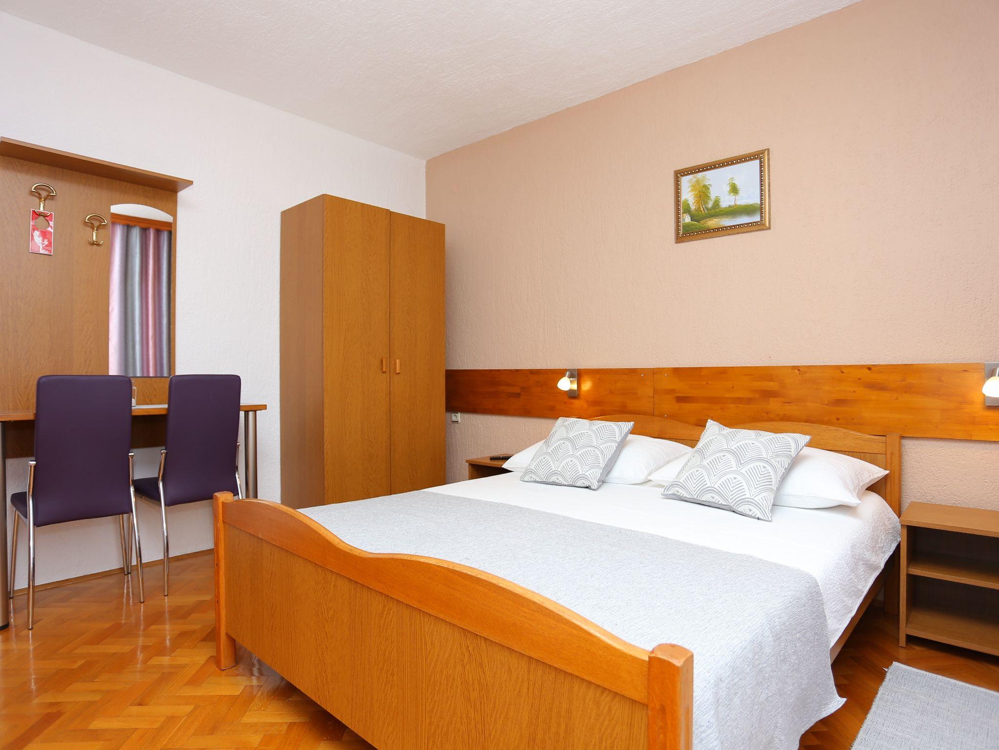 Zimmer bietet Platz für 2 Gäste. Die Betten sind in Schlafzimmern, die es 1 gibt, innerhalb einer Gesamtfläche von 16m2, angeordnet. Die Gäste haben einen eigenen Balkon zur Verfügung, auf der sie in warmen Sommernächten genießen können. In der Unterkunftseinheit besteht die Möglichkeit des Mitbringens von Haustieren gegen Aufpreis. Die reservierte Unterkunftseinheit ist ein Zimmer mit eigenem Badezimmer ohne die Möglichkeit der Nutzung einer Küche. IM PREIS INBEGRIFFEN: Kurtaxe, Endreinigung, Klimatisierung, Zentralheizung, Parkplatz, Internet, Bügeleisen, Bügelbrett, Föhn. UNVERBINDLICHE ZUSÄTZLICHE KOSTEN: Wäschewaschen (5,00 € Waschen), Haustiere (10,00 € pro Nacht). Die Verfügbarkeit zusätzlicher Dienstleistungen in Ihrem reservierten Termin und die Preise derselben (falls nicht aufgeführt) müssen im Voraus überprüft werden. Zusätzliche Dienstleistungen die in der Zahlungsaufforderung nicht aufgeführt sind werden direkt beim Vermieter bezahlt, angenommen der Gast nutzt auch diese. Ermäßigung auf den Grundpreis: Gratistag 14=13 (bei einem Aufenthalt von 14 Tagen oder mehr erhalten Sie einen Gratistag für den Aufenthalt bis 31.12.26).