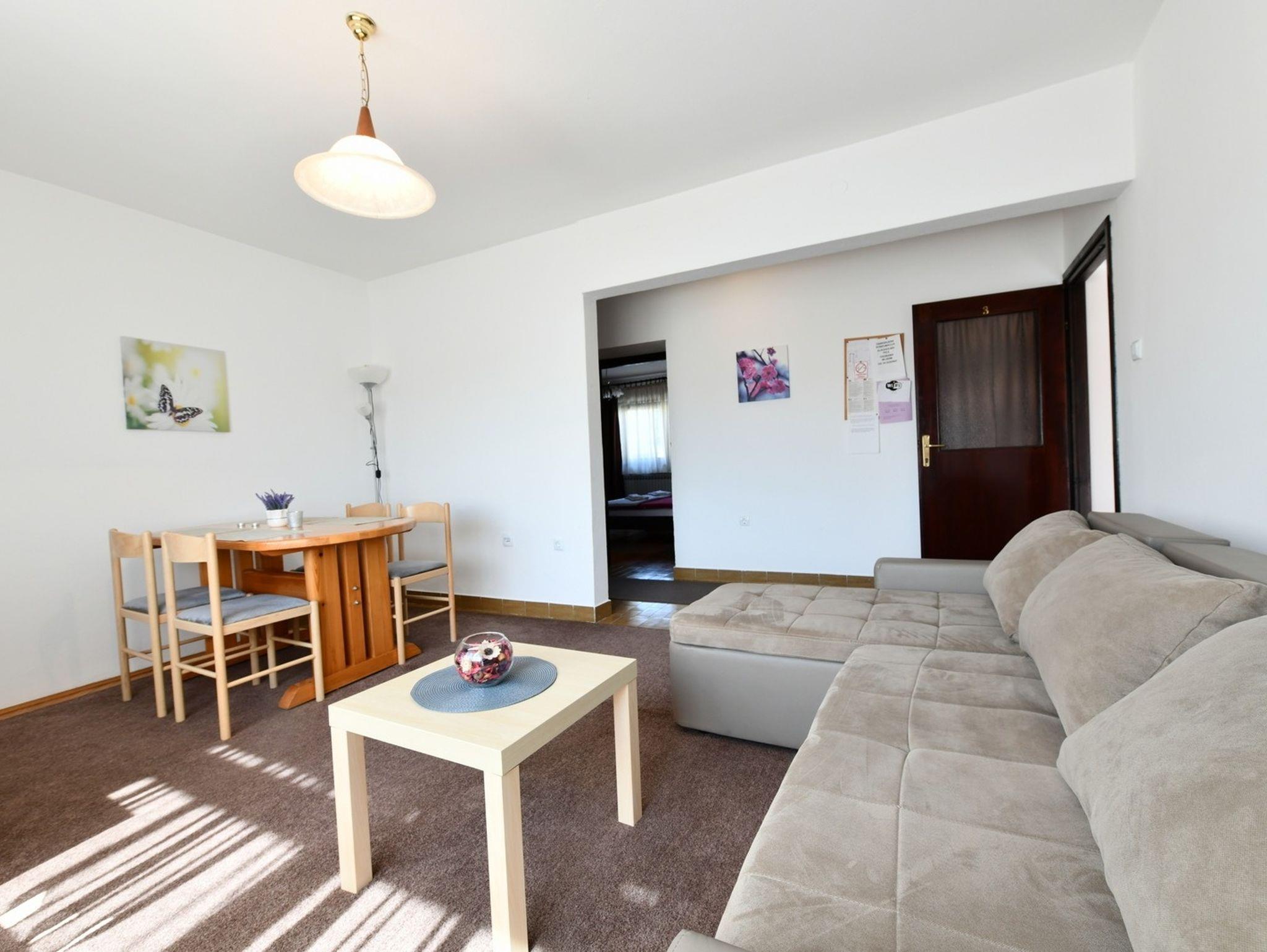 Ferienwohnung bietet Platz für 4 Gäste. Die Betten sind in Schlafzimmern, die es 1 gibt, und in Wohnzimmer, innerhalb einer Gesamtfläche von 55m2, angeordnet. Die Gäste haben einen eigenen Balkon zur Verfügung, auf der sie in warmen Sommernächten genießen können. Es ist erlaubt, Speisen auf dem Gemeinschafts-Grill vorzubereiten. In der Unterkunftseinheit besteht die Möglichkeit des Mitbringens von Haustieren gegen Aufpreis. IM PREIS INBEGRIFFEN: Kurtaxe, Endreinigung, Klimatisierung, Zentralheizung, Parkplatz, Internet, Kinderbett, Bügeleisen, Föhn. UNVERBINDLICHE ZUSÄTZLICHE KOSTEN: Haustiere (15,00 € pro Nacht), Zusatzbett (13,00 € pro Nacht). Die Verfügbarkeit zusätzlicher Dienstleistungen in Ihrem reservierten Termin und die Preise derselben (falls nicht aufgeführt) müssen im Voraus überprüft werden. Zusätzliche Dienstleistungen die in der Zahlungsaufforderung nicht aufgeführt sind werden direkt beim Vermieter bezahlt, angenommen der Gast nutzt auch diese. Ermäßigung auf den Grundpreis: Gratistag 14=13 (bei einem Aufenthalt von 14 Tagen oder mehr erhalten Sie einen Gratistag für den Aufenthalt bis 31.12.26).