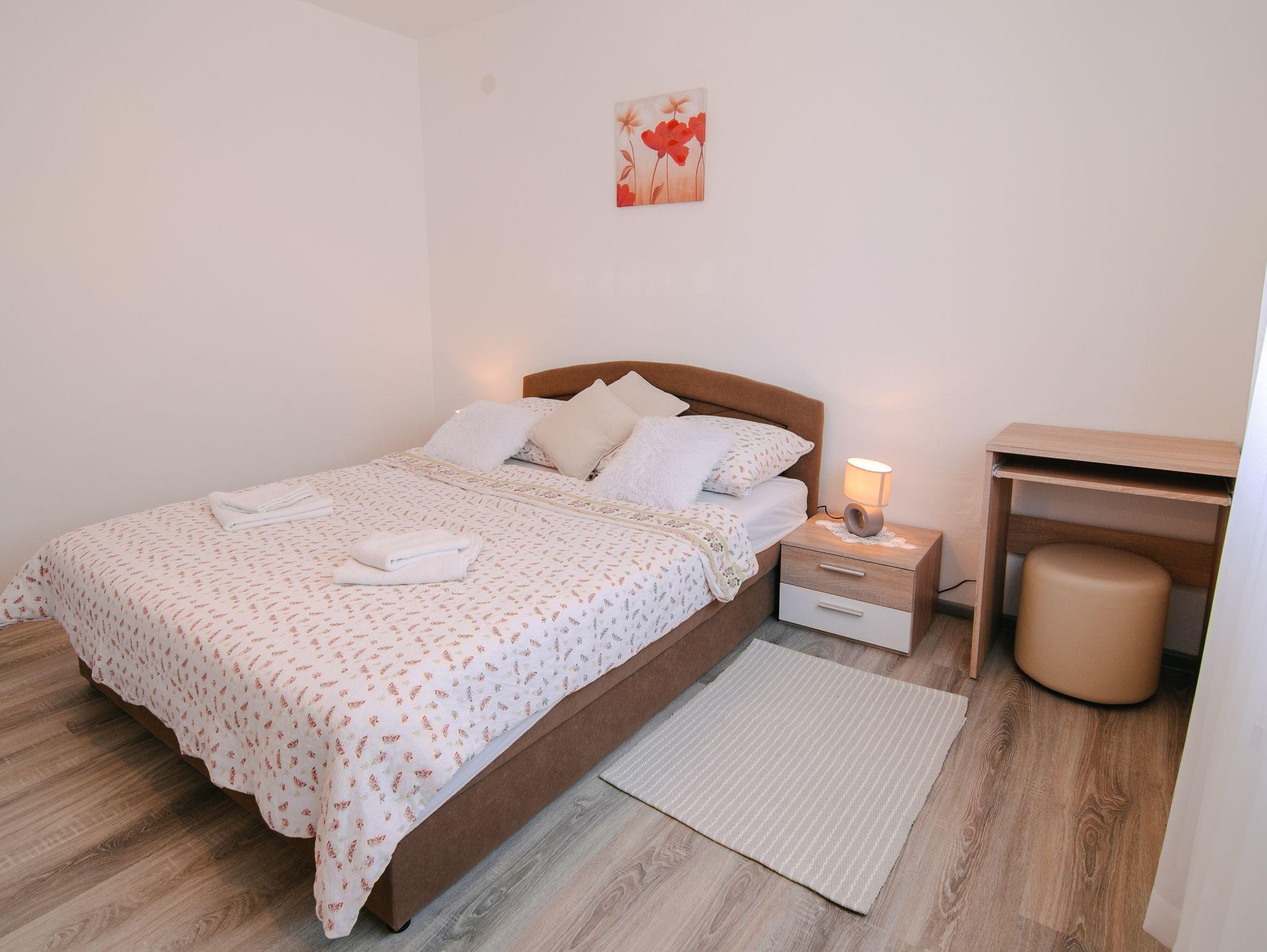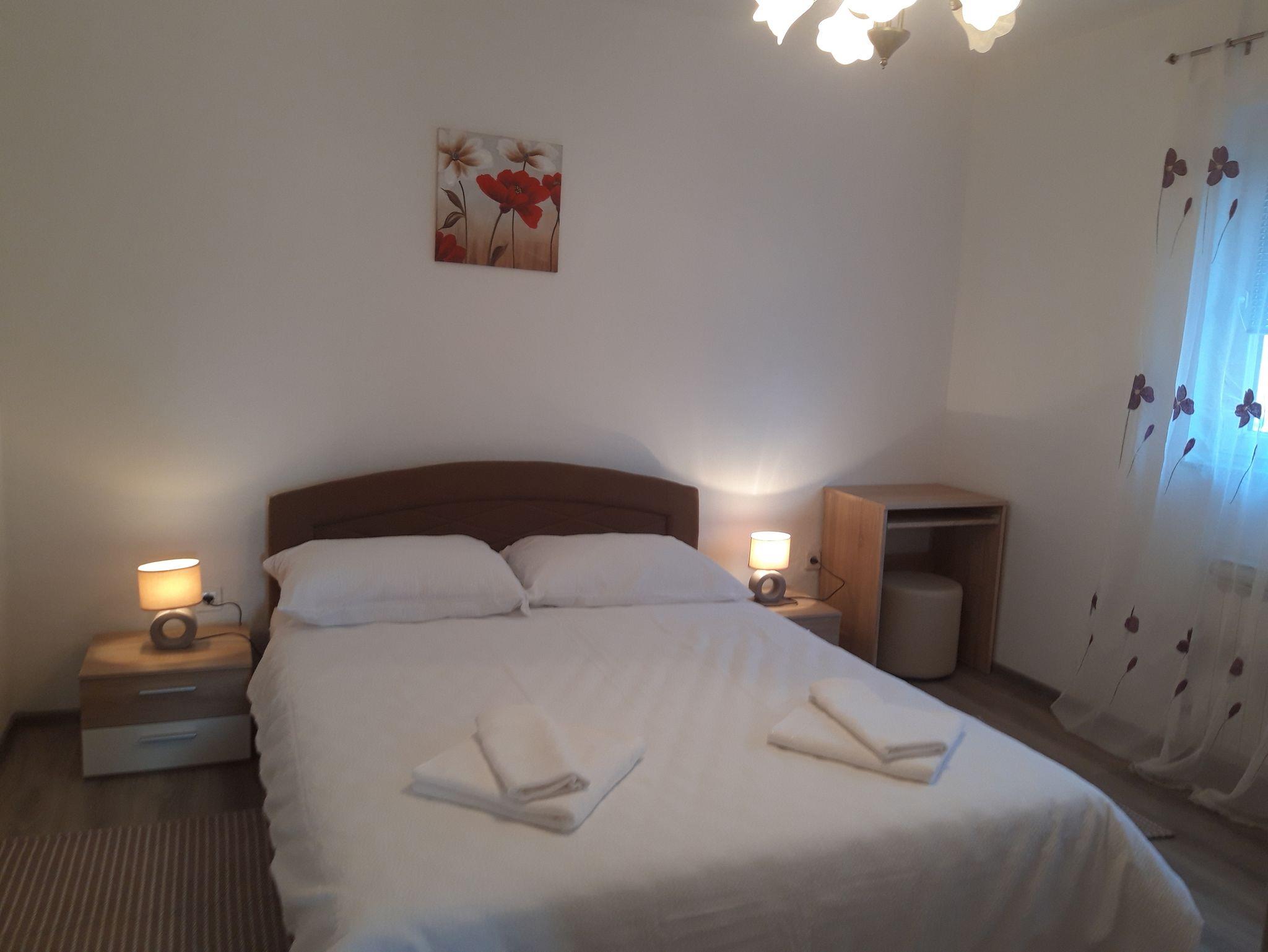 Ferienwohnung bietet Platz für 4 Gäste. Die Betten sind in Schlafzimmern, die es 1 gibt, und in Wohnzimmer, innerhalb einer Gesamtfläche von 50m2, angeordnet. Die Gäste haben eine eigene Terrasse zur Verfügung, auf der sie in warmen Sommernächten genießen können. IM PREIS INBEGRIFFEN: Kurtaxe, Endreinigung, Zentralheizung, Parkplatz, Internet, Bügeleisen, Bügelbrett, Föhn. Die Verfügbarkeit zusätzlicher Dienstleistungen in Ihrem reservierten Termin und die Preise derselben (falls nicht aufgeführt) müssen im Voraus überprüft werden. Zusätzliche Dienstleistungen die in der Zahlungsaufforderung nicht aufgeführt sind werden direkt beim Vermieter bezahlt, angenommen der Gast nutzt auch diese. Ermäßigung auf den Grundpreis: Gratistag 14=13 (bei einem Aufenthalt von 14 Tagen oder mehr erhalten Sie einen Gratistag für den Aufenthalt bis 31.12.26).