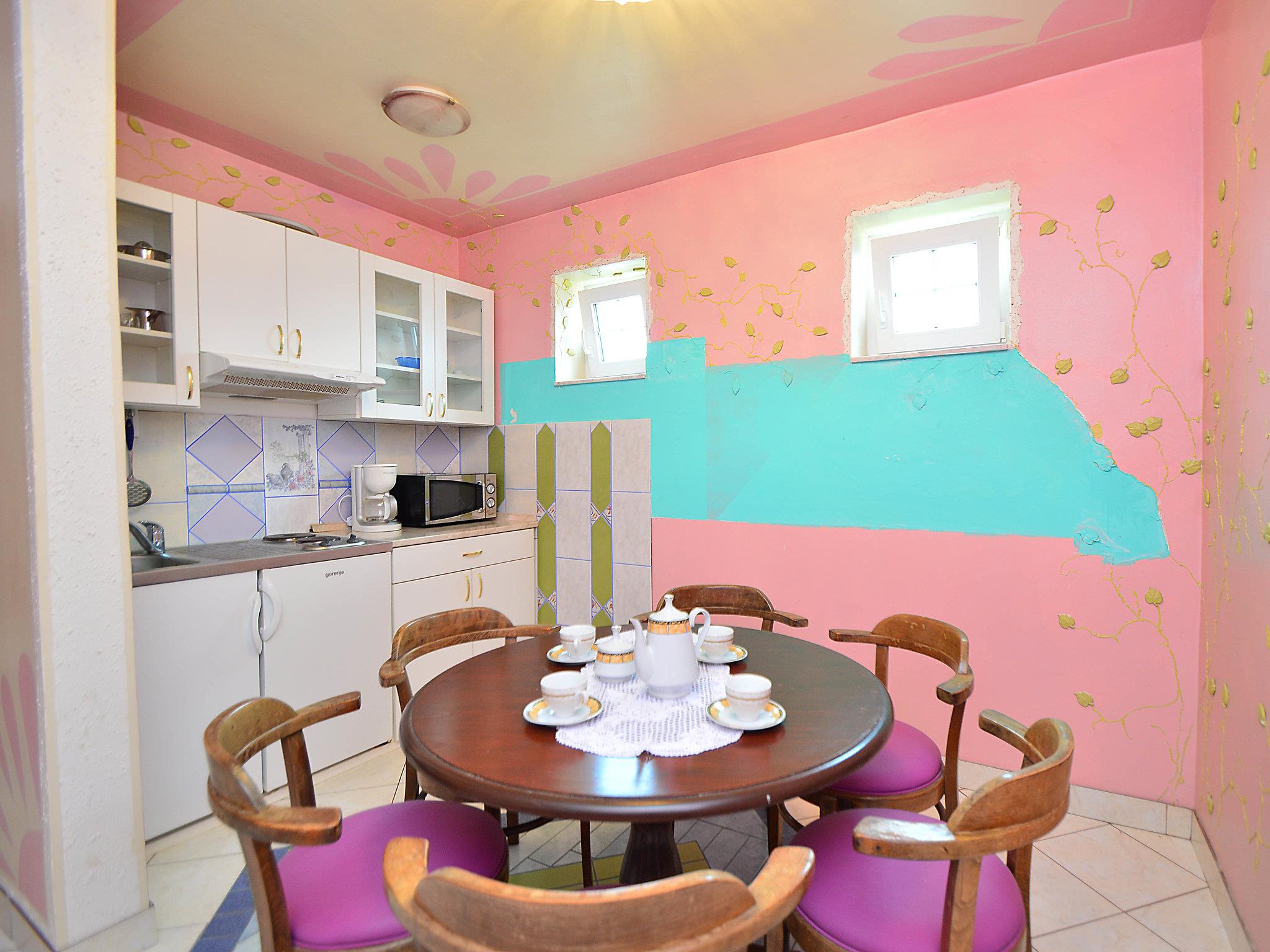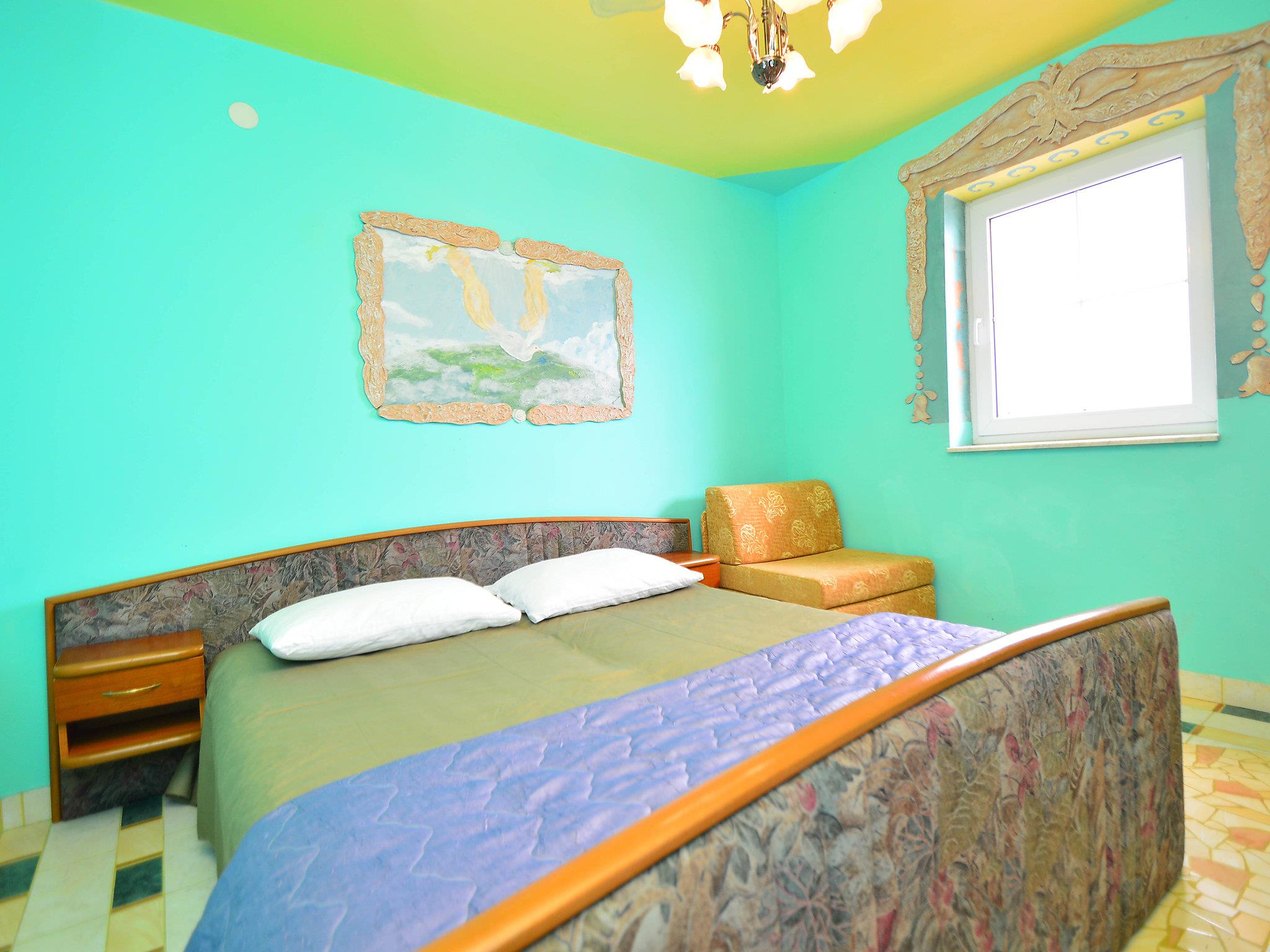 Apartment house "Ivana". 4 km from the centre of Zaton, 11 km from the centre of Šibenik, in a quiet, sunny position, 5 km from the sea, on the lake. For shared use: outdoor shower, arbour, garden furniture, barbecue. In the house: internet access. Parking at the house on the premises. Shop, restaurant 100 m, bus stop 800 m, pebble beach 7 km, bathing lake 10 m. Nearby attractions: NP Krka 24 km. Please note: private mooring (extra) on request.