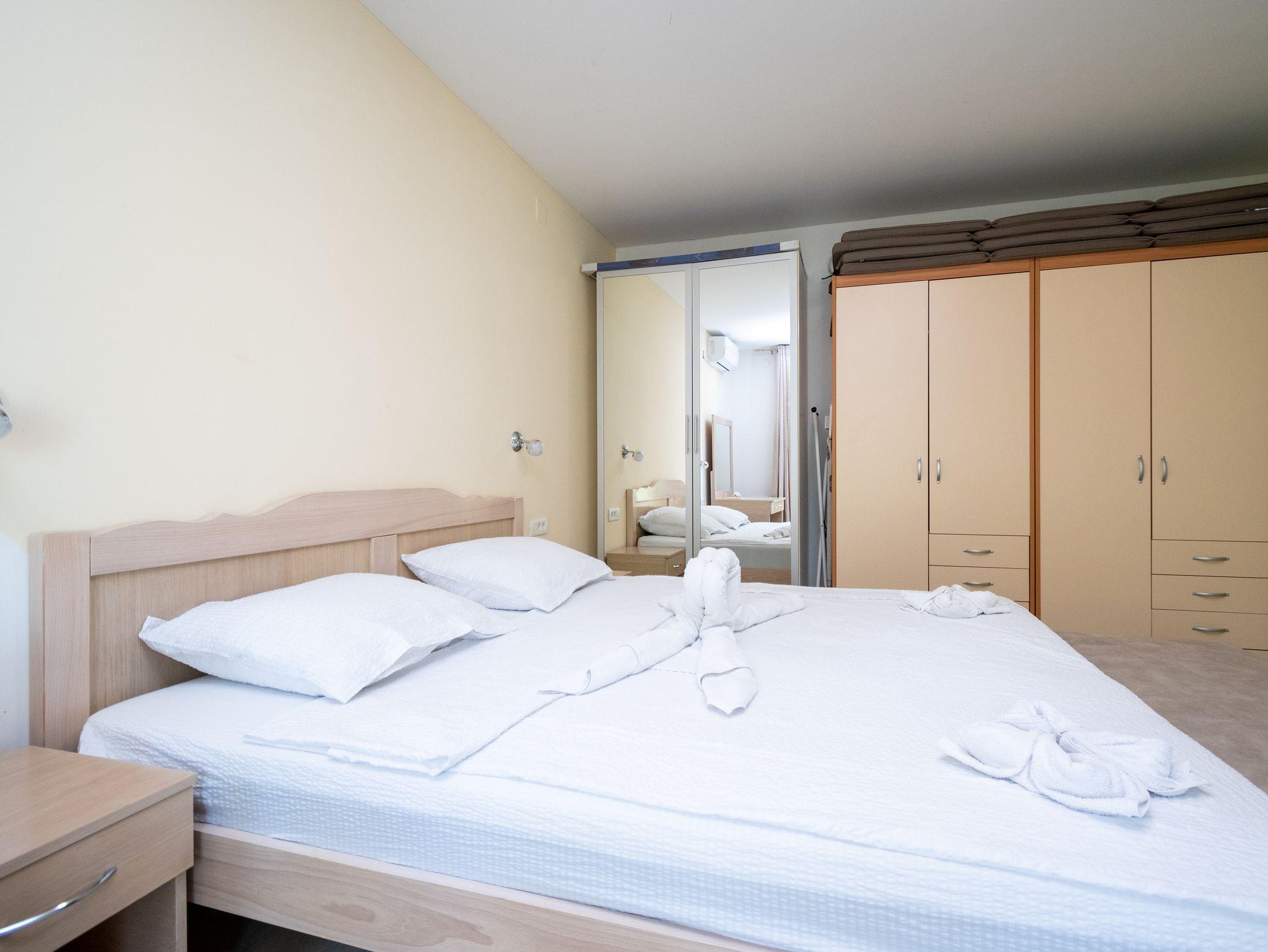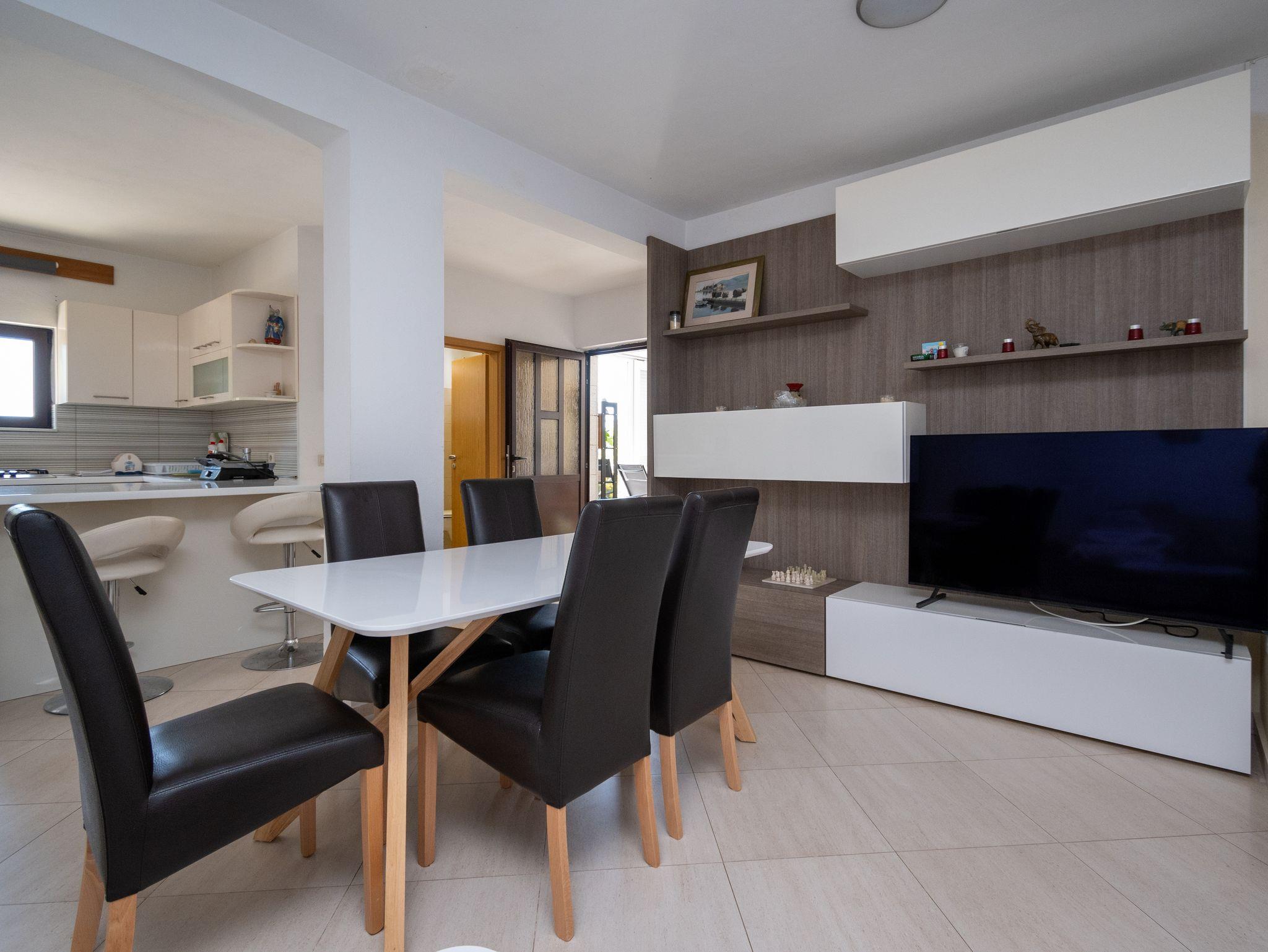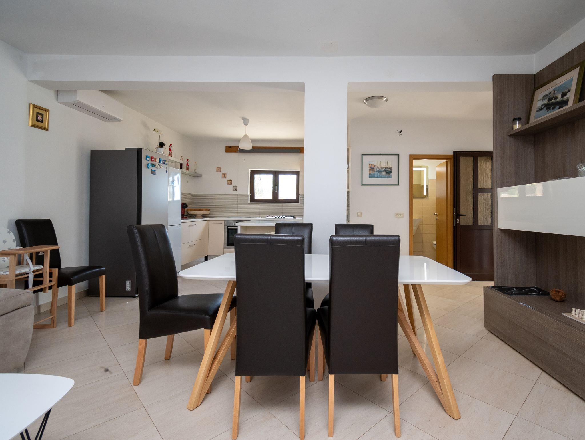 Haus bietet Platz für 8 Gäste. Die Betten sind in Schlafzimmern, die es 3 gibt, und in Wohnzimmer, innerhalb einer Gesamtfläche von 123m2, angeordnet. Die Gäste haben eine eigene Terrasse zur Verfügung, auf der sie in warmen Sommernächten genießen können. Für vollen Genuss und Entspannung gibt es einen privaten Grill für Gäste dieser Unterkunft. Während ihres Aufenthalts können sich Gäste im privaten Schwimmbad entspannen. IM PREIS INBEGRIFFEN: Kurtaxe, Endreinigung, Klimatisierung, Pool, Parkplatz, Internet, Kinderbett, Bügeleisen, Bügelbrett, Föhn. Die Verfügbarkeit zusätzlicher Dienstleistungen in Ihrem reservierten Termin und die Preise derselben (falls nicht aufgeführt) müssen im Voraus überprüft werden. Zusätzliche Dienstleistungen die in der Zahlungsaufforderung nicht aufgeführt sind werden direkt beim Vermieter bezahlt, angenommen der Gast nutzt auch diese. Ermäßigung auf den Grundpreis: Gratistag 14=13 (bei einem Aufenthalt von 14 Tagen oder mehr erhalten Sie einen Gratistag für den Aufenthalt bis 31.12.26).