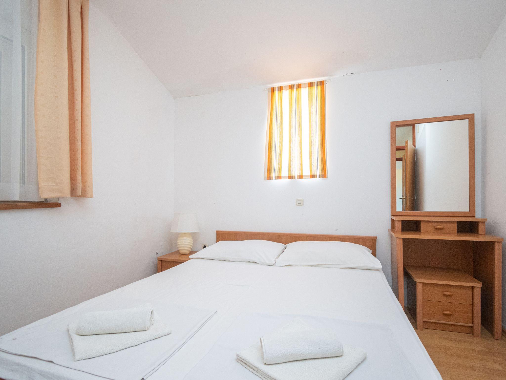 Ferienwohnung bietet Platz für 4 Gäste. Die Betten sind in Schlafzimmern, die es 1 gibt, und in Wohnzimmer, innerhalb einer Gesamtfläche von 31m2, angeordnet. Die Gäste haben eine eigene Terrasse zur Verfügung, auf der sie in warmen Sommernächten genießen können. Das Apartment bietet Meerblick. Es ist erlaubt, Speisen auf dem Gemeinschafts-Grill vorzubereiten. In der Unterkunftseinheit besteht die Möglichkeit des Mitbringens von Haustieren gegen Aufpreis. IM PREIS INBEGRIFFEN: Kurtaxe, Endreinigung, Parkplatz, Internet. VERBINDLICHE ZUSÄTZLICHE KOSTEN: Aufzahlung für Kurzaufenthalte (prozentualer Zuschlag pro Nächtigungsanzahl: 30% - 1, 20% - 2, 10% - 3). UNVERBINDLICHE ZUSÄTZLICHE KOSTEN: Klimatisierung (6,00 € pro Nacht), Haustiere (10,00 € pro Nacht), Zusatzbett (10,00 € pro Nacht). Die Verfügbarkeit zusätzlicher Dienstleistungen in Ihrem reservierten Termin und die Preise derselben (falls nicht aufgeführt) müssen im Voraus überprüft werden. Zusätzliche Dienstleistungen die in der Zahlungsaufforderung nicht aufgeführt sind werden direkt beim Vermieter bezahlt, angenommen der Gast nutzt auch diese. Ermäßigung auf den Grundpreis: Gratistag 14=13 (bei einem Aufenthalt von 14 Tagen oder mehr erhalten Sie einen Gratistag für den Aufenthalt bis 31.12.26).