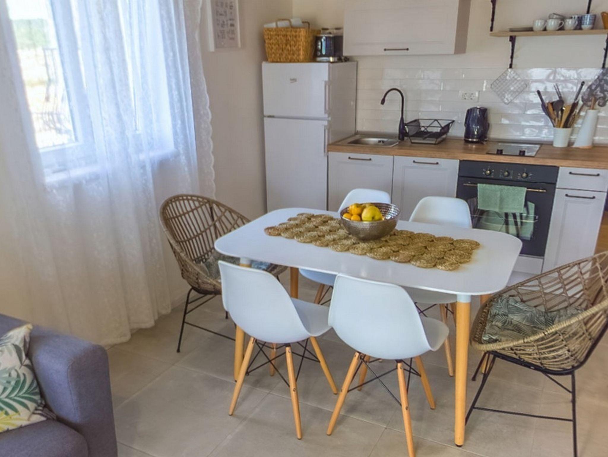 Ferienwohnung bietet Platz für 4 Gäste. Die Betten sind in Schlafzimmern, die es 2 gibt, innerhalb einer Gesamtfläche von 50m2, angeordnet. Die Gäste haben eine eigene Terrasse zur Verfügung, auf der sie in warmen Sommernächten genießen können. Das Apartment bietet Meerblick. Es ist erlaubt, Speisen auf dem Gemeinschafts-Grill vorzubereiten. Während ihres Aufenthalts können Gäste das gemeinsam zur Nutzung stehende Schwimmbad benutzen. In der Unterkunftseinheit besteht die Möglichkeit des Mitbringens von Haustieren, und die Dienstleistung ist im Preis der Unterkunft enthalten. IM PREIS INBEGRIFFEN: Kurtaxe, Endreinigung, Klimatisierung, Pool, Parkplatz, Internet, Haustiere, Bügeleisen, Bügelbrett, Föhn. Die Verfügbarkeit zusätzlicher Dienstleistungen in Ihrem reservierten Termin und die Preise derselben (falls nicht aufgeführt) müssen im Voraus überprüft werden. Zusätzliche Dienstleistungen die in der Zahlungsaufforderung nicht aufgeführt sind werden direkt beim Vermieter bezahlt, angenommen der Gast nutzt auch diese. Ermäßigung auf den Grundpreis: Gratistag 14=13 (bei einem Aufenthalt von 14 Tagen oder mehr erhalten Sie einen Gratistag für den Aufenthalt bis 31.12.26).